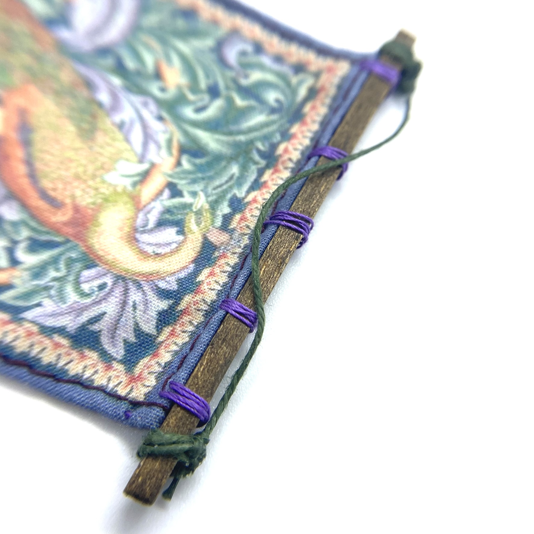 This little printed ‘tapestry’ was one of the earliest miniatures we bought, thinking it would fit in beautifully with the Arts and Crafts nature of the Hall. It will look lovely hanging against the panelling and dark wood of the Master Bedroom.
