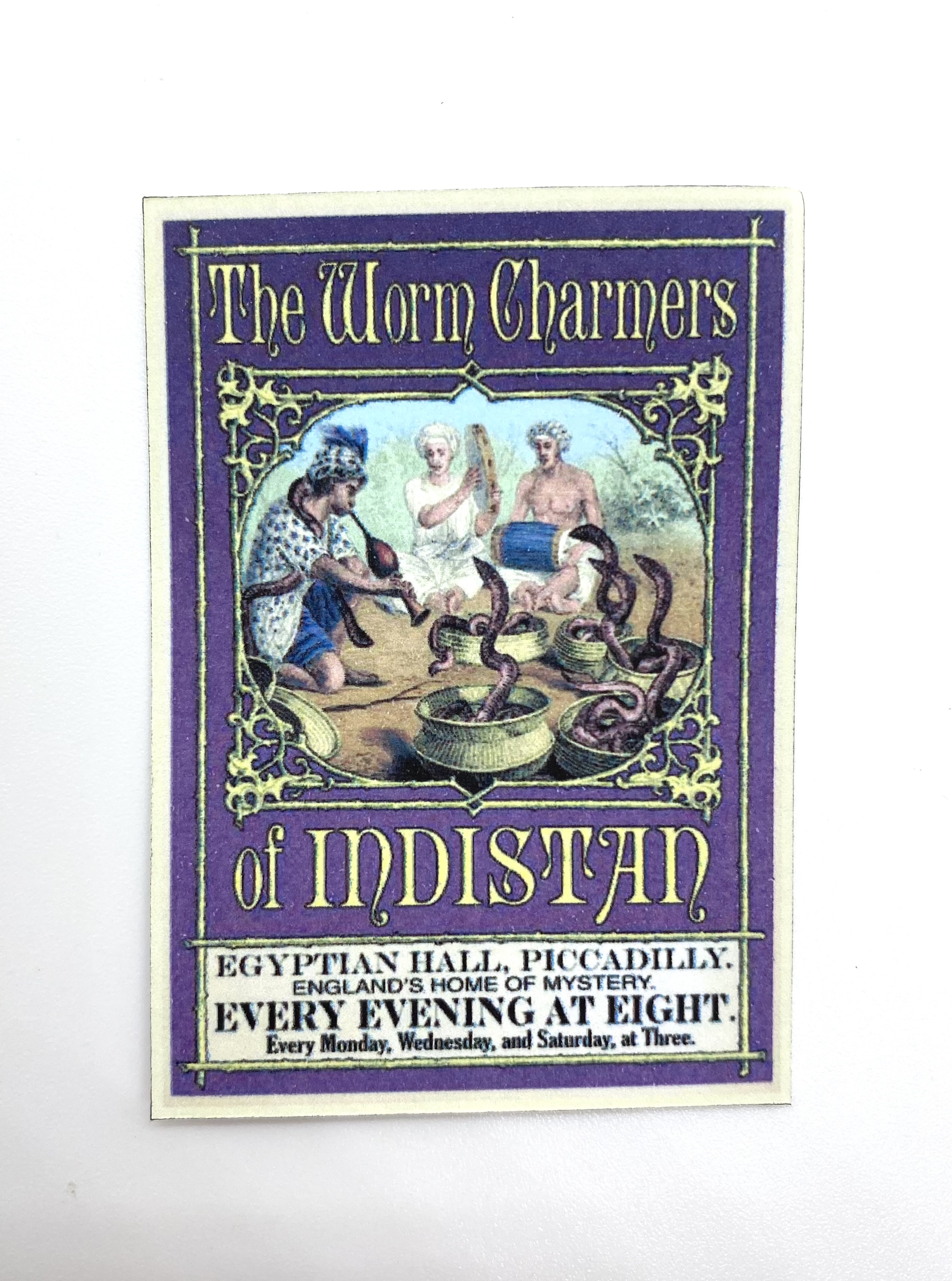 - The Worm Charmers of Indistan, Egyptian Hall Piccadilly. While the Egyptian Hall was indeed a real place, pulling in the crowds from 1812 until 1905, I can’t find any record of the Worm Charmers except in website related to The Insect Circus and, bizarrely, Grace Gilmore’s 2015 children’s story The Big City.