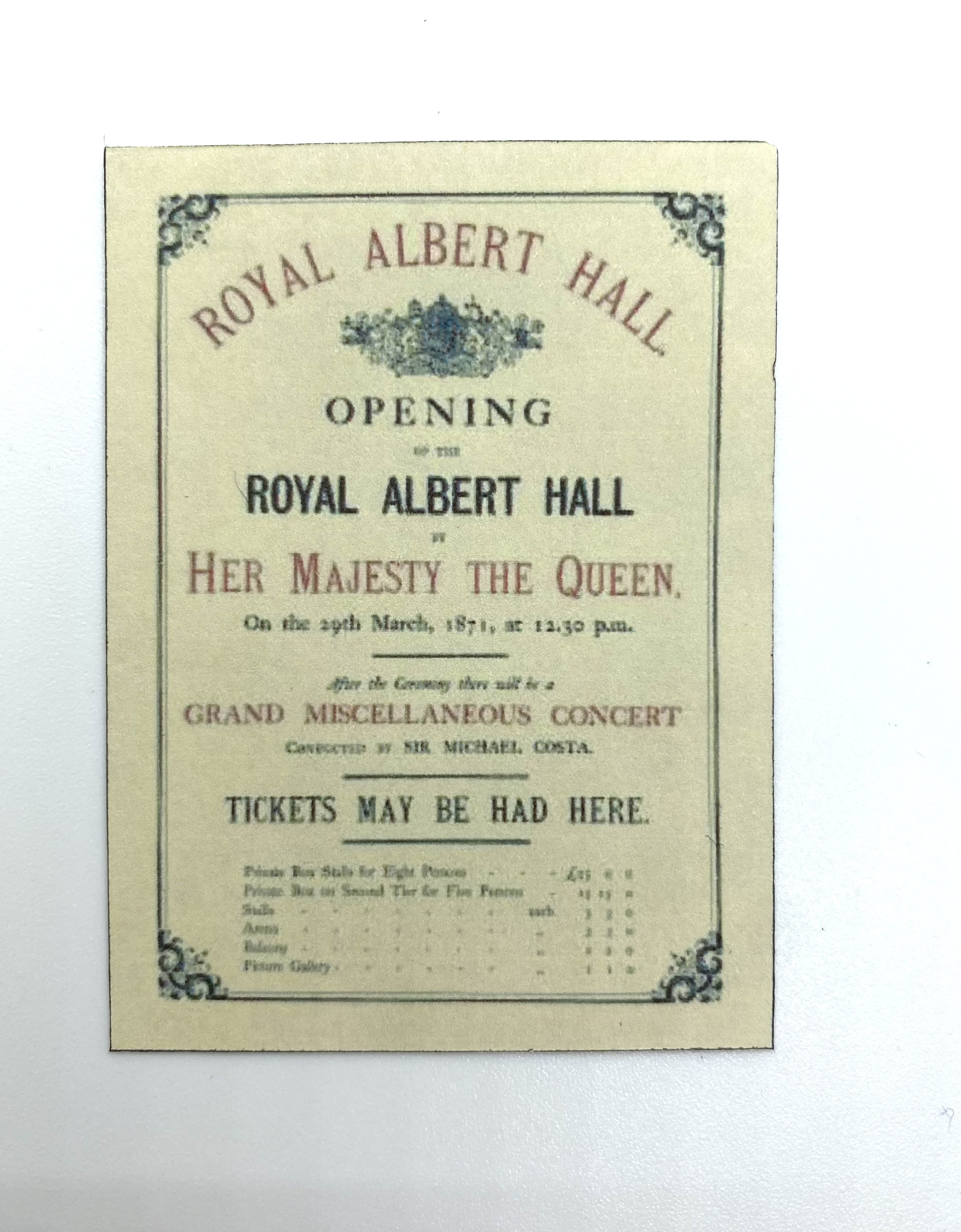 - Opening of the Royal Albert Hall on 29 March 1871. Needless to say, this really did happen, and this poster is proudly displayed in the Butler’s Pantry. While the butler would not have attended this himself, he probably knows someone who worked at the Hall and was able to save him a copy of the poster.