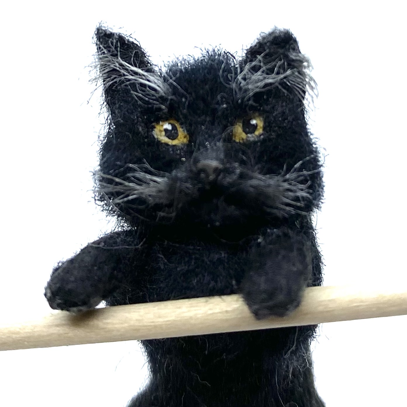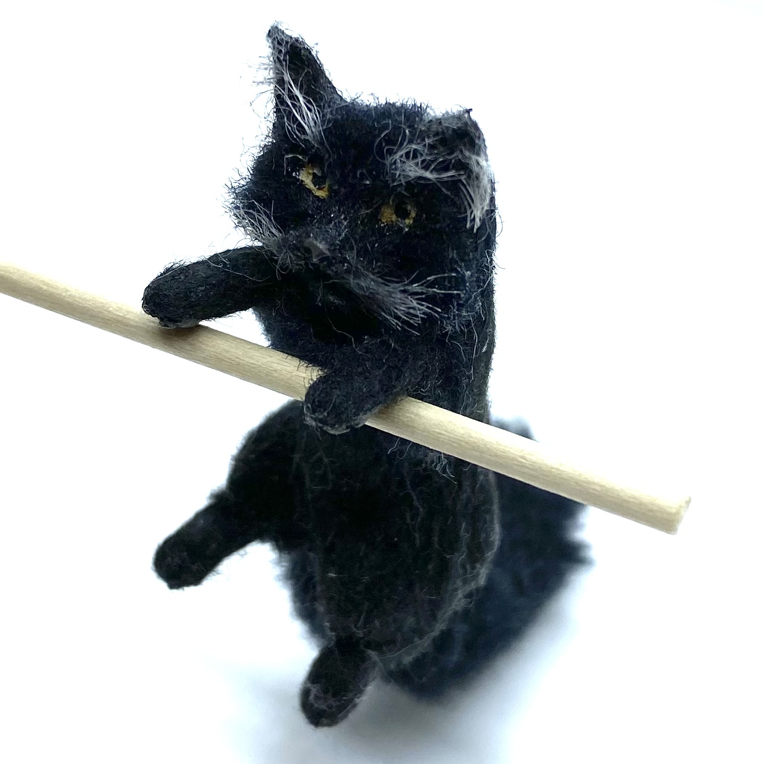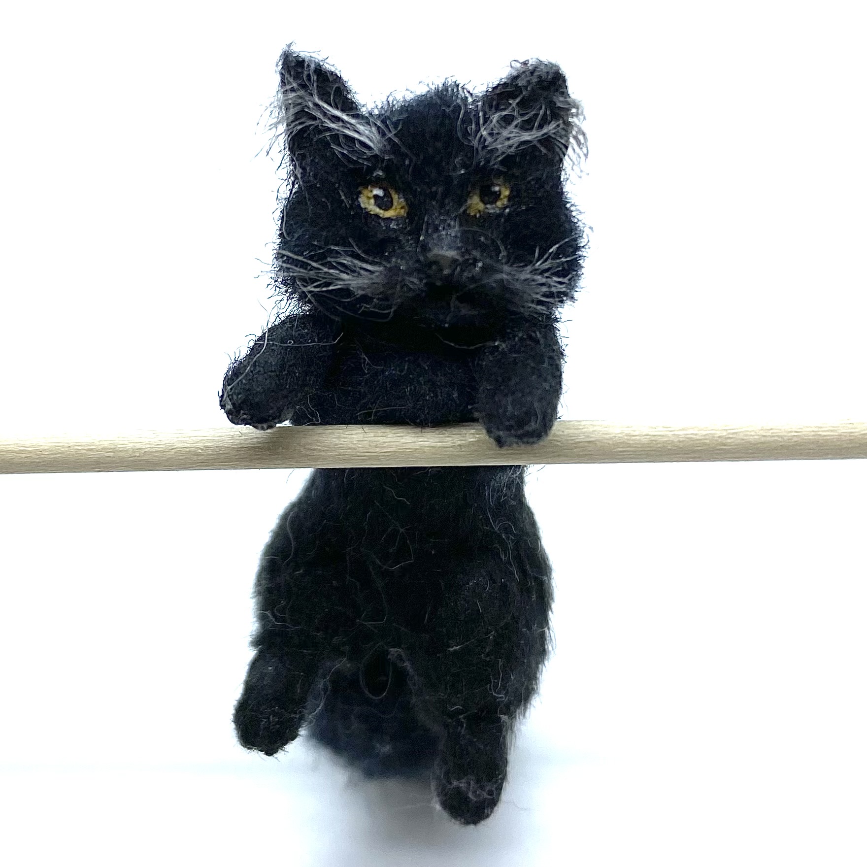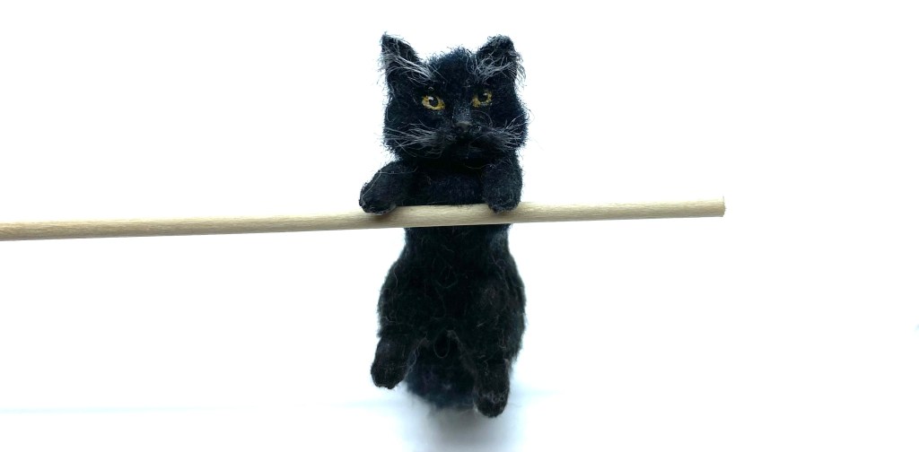 Made in a pose to peer over and into things, this little black cat was my first purchase from Victoria Chernysheva of Miniature Animals. I immediately imagined him peeking over the edge of the kitchen table when Cook’s back is turned, or angling for the leftover cream. He came all the way from Rostov-on-Don in southern Russia.