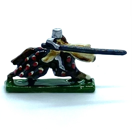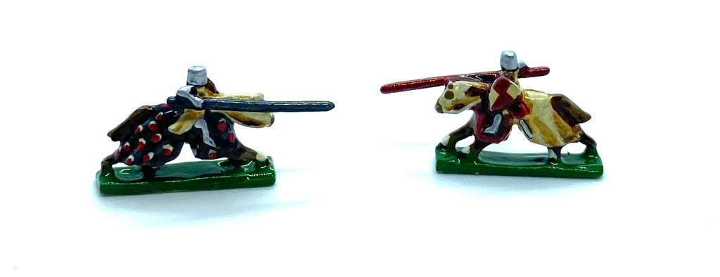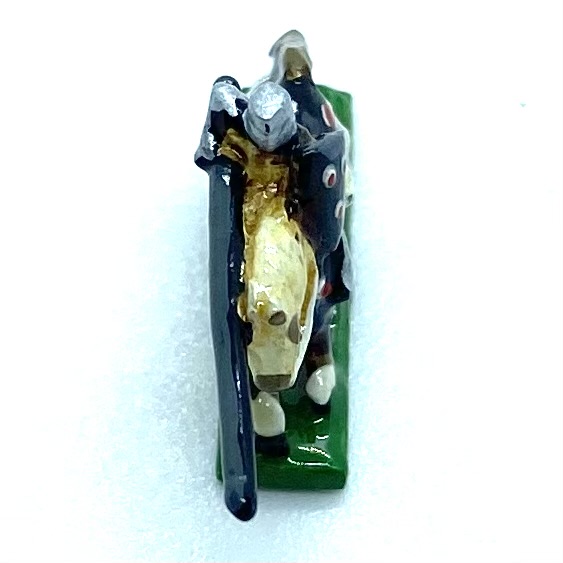Although Felix, the family’s middle son, has never shown great interest in much beyond natural history, he does have a passionate interest in knights. To his parents’ amazement he has quite happily made his way through the Morte d’Arthur and Ivanhoe, and can give chapter and verse on the Knights of the Round Table, while simultaneously remaining completely impervious to all other forms of culture. In Felix’s room, up on the mantelpiece away from the clutter of shells, birds’ eggs and pinned butterflies, he keeps two cherished ornaments of jousting knights. This is the first: the Knight of the White Crescent. He and his adversary change from hero to villain depending on the day and Felix’s mood, but they remain frozen in their eternal battle.