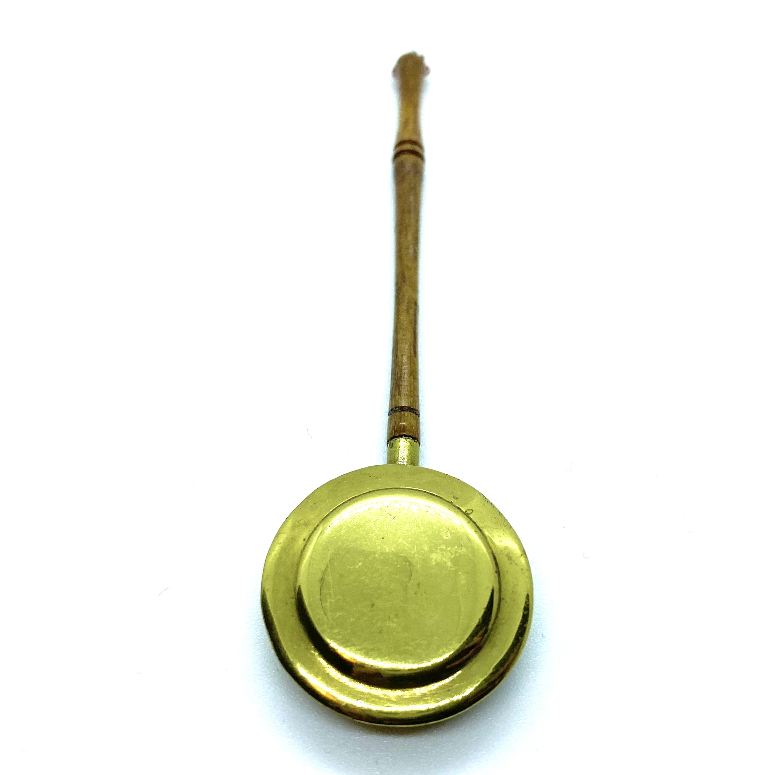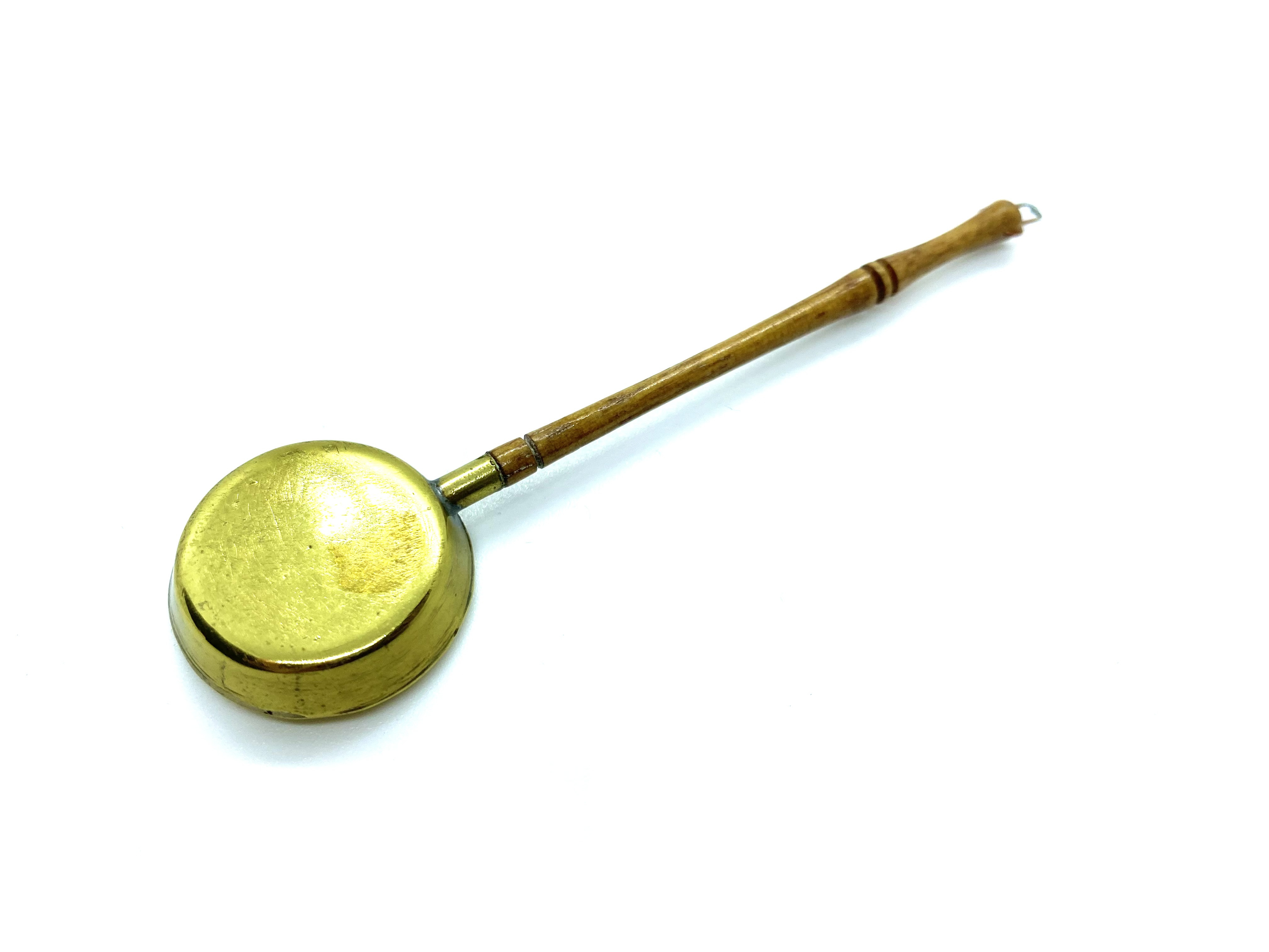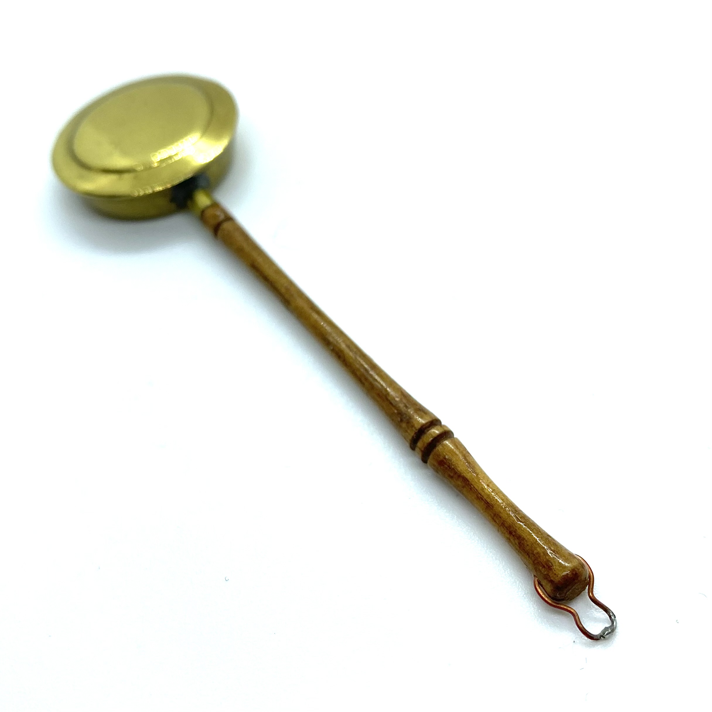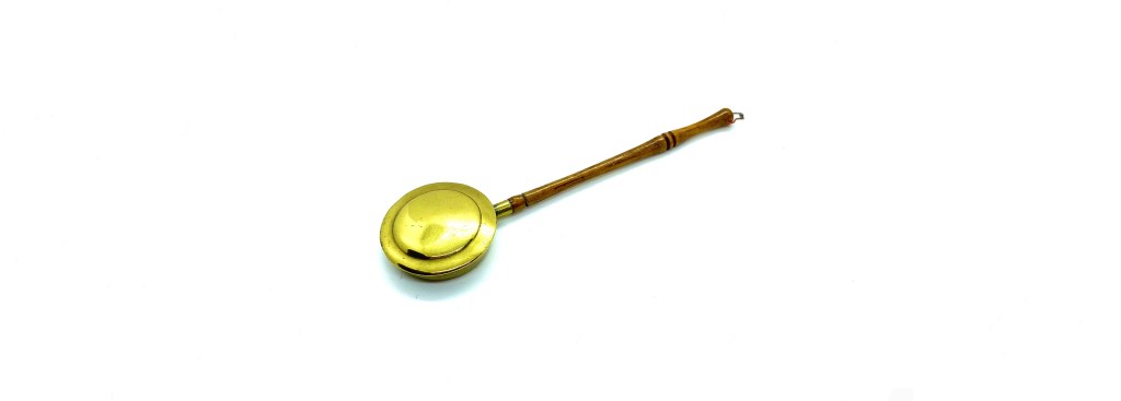 This little brass warming pan attracted me because, unlike some of the more elaborate examples you see, it looked as though it had been actually used. The brass pan doesn’t open, unfortunately, but it has an appealing warm colour and the handle seems to have been smoothed and polished by generations of hands. I also like the contrast between the very plain pan and the subtle decoration on the handle. There’s a useful hook on the end so it can be hung on the wall. If I succeed in getting a slightly more elaborate warming pan in the future, this will probably end up in the Night Nursery or one of the children’s bedrooms, but for now it’s destined for the Master Bedroom, to warm up Charles and Elizabeth’s bedclothes on winter nights.
