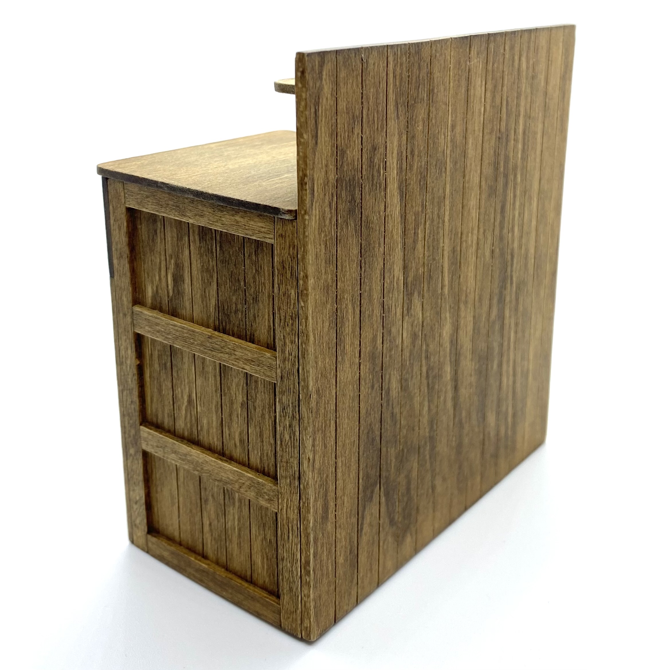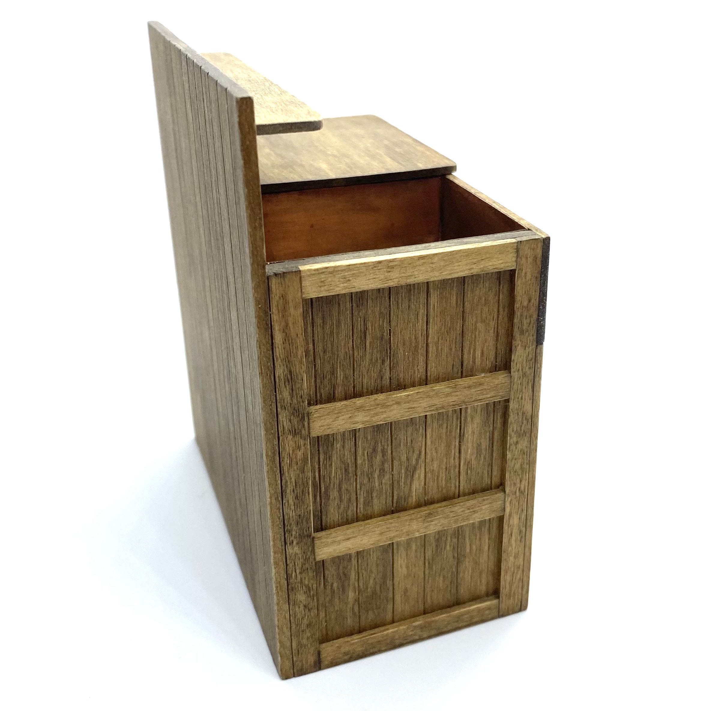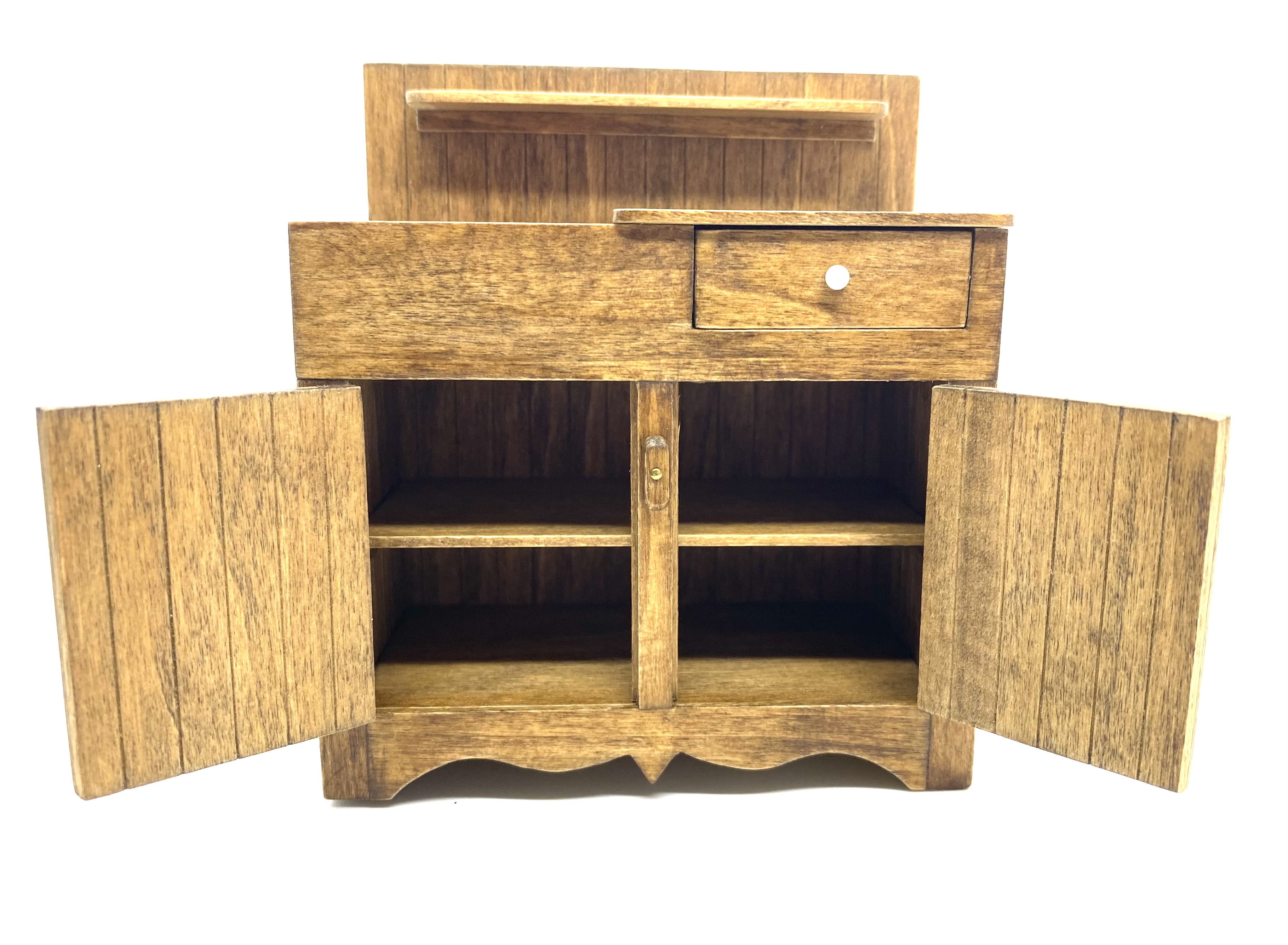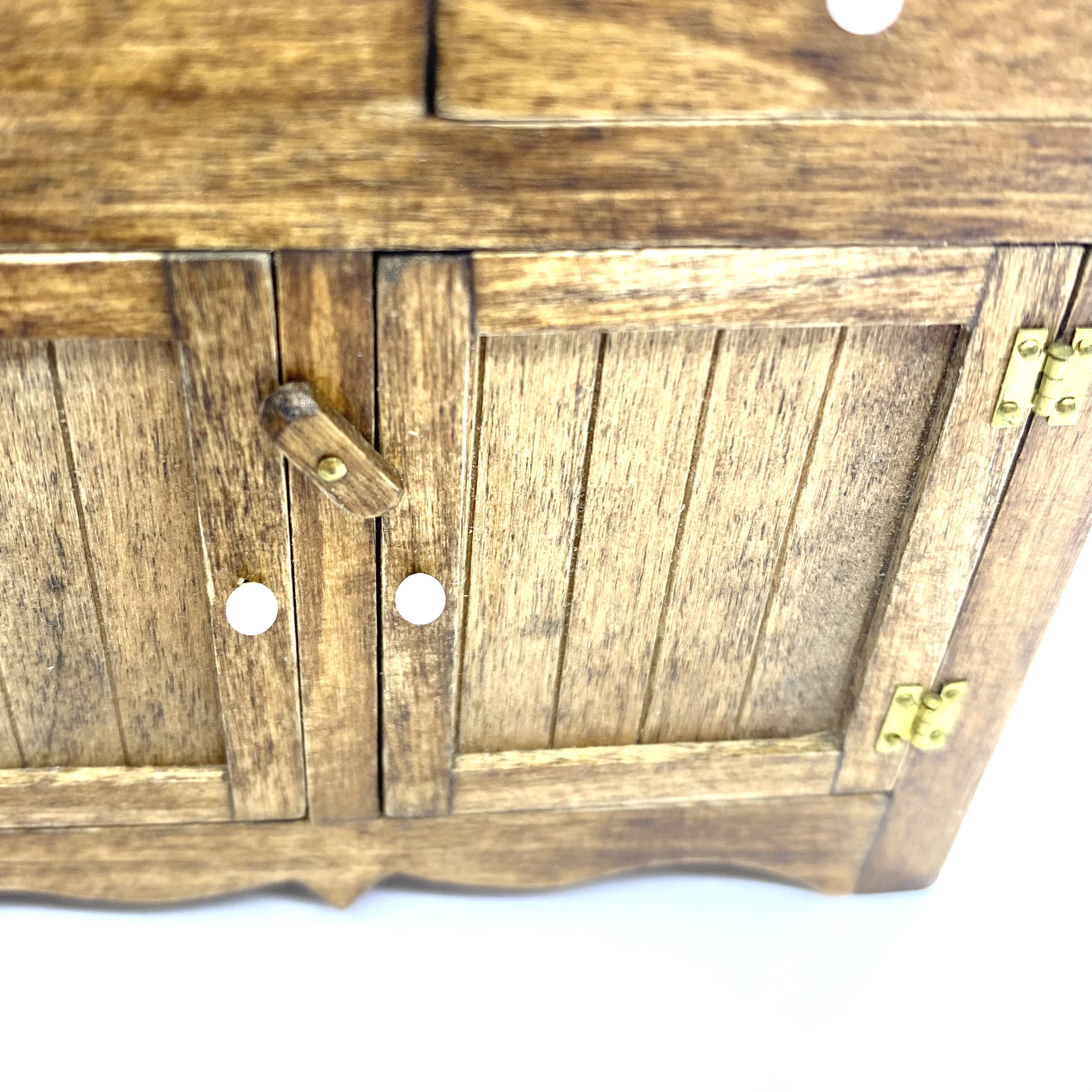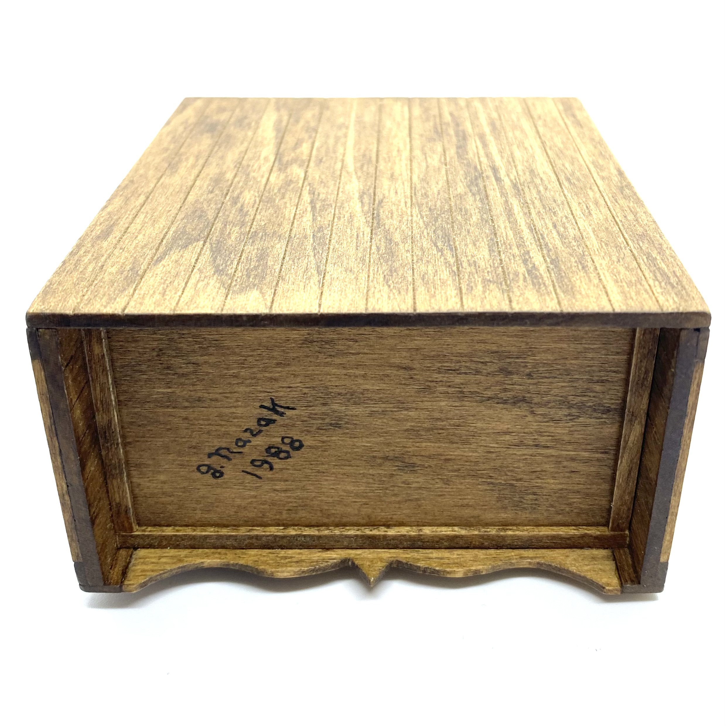 This beautiful country-style dry sink is signed on the underside by ‘J Nazak’, an artisan about whom I can discover next to nothing. My research revealed that she or he also created a primitive-style kitchen dresser with pull-out metal-lined bins, and a pie safe with pierced metal doors, both of which match this sink in execution and in the type of handles used. These pieces were sold on eBay in early 2022. I presume that all three pieces were made as a set or series, though the dresser is dated 1990 and the pie safe, like this dry sink, 1988.