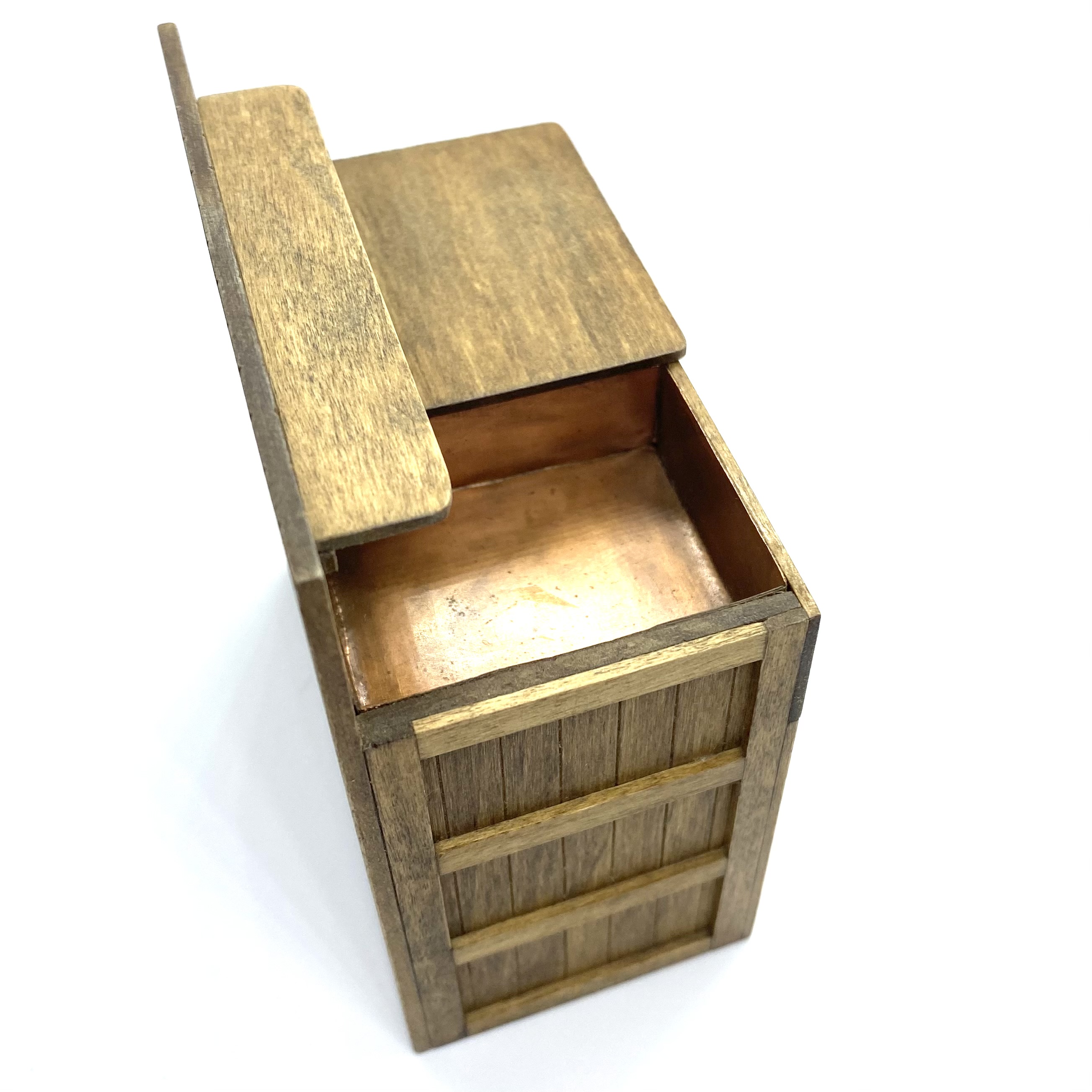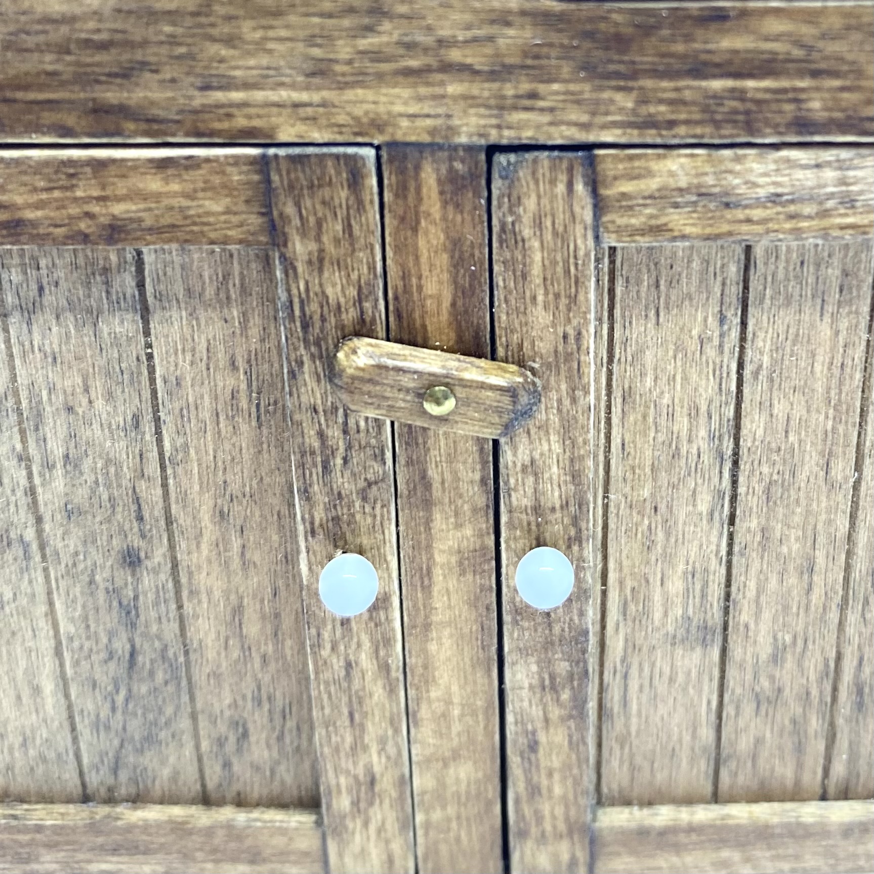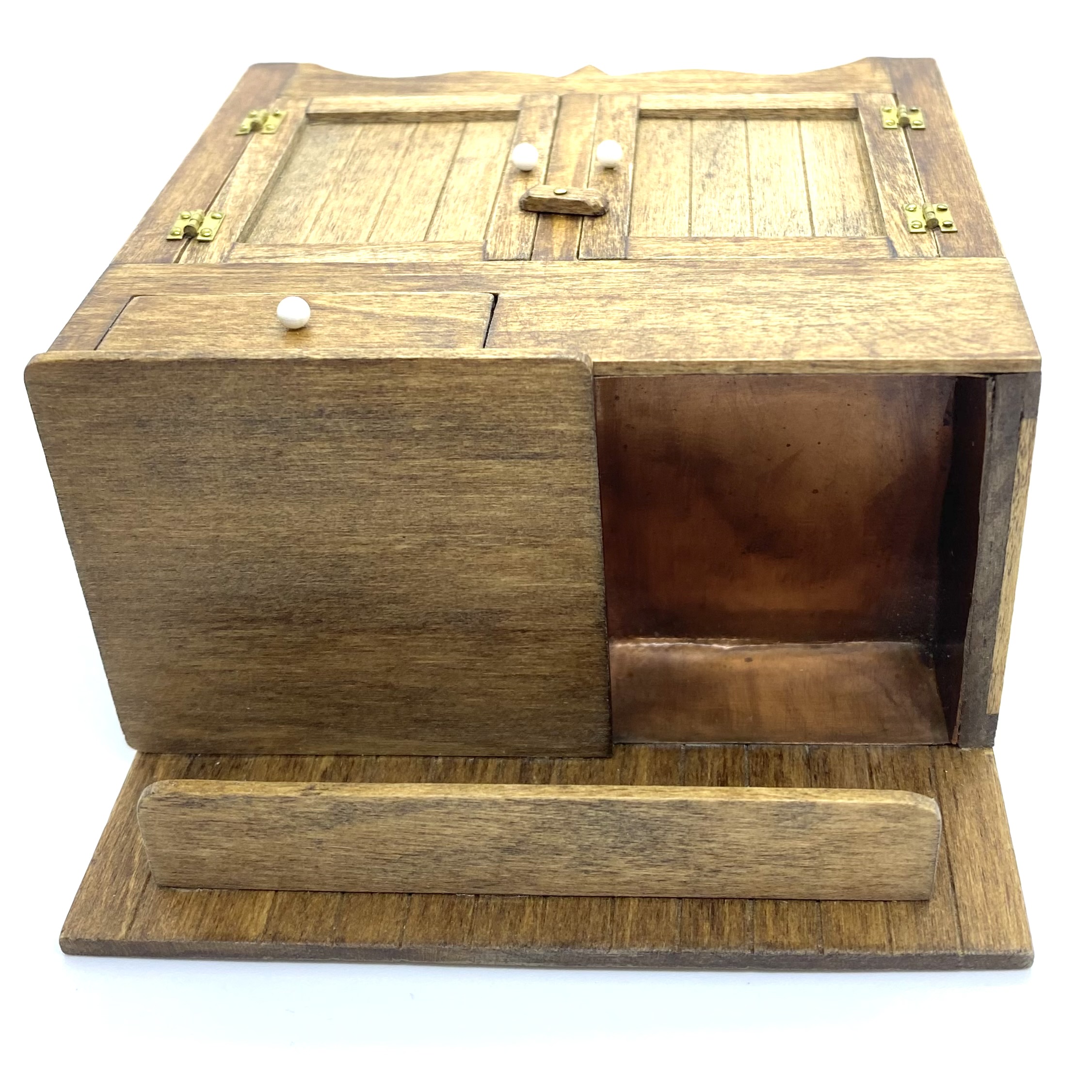 It is a fine piece of work, with a copper-lined basin, a cutlery or utensil drawer, and a pair of doors secured with a tiny twistable catch. The doors, sides and back are planked, and supported on doors and sides by cross-bands of wood. There is a small shelf for utensils or washing powder and a draining board. It’s such a lovely thing and I’d really love to know more about the artisan, so if anyone has any information on J Nazak, please do get in touch!