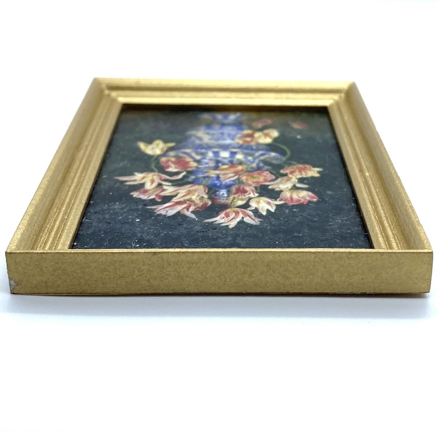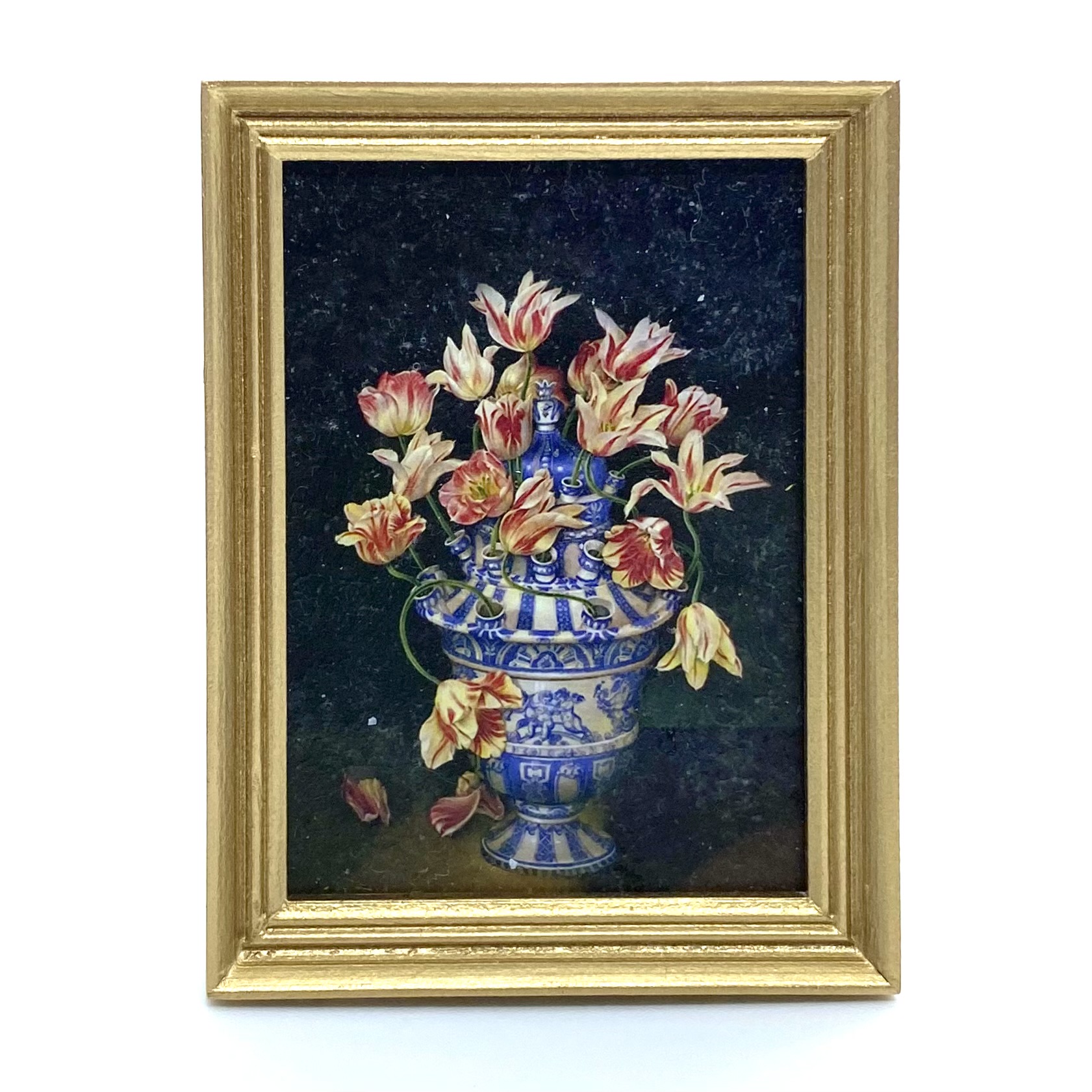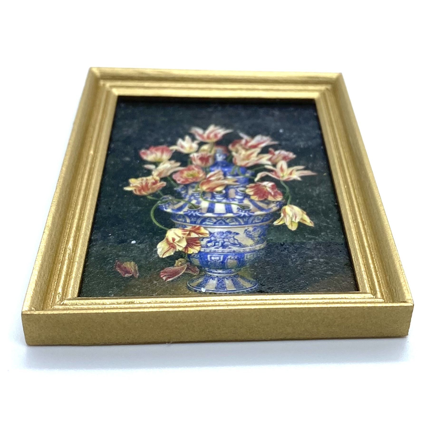 Created using Mariangela’s impressive technique, which gives these prints the appearance of real textured miniature paintings. With its blue and white vase, this picture will bring together the Dutch still-lives and the Chinese and Delft porcelain on display in the Drawing Room.