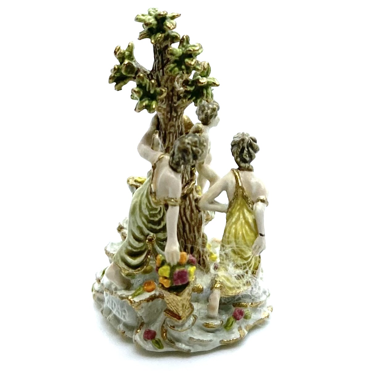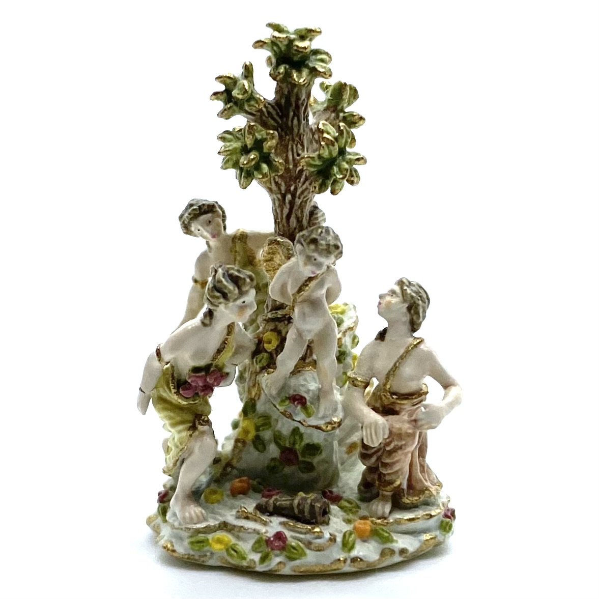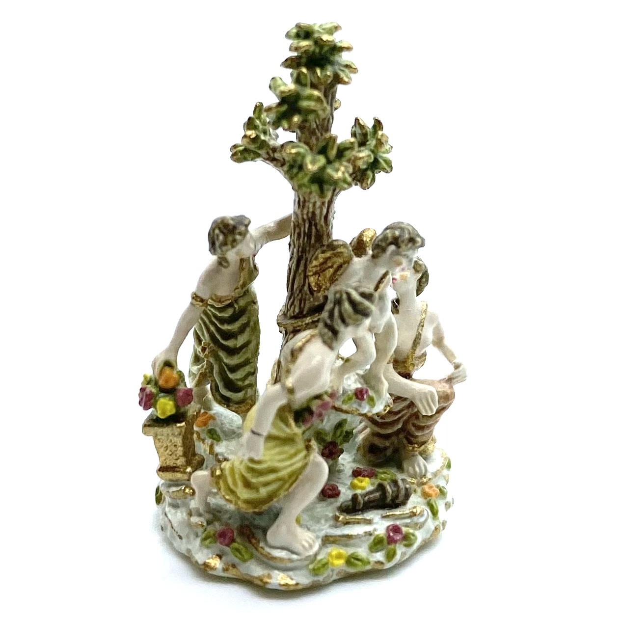 ‘#32 Three Graces Distressing Cupid – 1997. Permanently retired, secondary market only. Height 12. A miniature reproduction of antique porcelain. 90 figurines painted, issue price $235. Four prototypes. 15 artist proofs, issue price $352.50. 13 RTV showpieces, issue price $353.50. Four studio sample sets.’