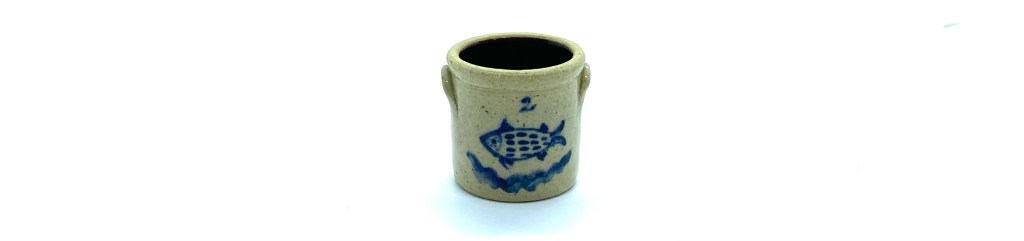 A characteristic and relatively recent piece by Jane Graber. I’m rather fond of these little crocks, which will be displayed in the Servants’ Hall downstairs, and wonder what they might be used for. As this one has a fish painted on it, I fancy it might be the perfect storage container for mackerel paté: the stoneware would certainly keep it nice and cool in the pantry.