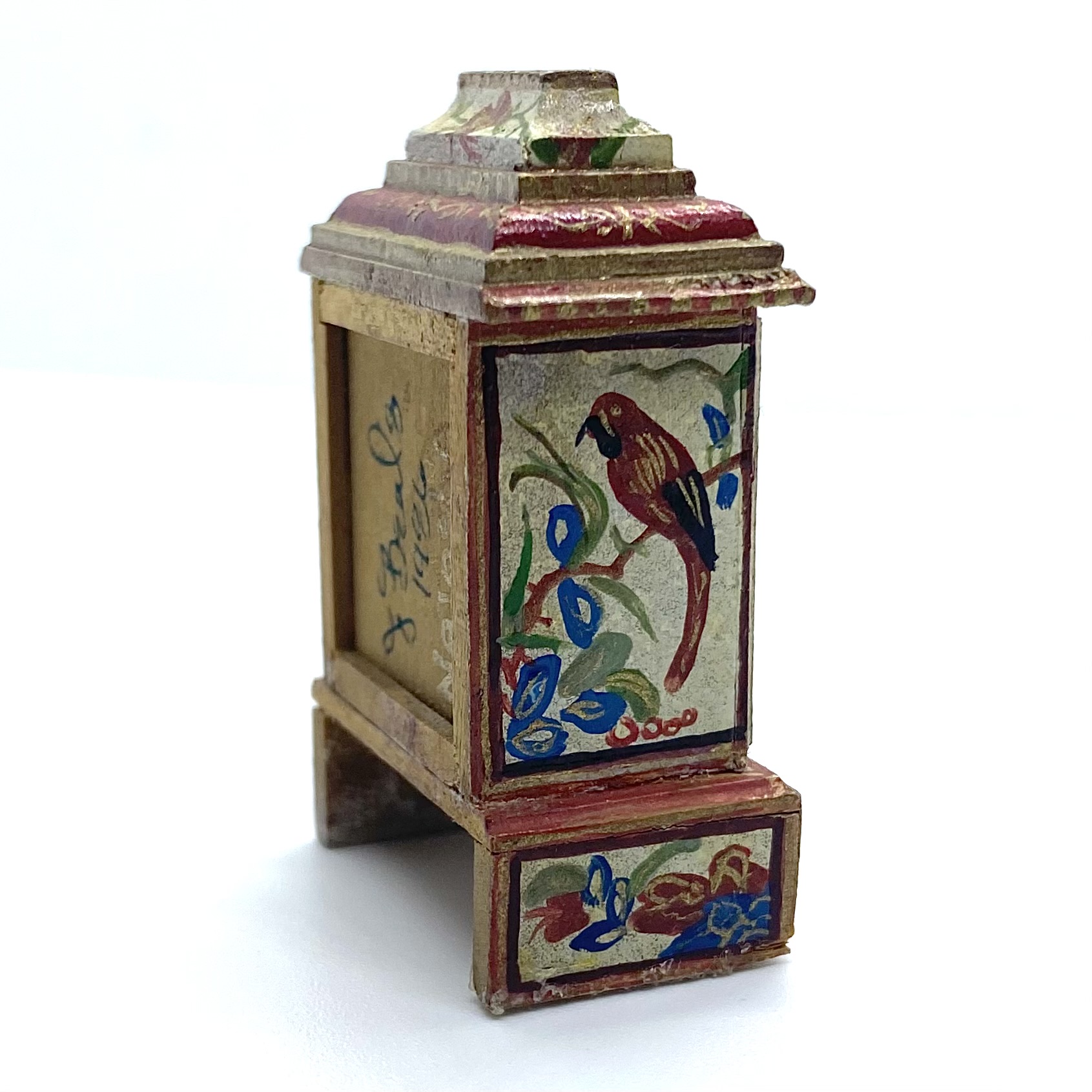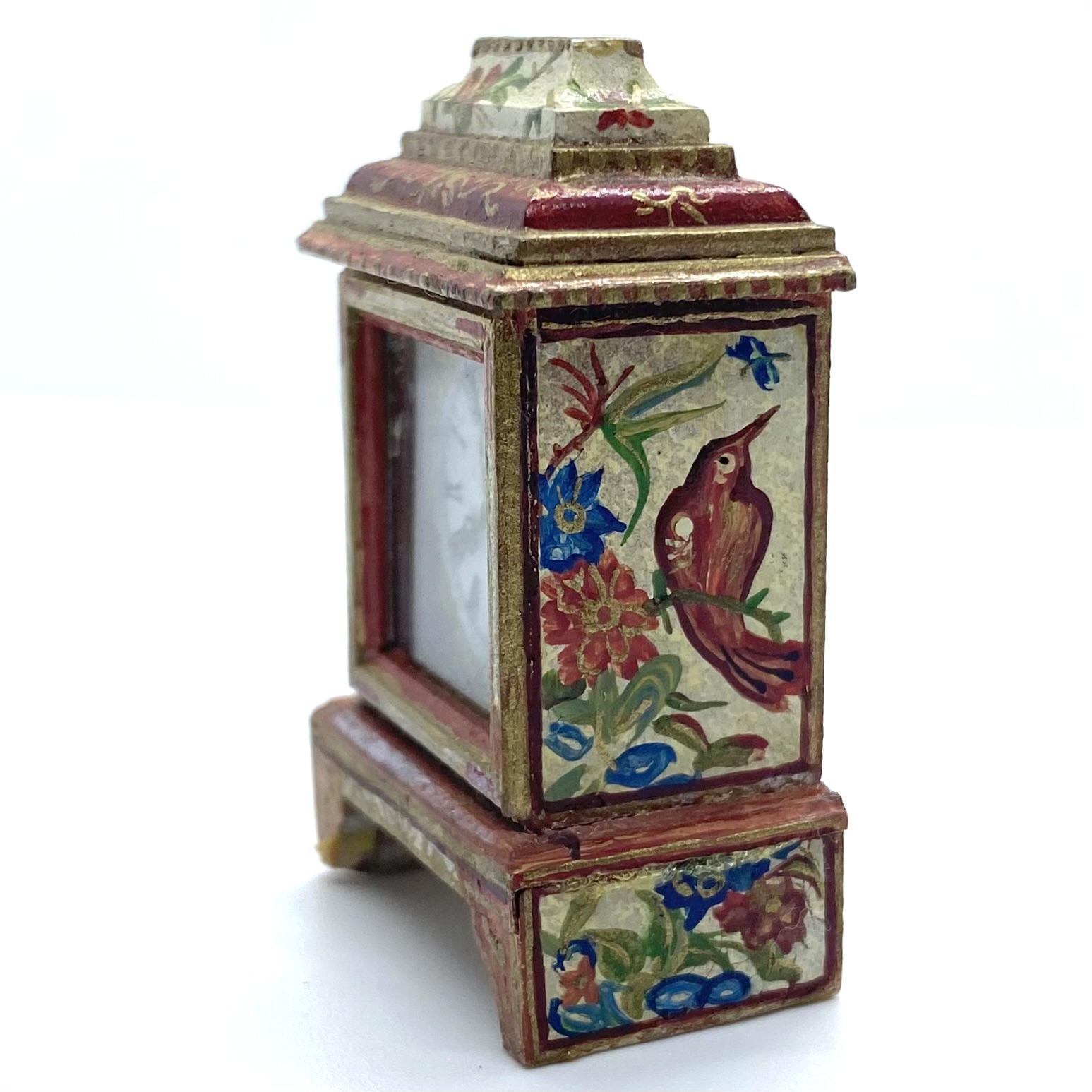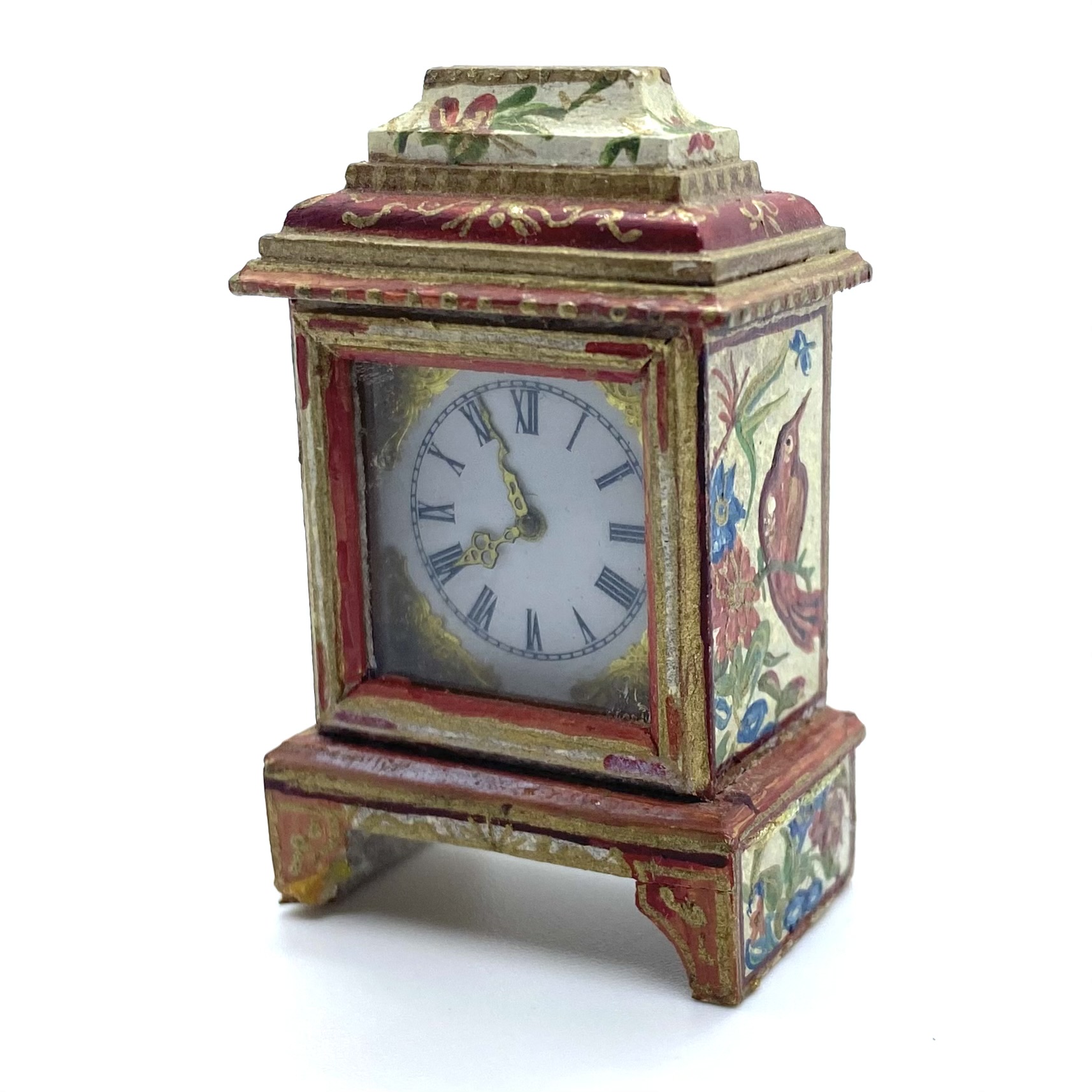 This was a phenomenally lucky eBay find, not only because Natasha Beshenkovsky’s work is so much in demand, but also because you get two artisans for the price of one. The clock itself is made by Judy Beals, while the elaborate painted decoration, a host of birds and flowers, is by Natasha.