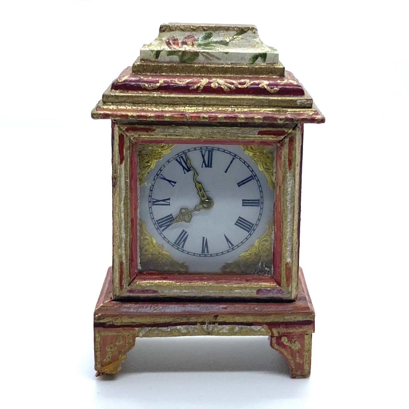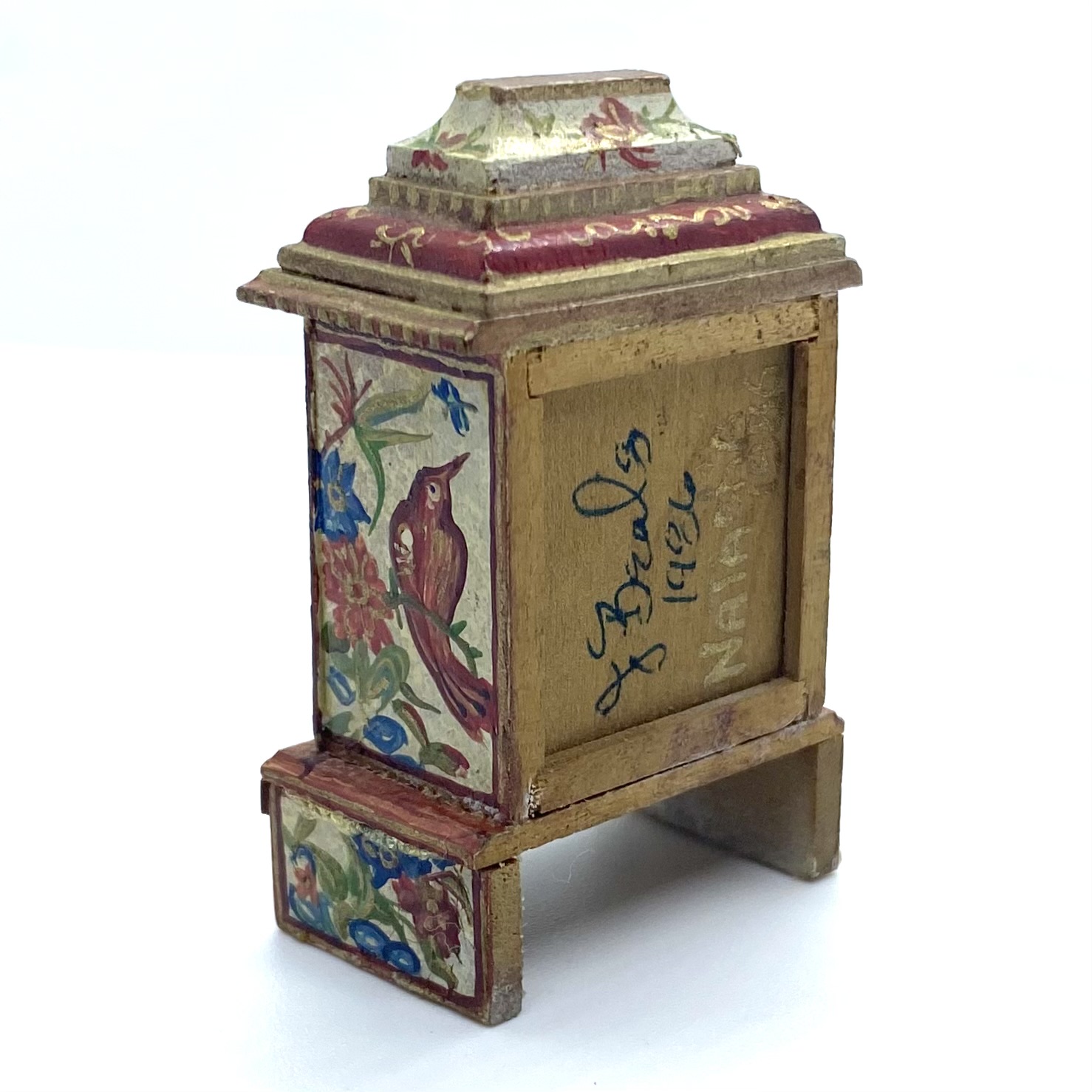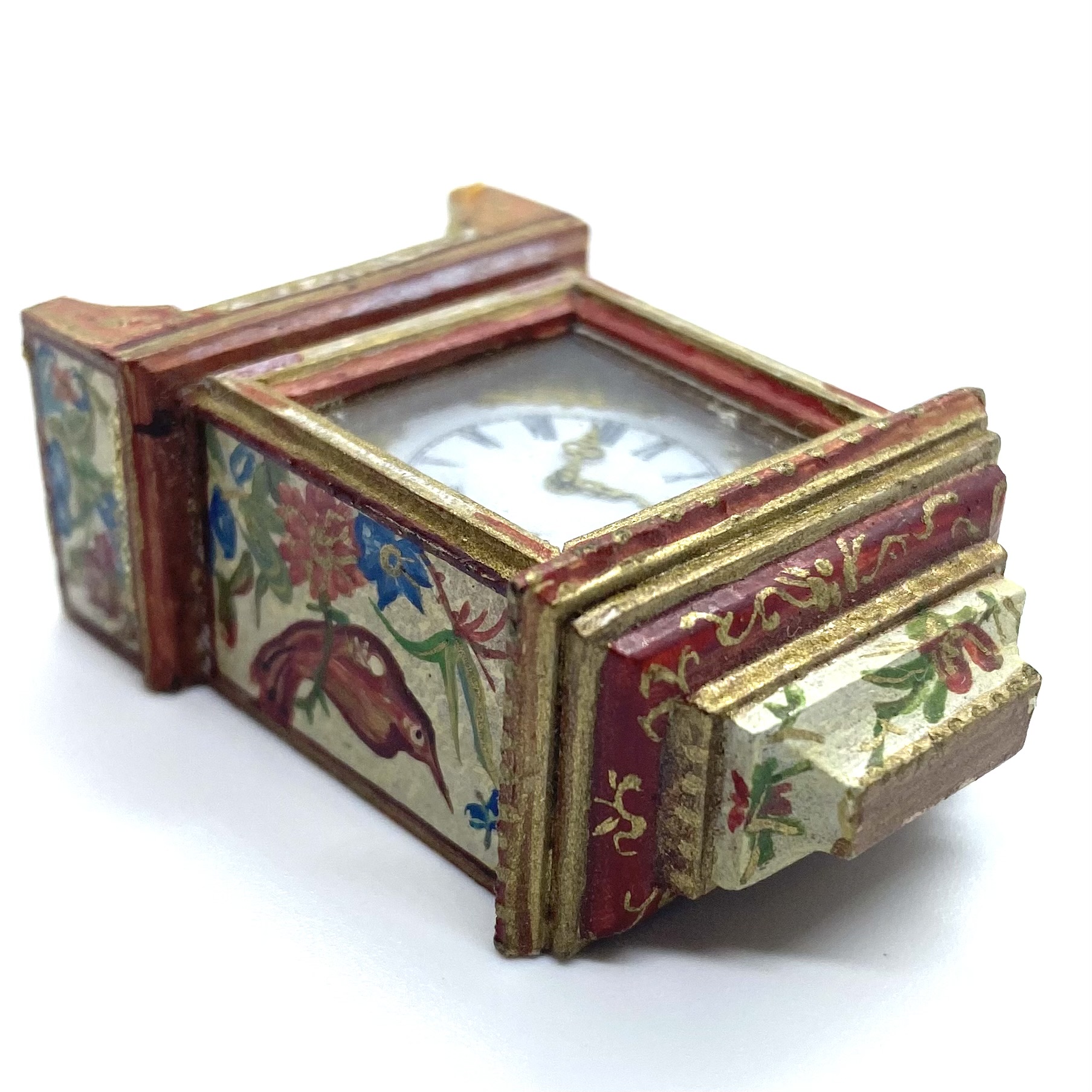 This was a phenomenally lucky eBay find, not only because Natasha Beshenkovsky’s work is so much in demand, but also because you get two artisans for the price of one. The clock itself is made by Judy Beals, while the elaborate painted decoration, a host of birds and flowers, is by Natasha.