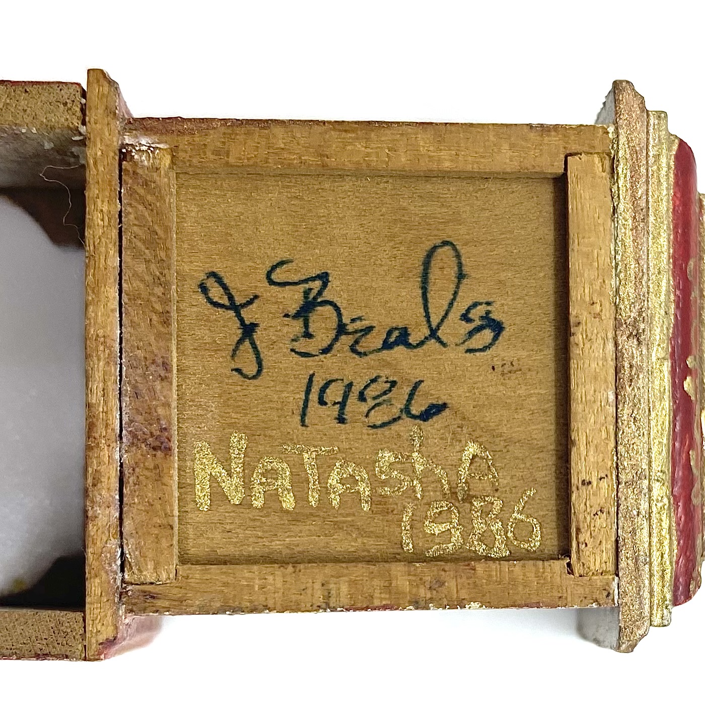 Inscriptions: signed ‘J Beals 1986’ and also signed ‘Natasha 1986’ (both on the back of the clock)