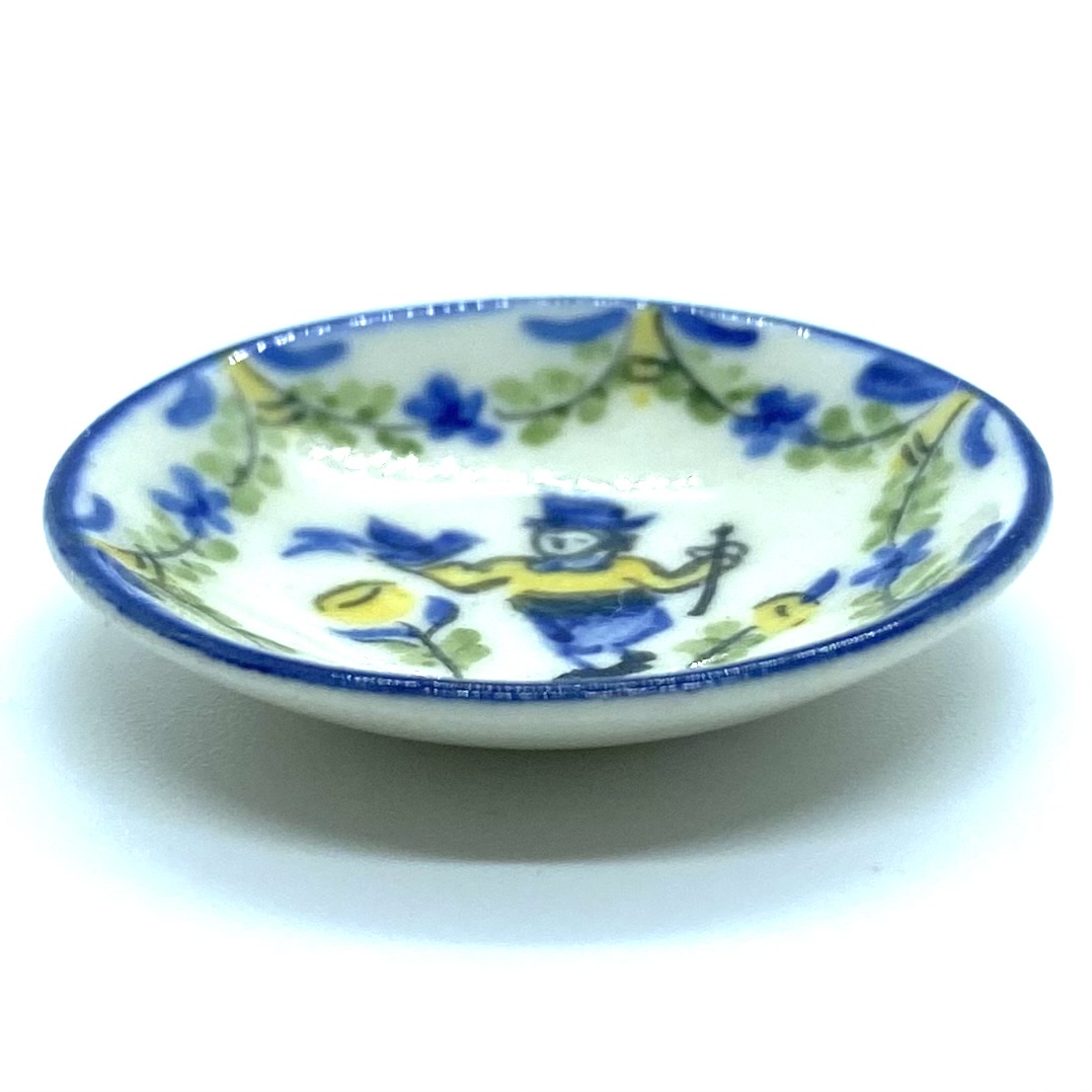 This is one of a set of three ceramic plates, all with the same painted edging design, showing a boy, a man and a woman respectively. Ana Felipe Royo, who is one of multiple talented artisans in her family, specialises in miniature ceramics, and so, with a reasonable level of confidence, I’ve given her name as the artist behind these plates.