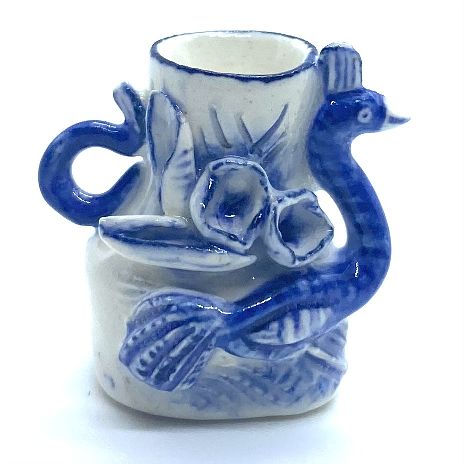 These charming vases by Sally Meekins are going to be just right for the blue-and-white theme of the Drawing Room. They have a real sense of personality to them and are amazingly small and delicate in real life.