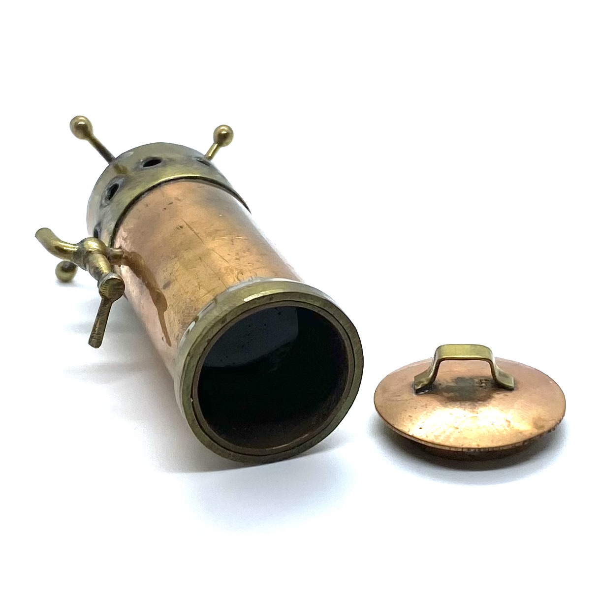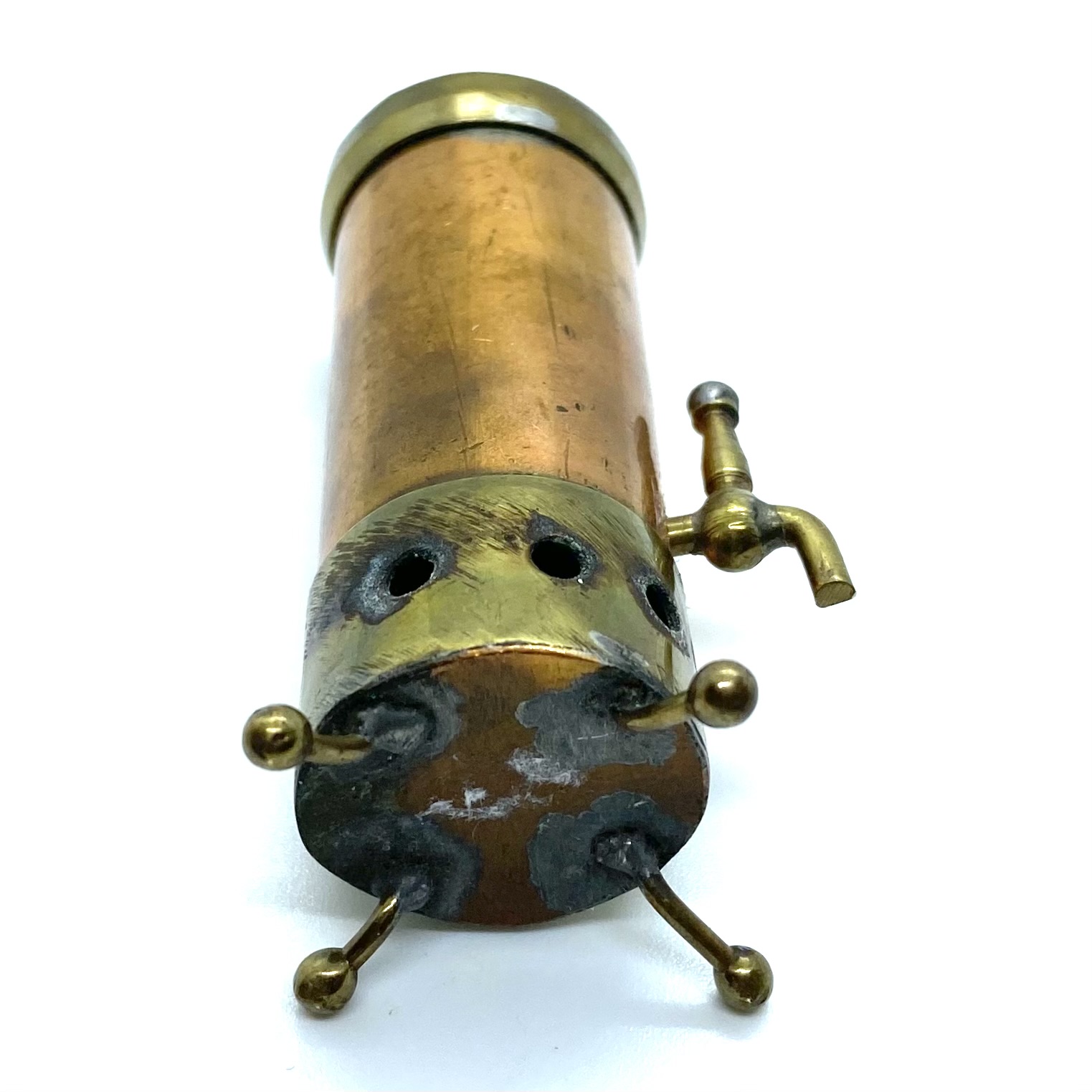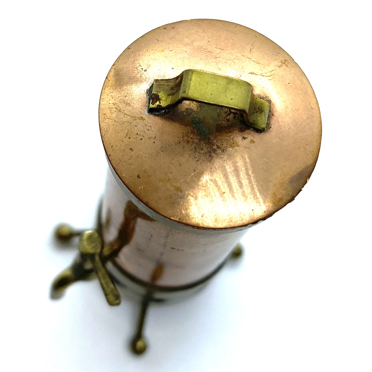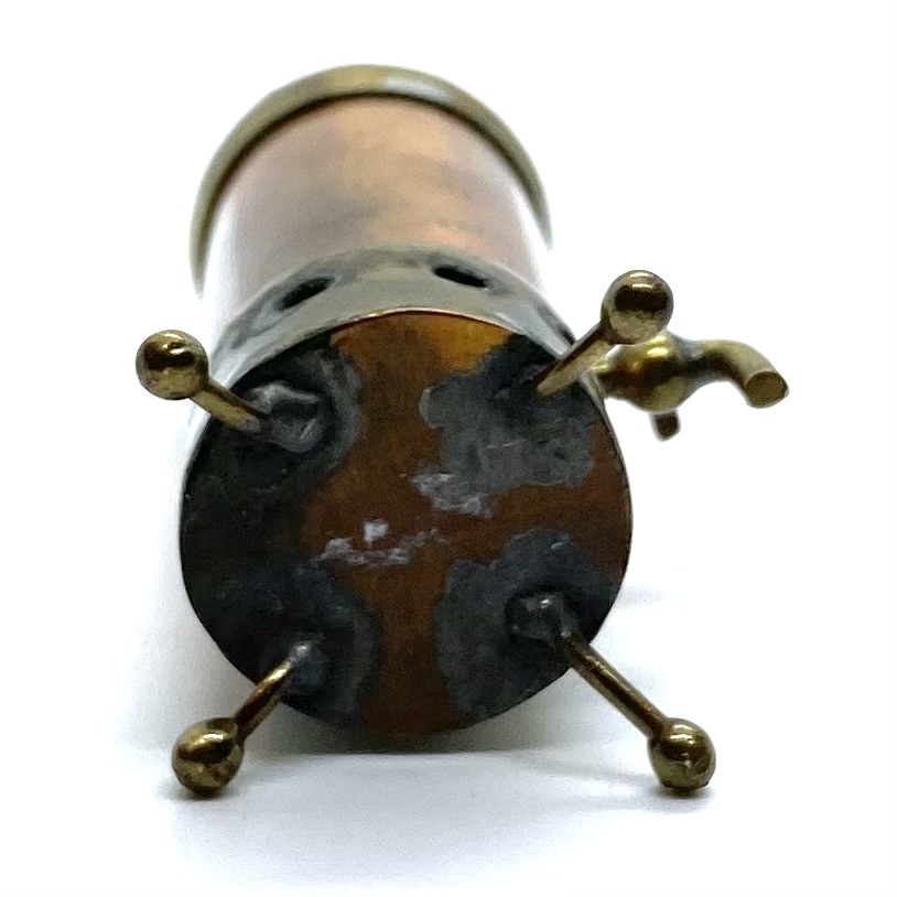 In a busy kitchen it helps to have plentiful hot water on hand and, in the Victorian period, it was wise to have a small boiler available so that tea and coffee could quickly be made, and washing-up water drawn off. This boiler would stand on a worktop in the corner of the kitchen. In the neighbouring laundry-room, where even more hot water was needed, we have a triple copper boiler, very similar to this, also made by Jeff Mewies.