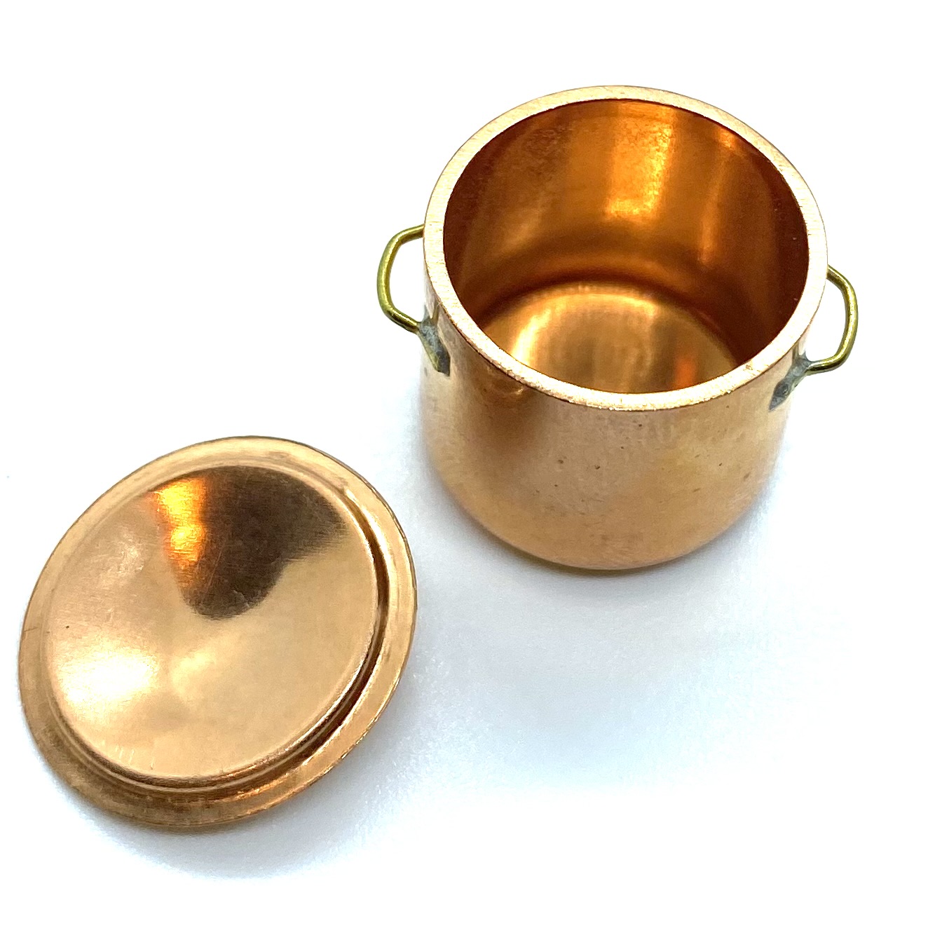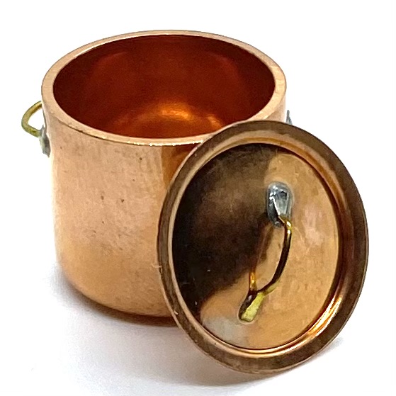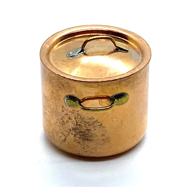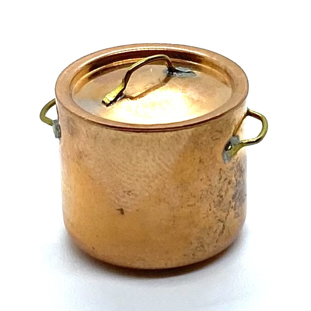 I adore copper and I’m determined that Quartermaine Hall’s kitchen will be enough to make a Victorian cook weep with envy. This copper stock pot is one of several sizes of pot made by Jason Getzan and I hope to build up a collection of his work (you can follow my progress by clicking on his name above). What I love about this particular pot is that it looks slightly worn and well-used.