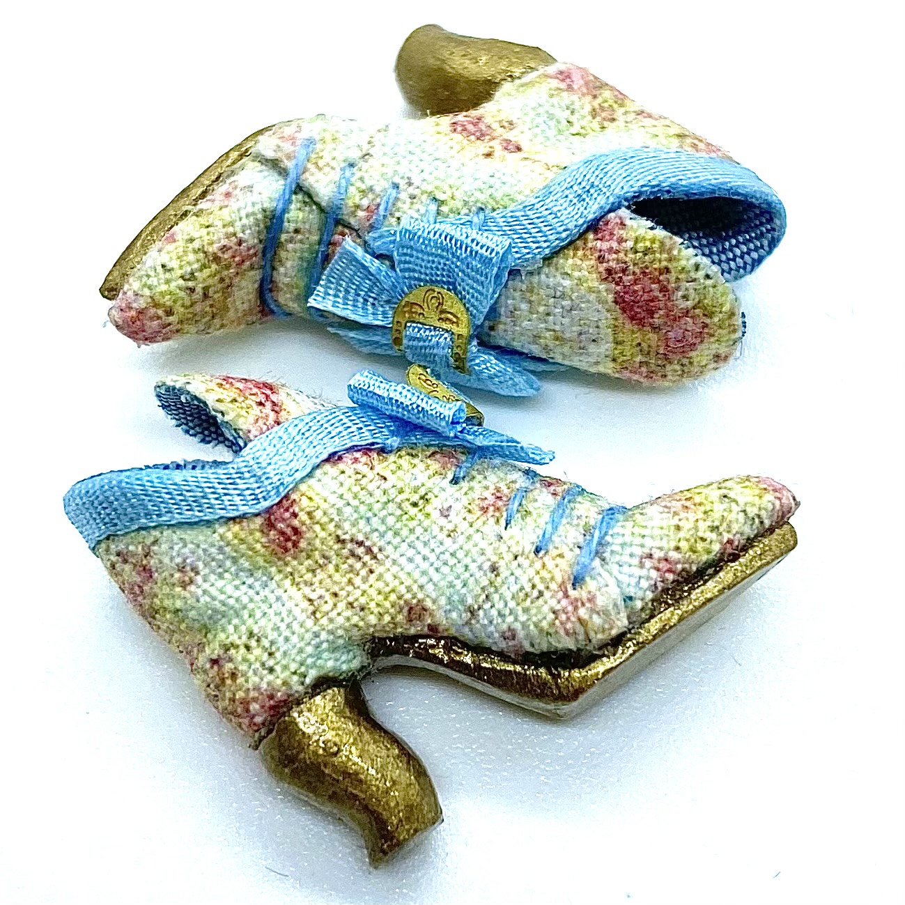 I first met Perri Edwards at Miniatura in 2021, when I bought a pair of her white leather bridal shoes and another pair of boots. Ever since, I’ve been keen to add to our collection. This pair of playful flowered boots, ornamented with laces, bows and buckles, is fit for a princess. In lieu of a princess, however, I suspect they’ll probably end up gracing Isabella’s bedroom.