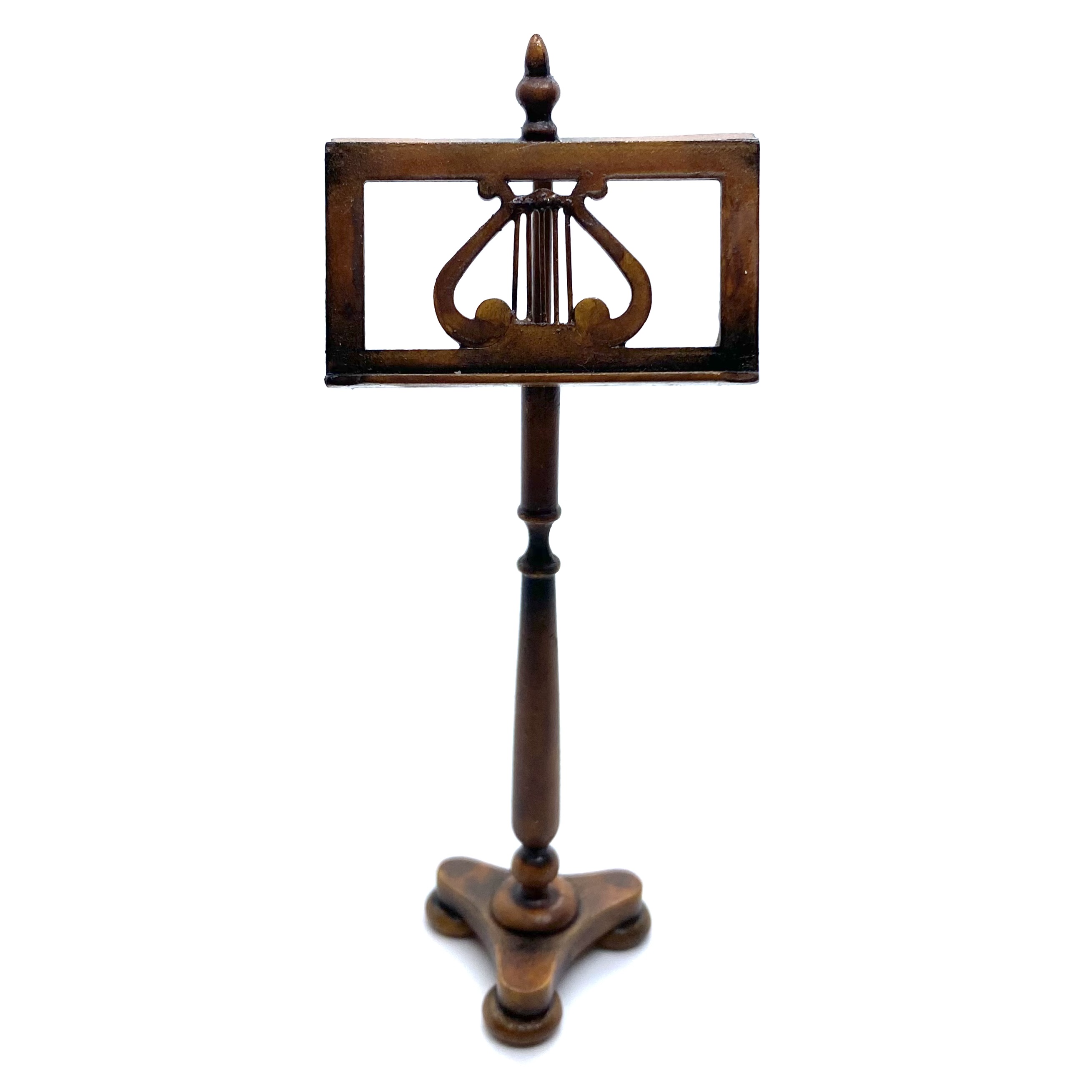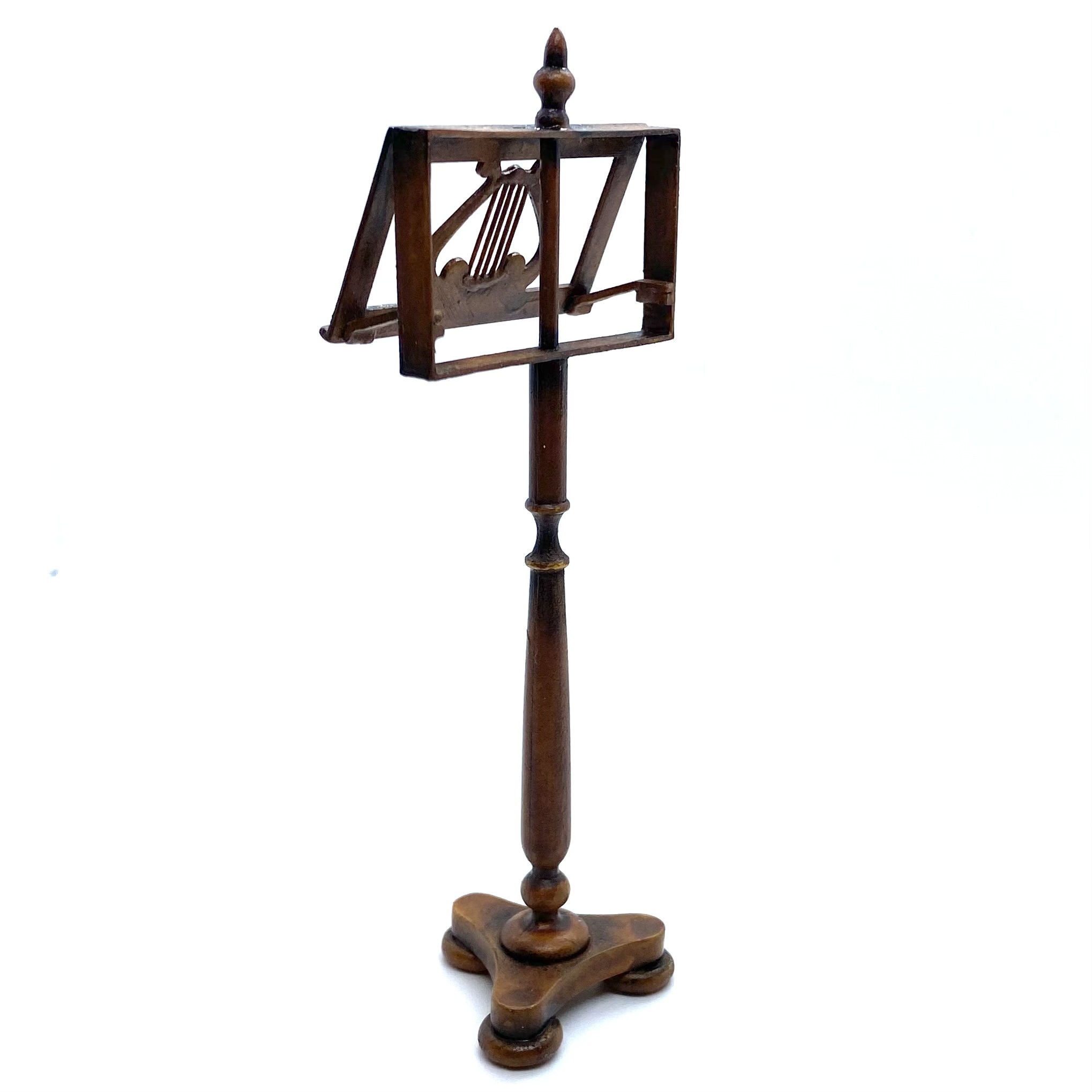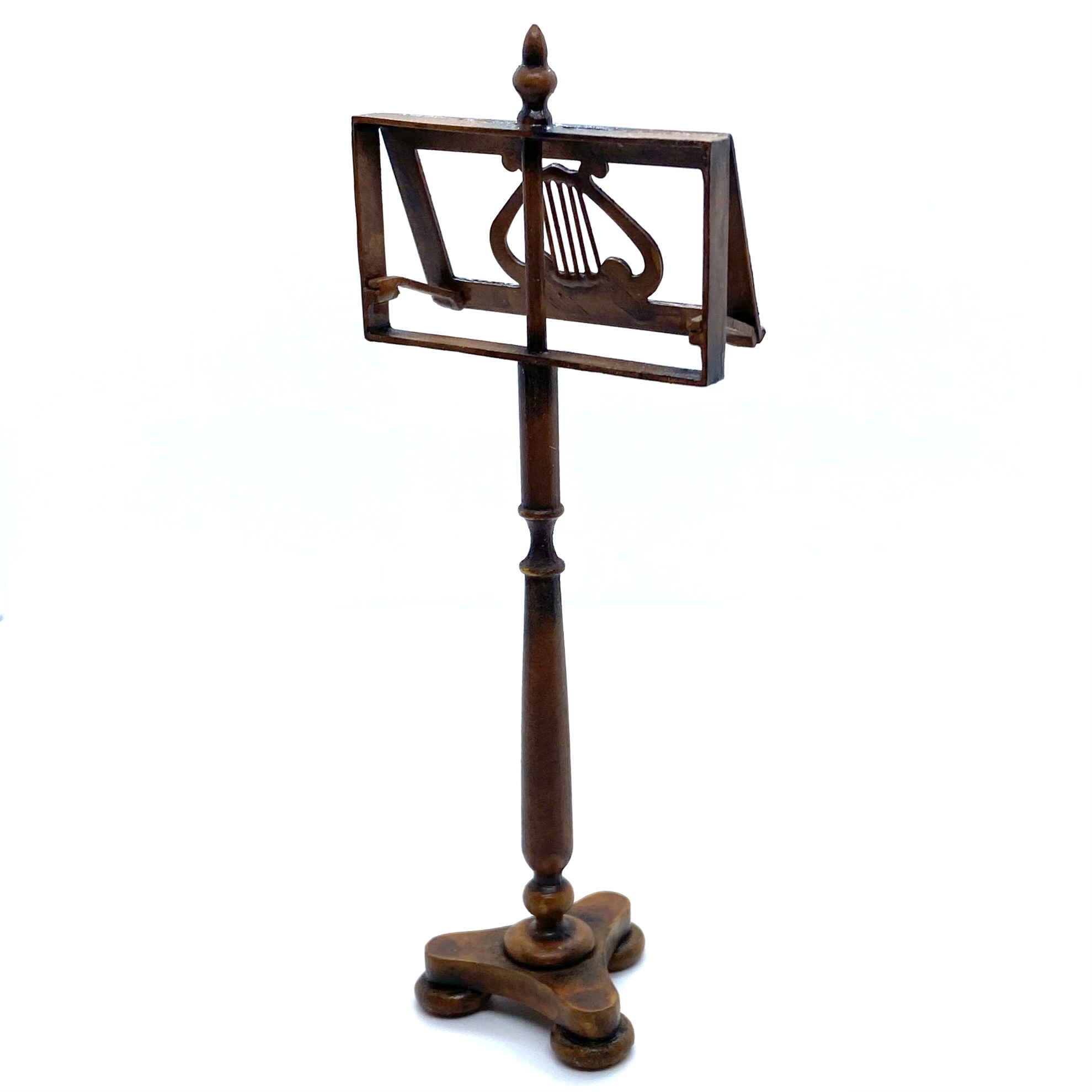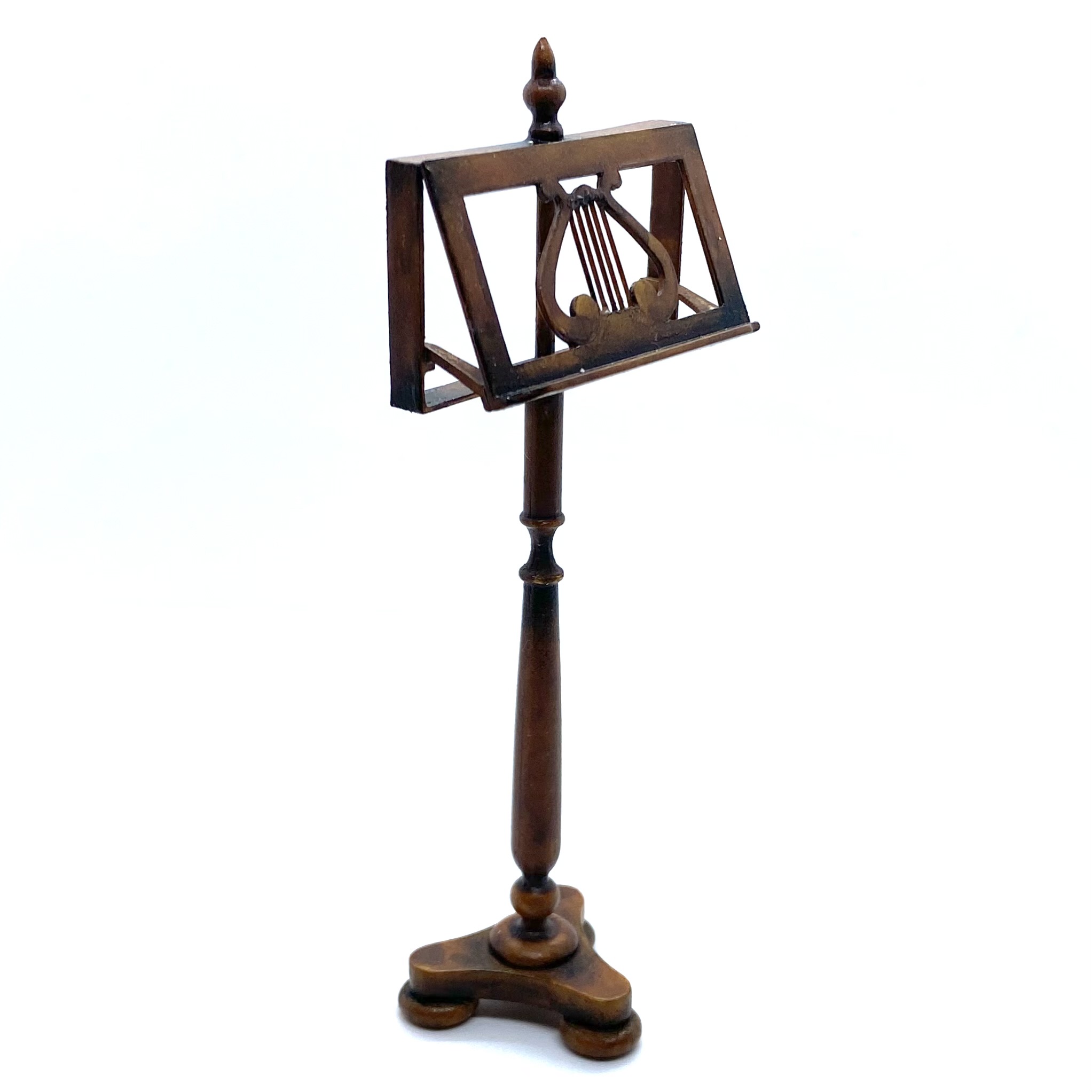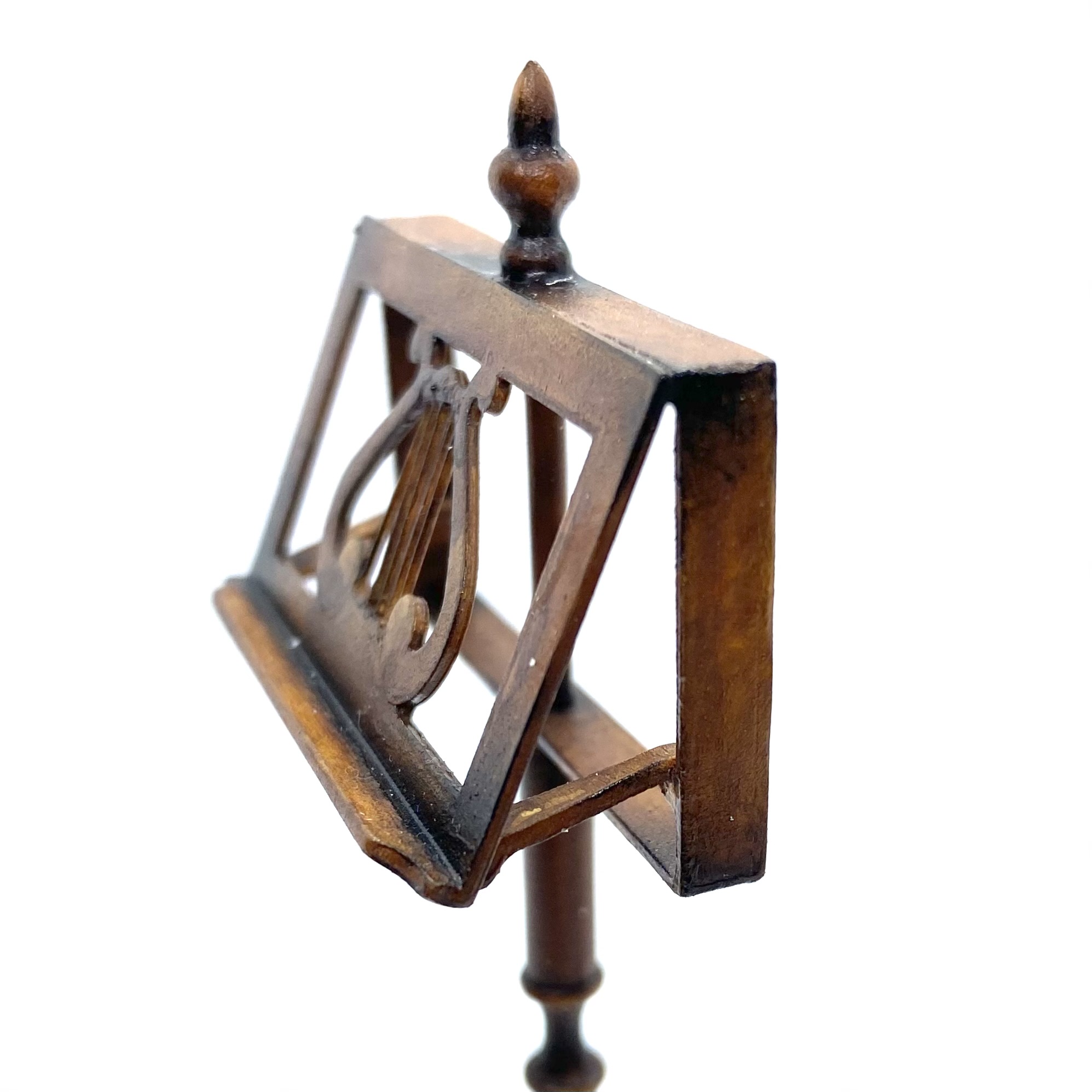 We’ve been trying to find the right kind of music stand for the Music Room: not too flamboyant but with a bit of character. Hungarian Miniatures, as ever, have come up with the perfect solution. Erzsébet Bodzas listed this on her Etsy shop and I snapped it up embarrassingly quickly. Signed and dated ‘Bodzas 2022’ on the underside.