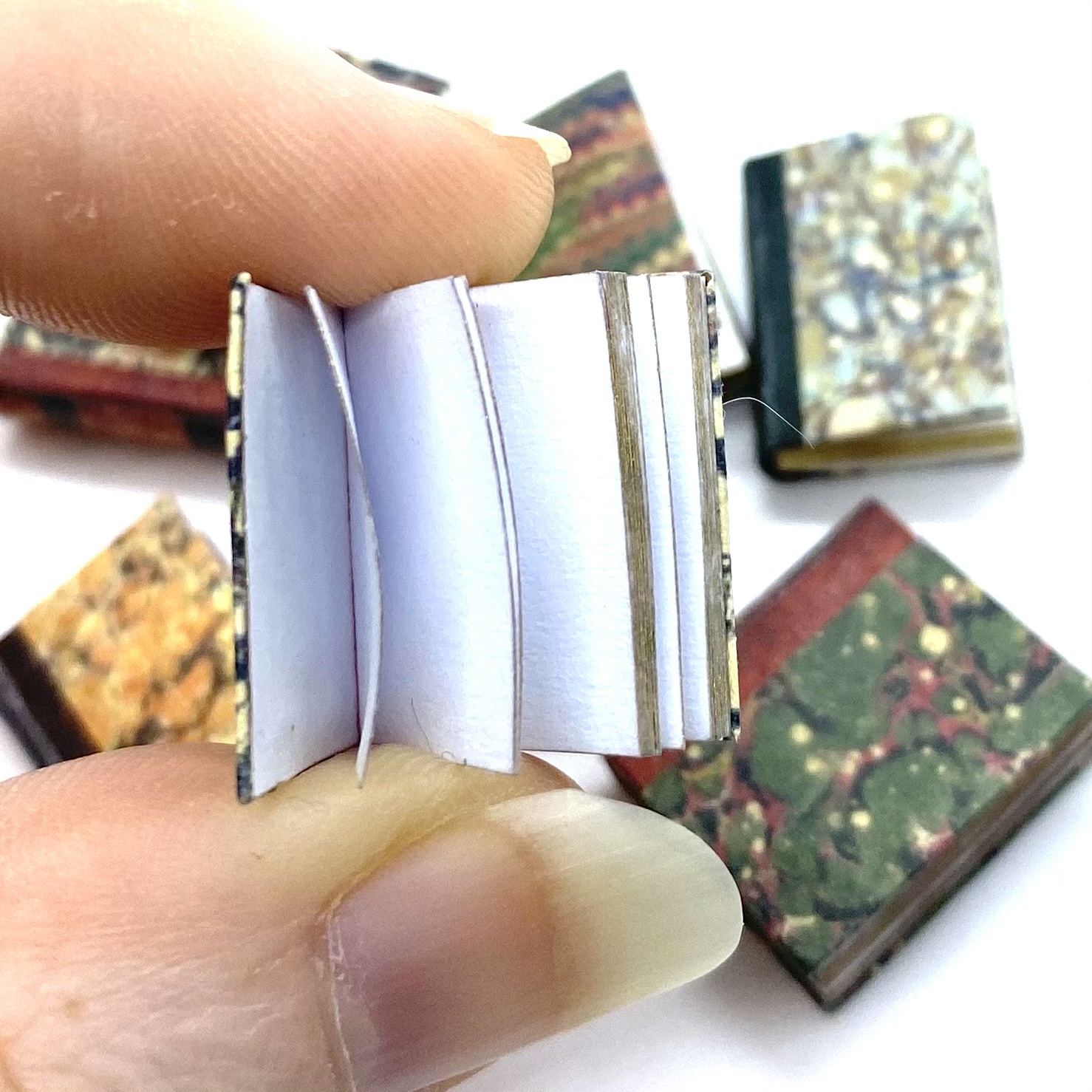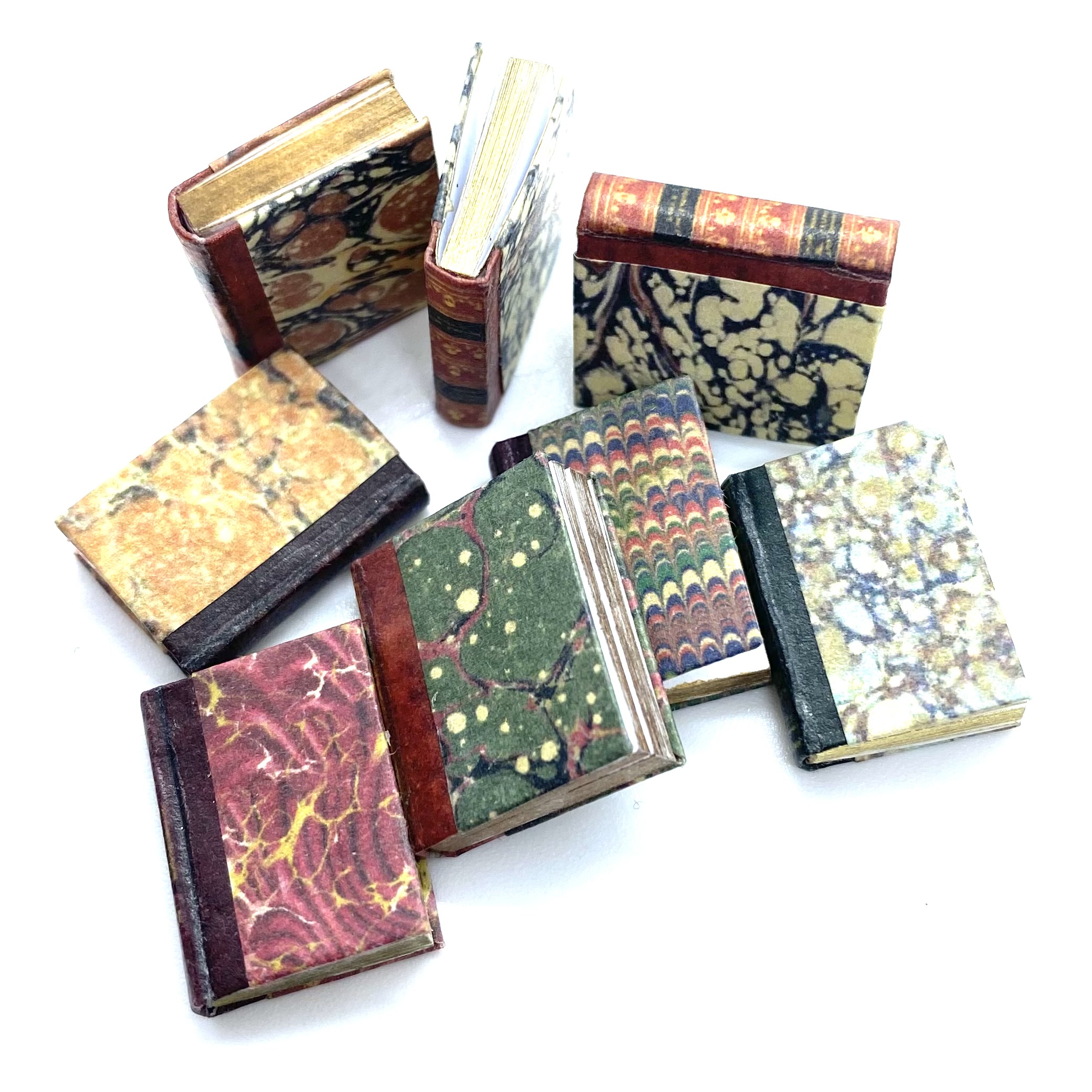 Bound in a variety of beautifully marbled papers with decorated spines. Perfect for filling up the bookcases in the library!