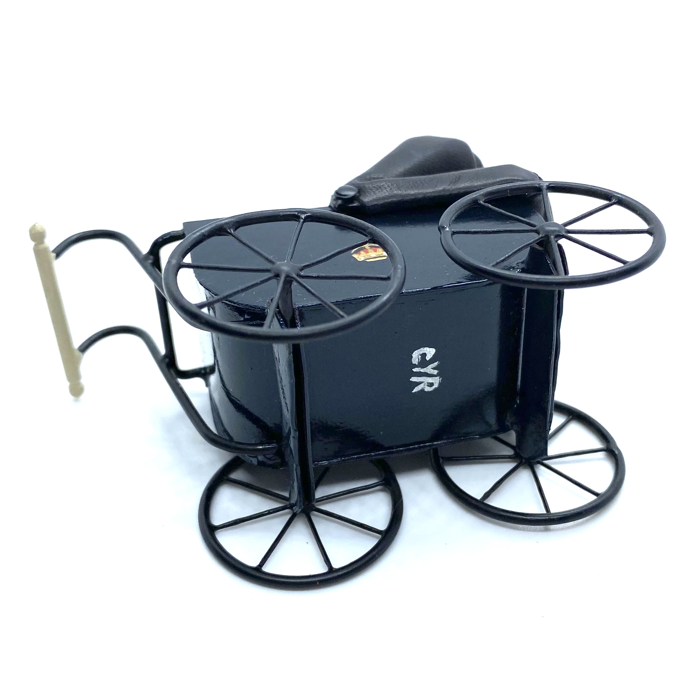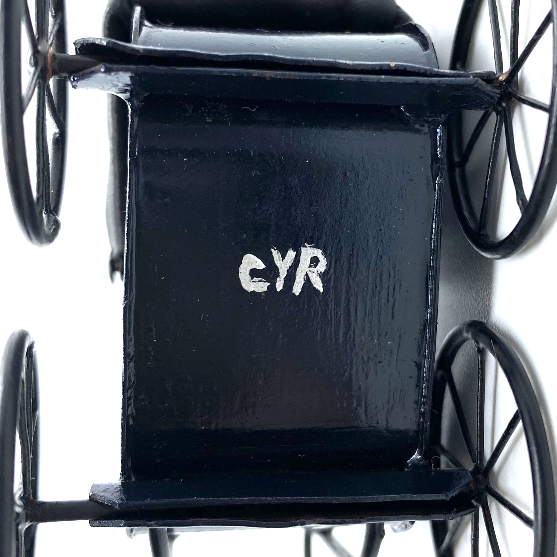 Inscriptions: signed with monogram ‘CYR’ (on the underside of the pram)