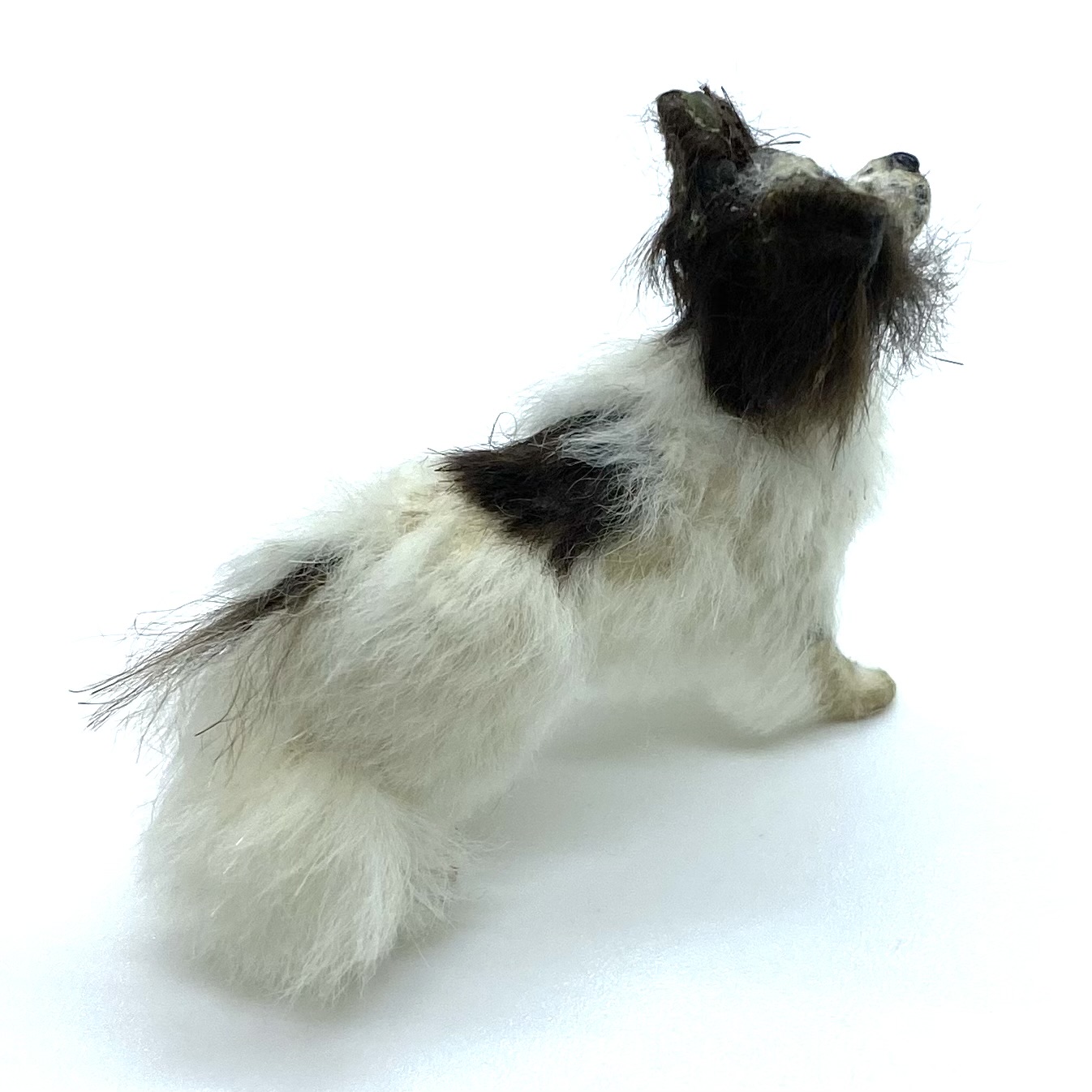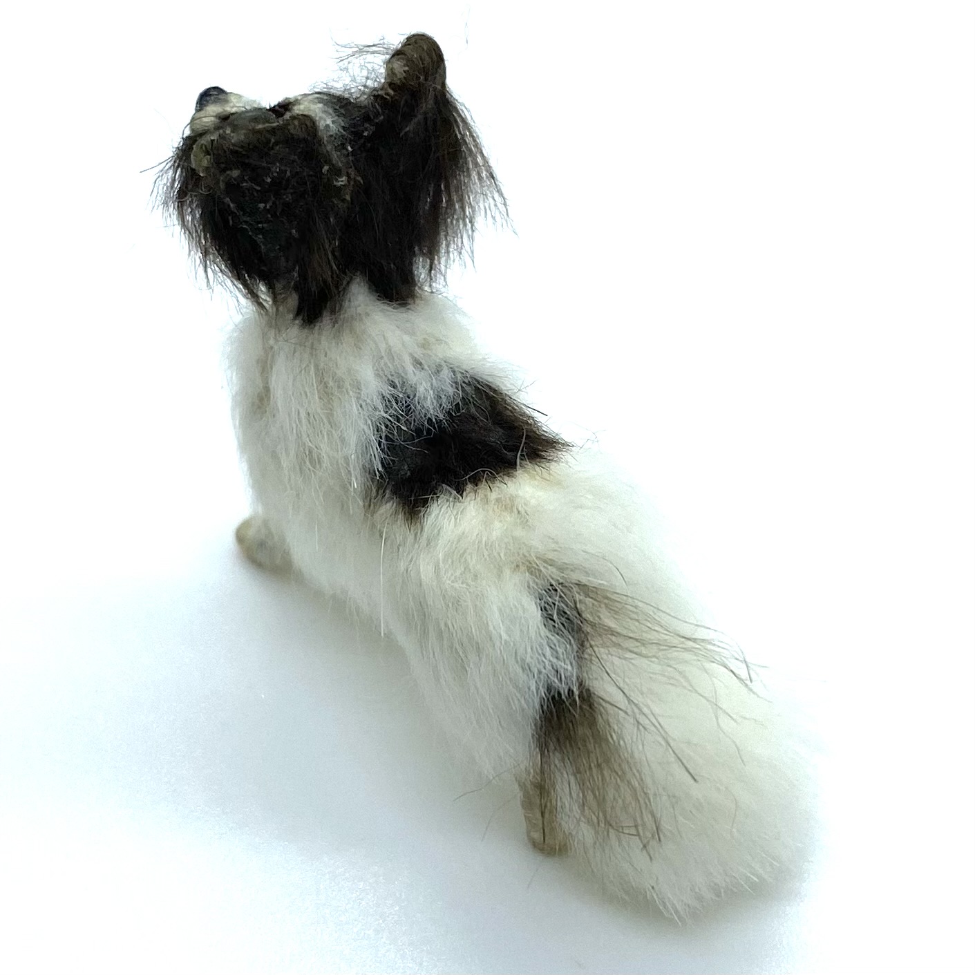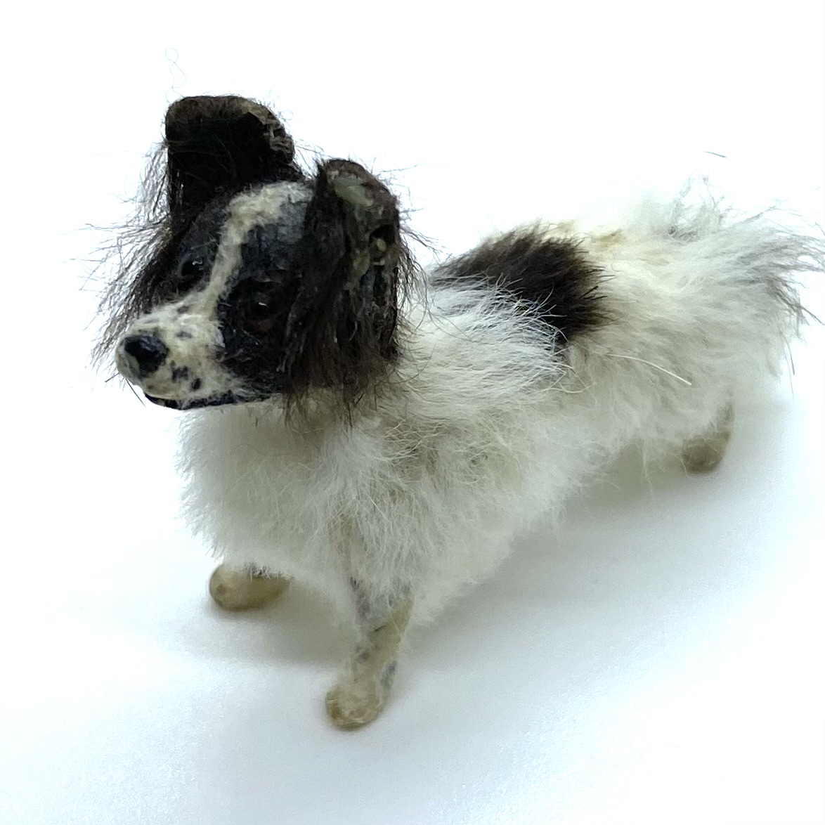 I must confess: I’m not entirely sure what kind of dog Beau is. He looks a bit like the love-child of a papillon and a sheltie, and perhaps those who are more knowledgeable about dogs will be able to help me out. But I was captivated the moment I saw him, with his bright brown eyes and silky ears. I bought him privately from Neal and Lynne Andrew in Devon, who commissioned him from the late artisan Annie Willis in 2002. As with most of Annie’s animals, he is signed on his tummy and he’s full of personality.