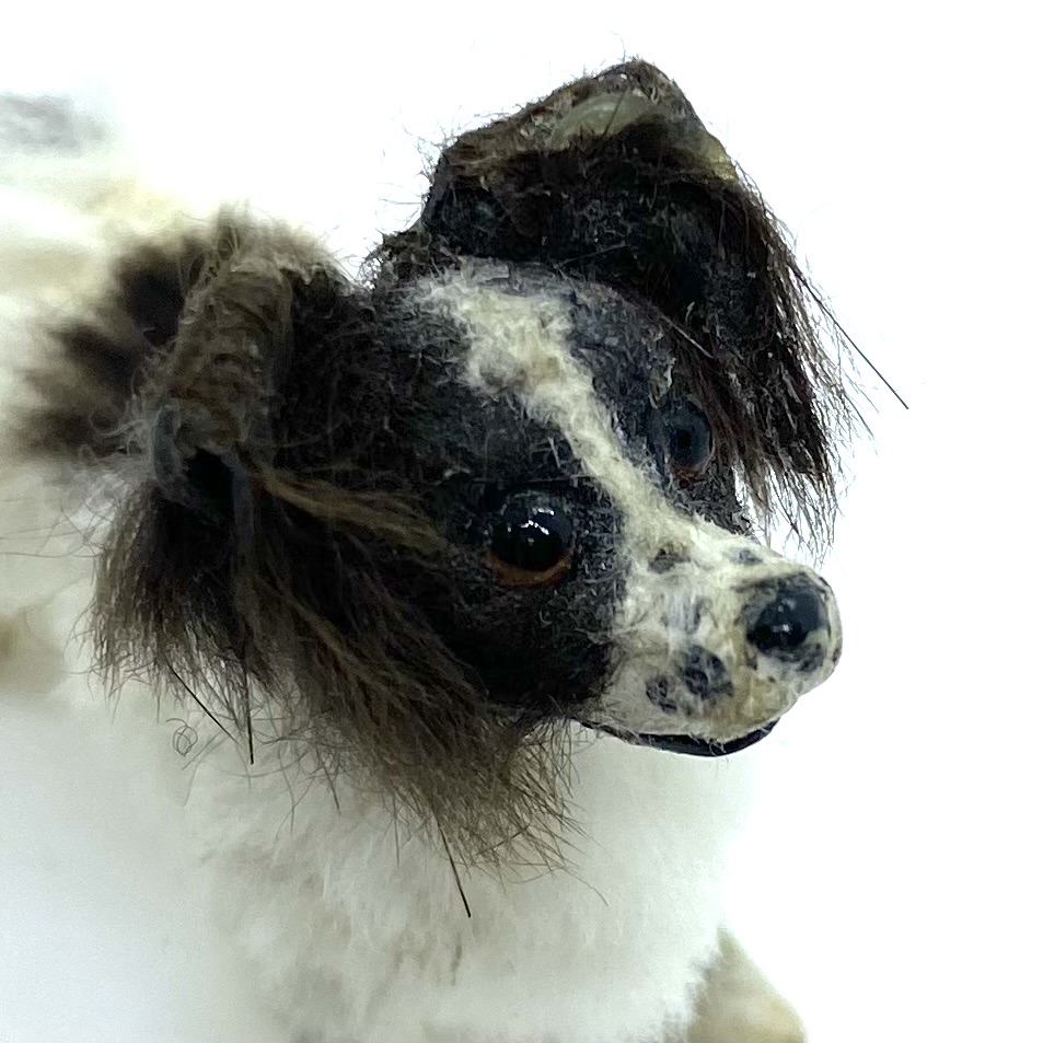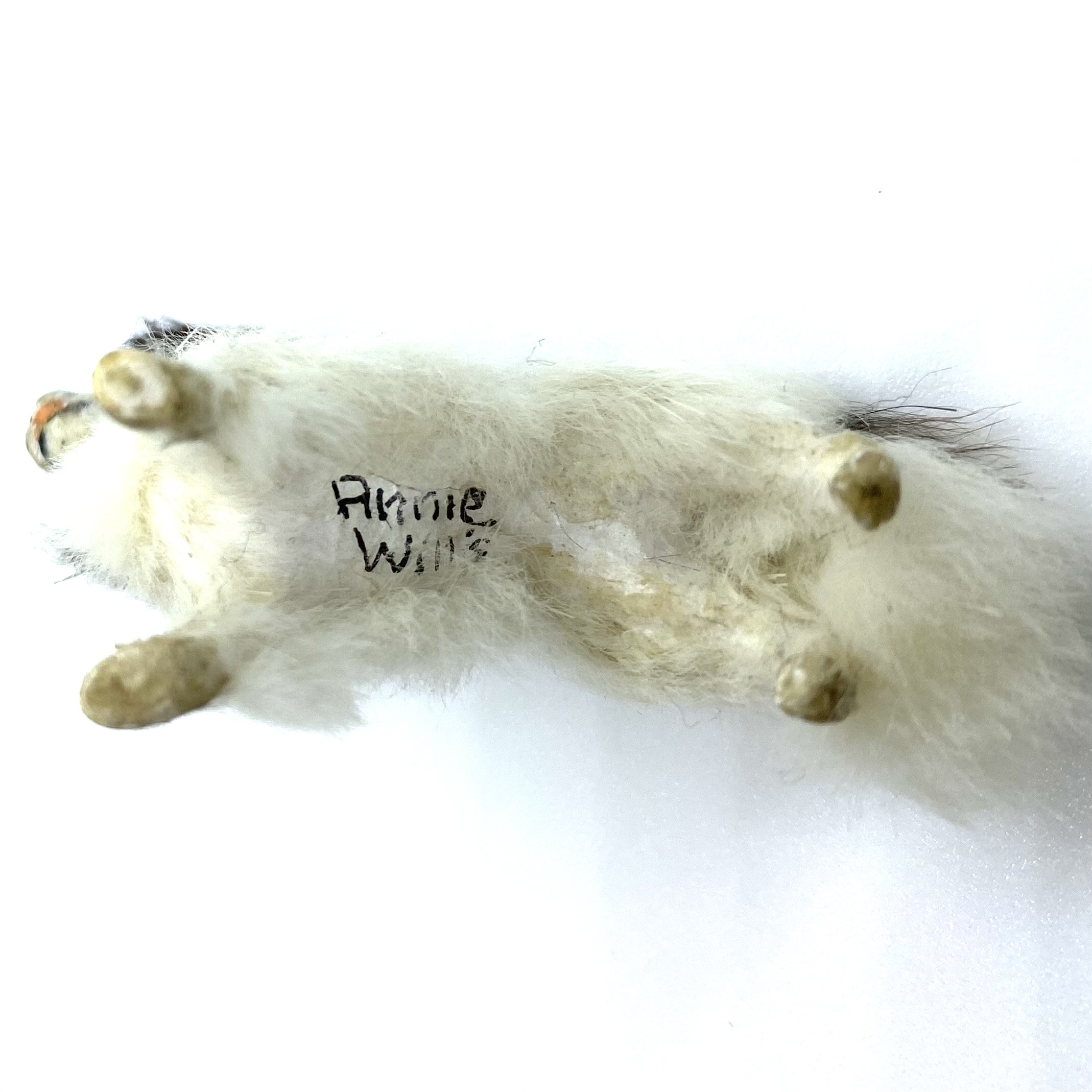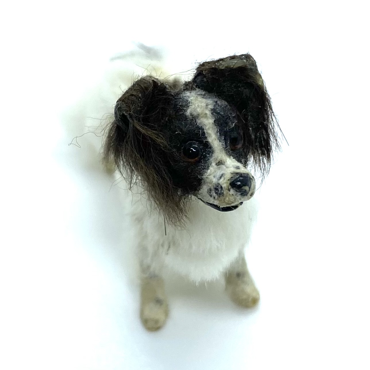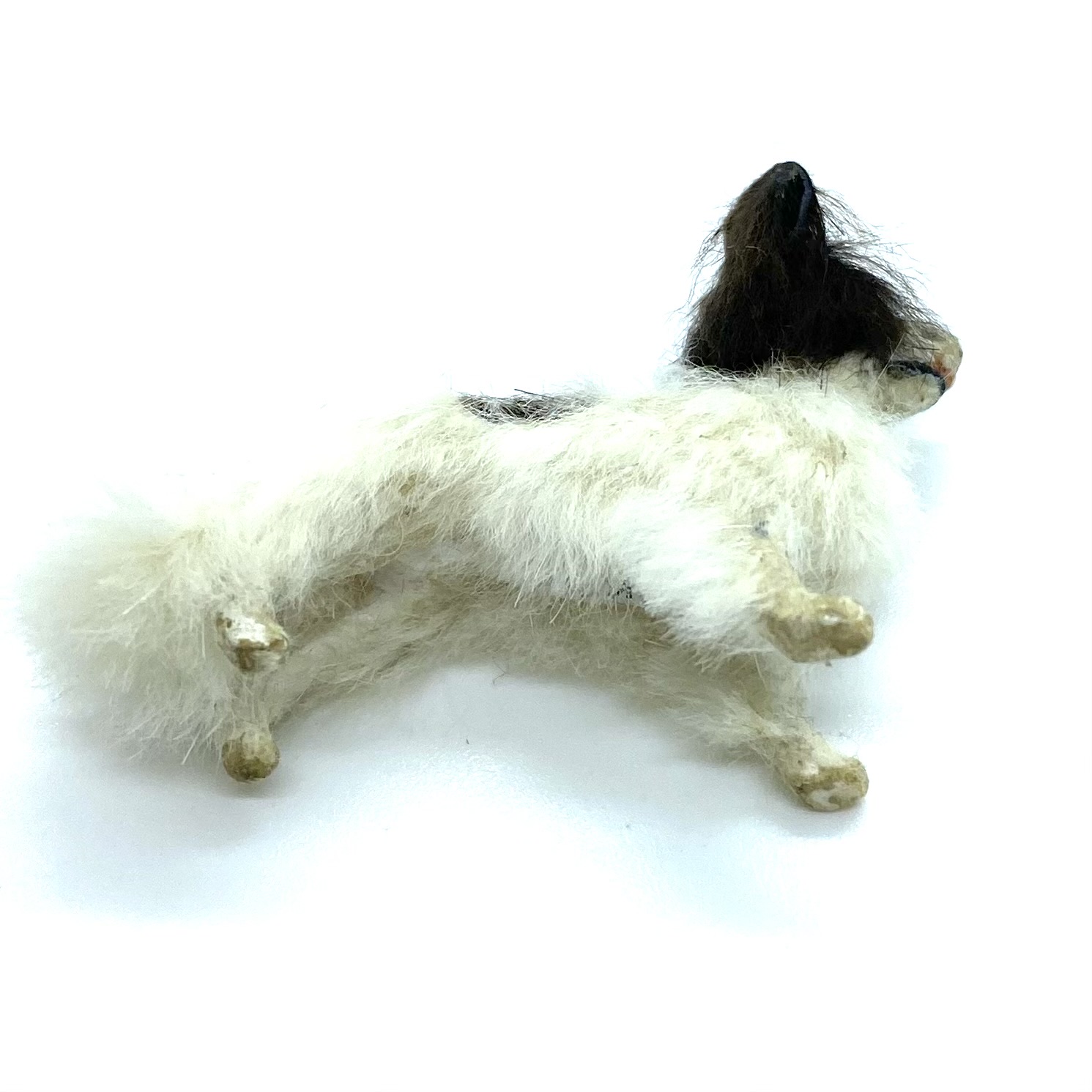 I must confess: I’m not entirely sure what kind of dog Beau is. He looks a bit like the love-child of a papillon and a sheltie, and perhaps those who are more knowledgeable about dogs will be able to help me out. But I was captivated the moment I saw him, with his bright brown eyes and silky ears. I bought him privately from Neal and Lynne Andrew in Devon, who commissioned him from the late artisan Annie Willis in 2002. As with most of Annie’s animals, he is signed on his tummy and he’s full of personality.