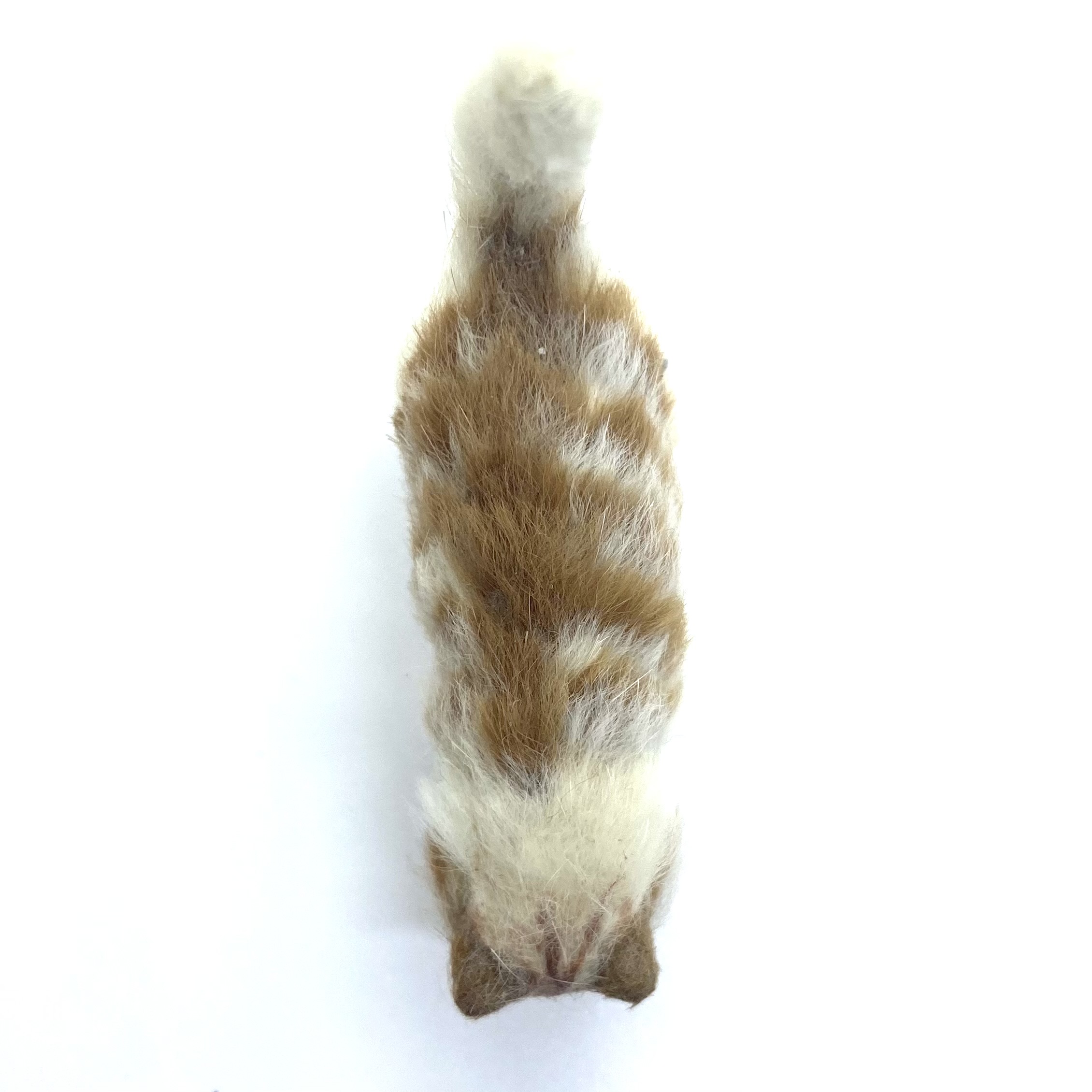 Dimensions: 29 (or 50 to the tip of her tail) x 58 x 15 mm; 1 ⅛ (or 2 to the tip of her tail) x 2 ¼ x ½ inches (height x length x width)