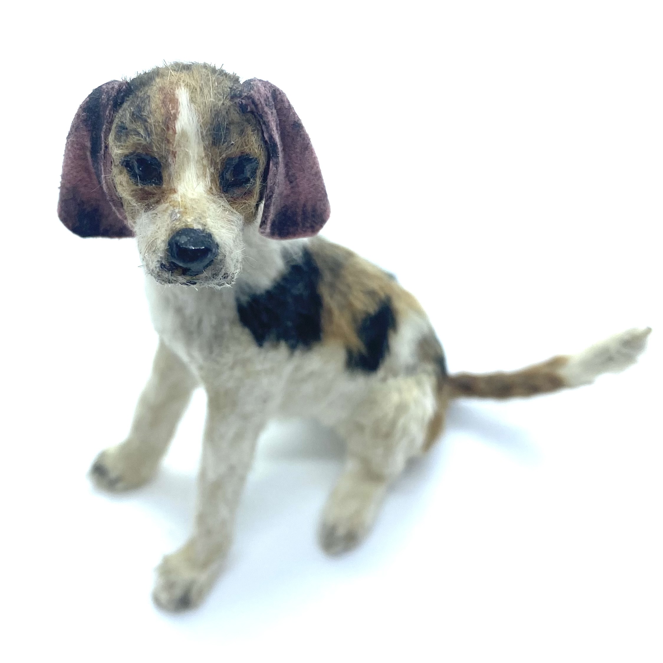 I have never seen a doggier miniature dog than Rufus. He is Charles’s loyal shadow, following at his master’s heels around the house, and can often be found curled up in the Library with Beau. Rufus is one of Annie Willis’s creations and just perfect in every detail, except that the black has worn off the outsides of his lovely floppy pink felt ears.