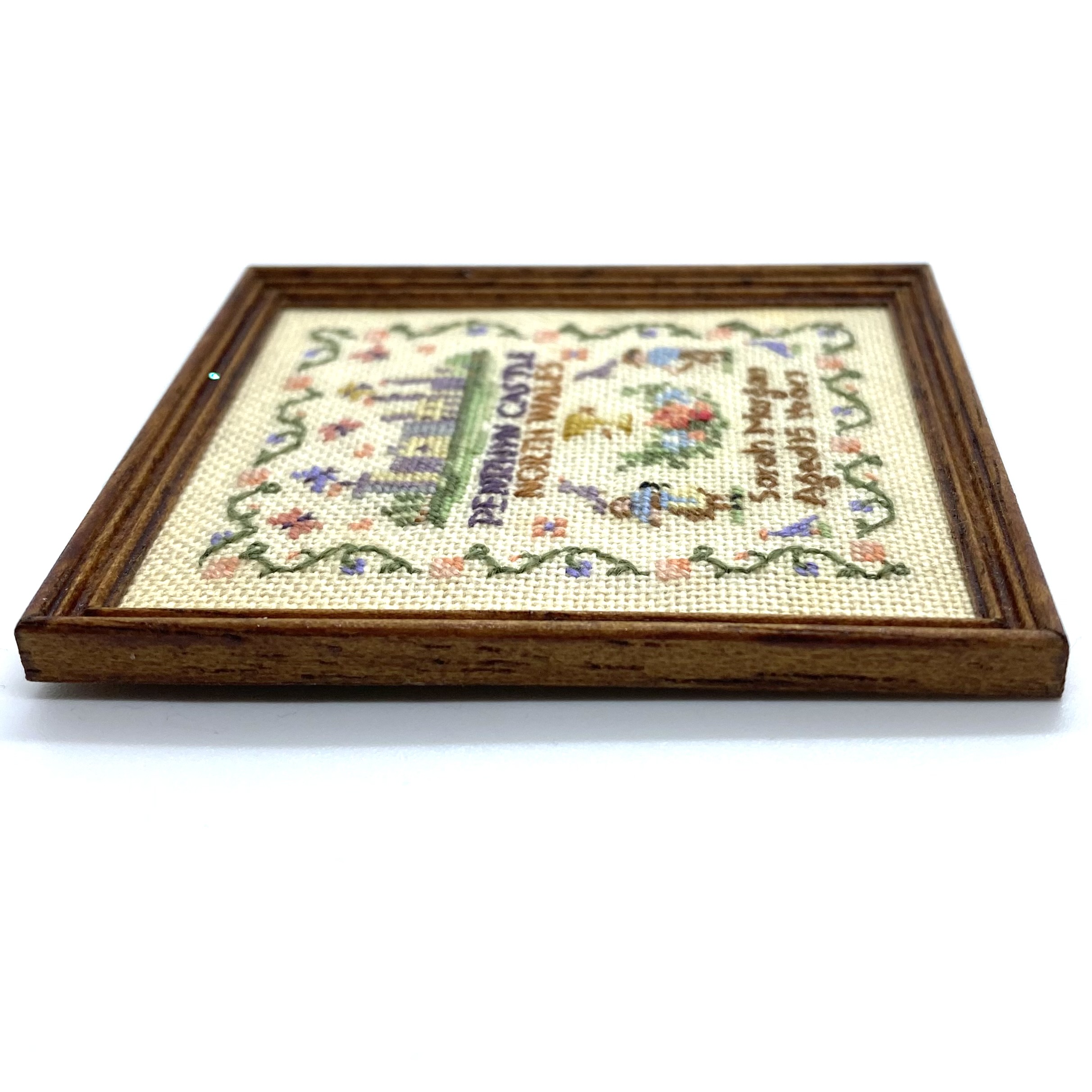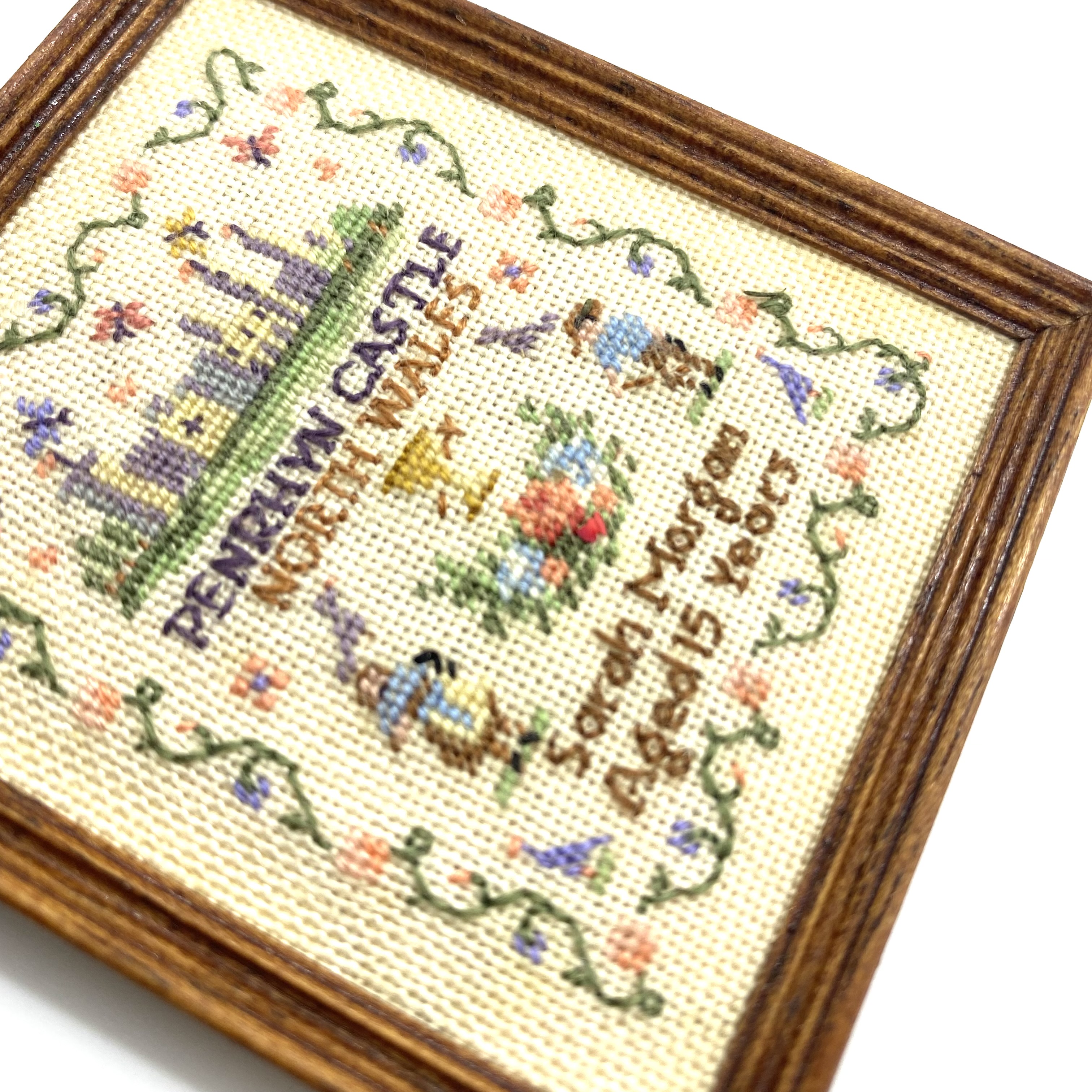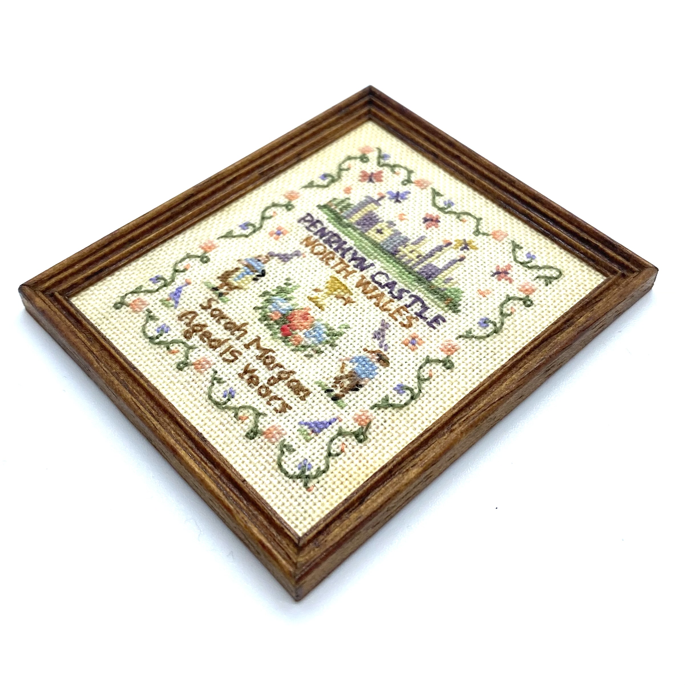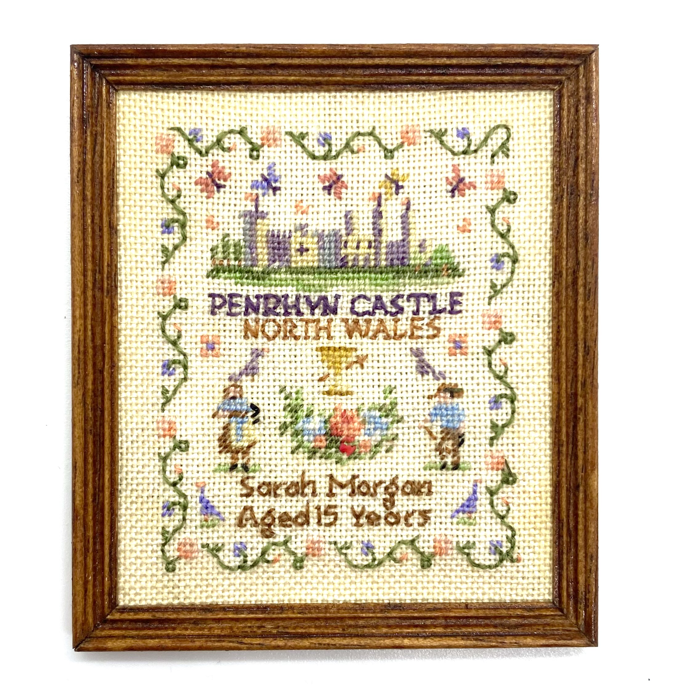 This lovely sampler was sold without a name attached, but I recognised the initials ‘NM’ on the back from our other sampler by Nicola Mascall. I haven’t seen this design of hers before and found it rather charming. With the historical subject of a Welsh castle, coupled with the fine demonstration of needlework by a Sarah Morgan (presumably by a Quartermaine ancestor), it’s the perfect decoration for the schoolroom.