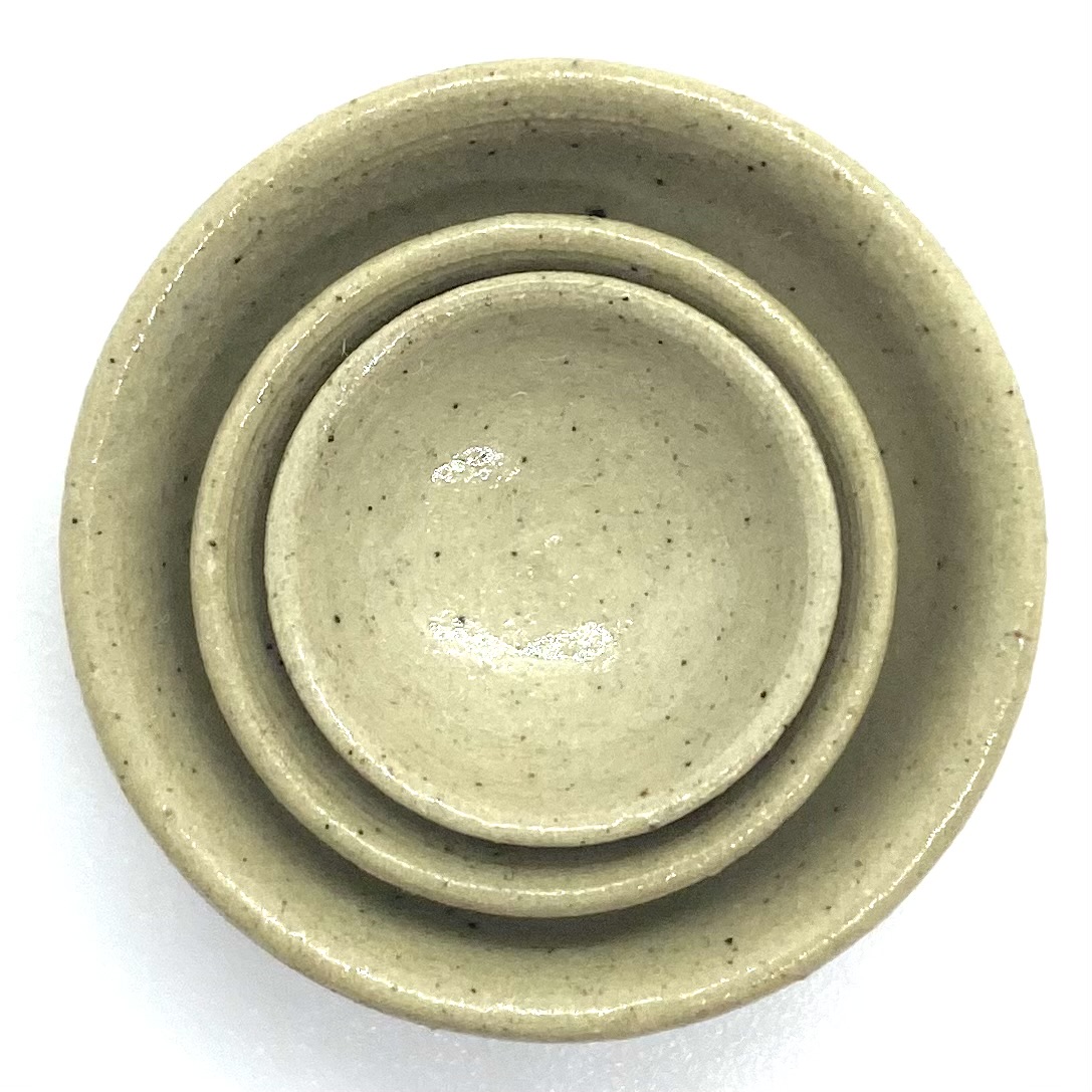 Dimensions: 10 x 27 mm. / ⅜ x 1 inches (height x diameter [large bowl]); 7 x 19 mm. / ¼ x ¾ inches (height x diameter ); 5 x 15 mm. / ¼ x ⅝ inches (height x diameter [small bowl])