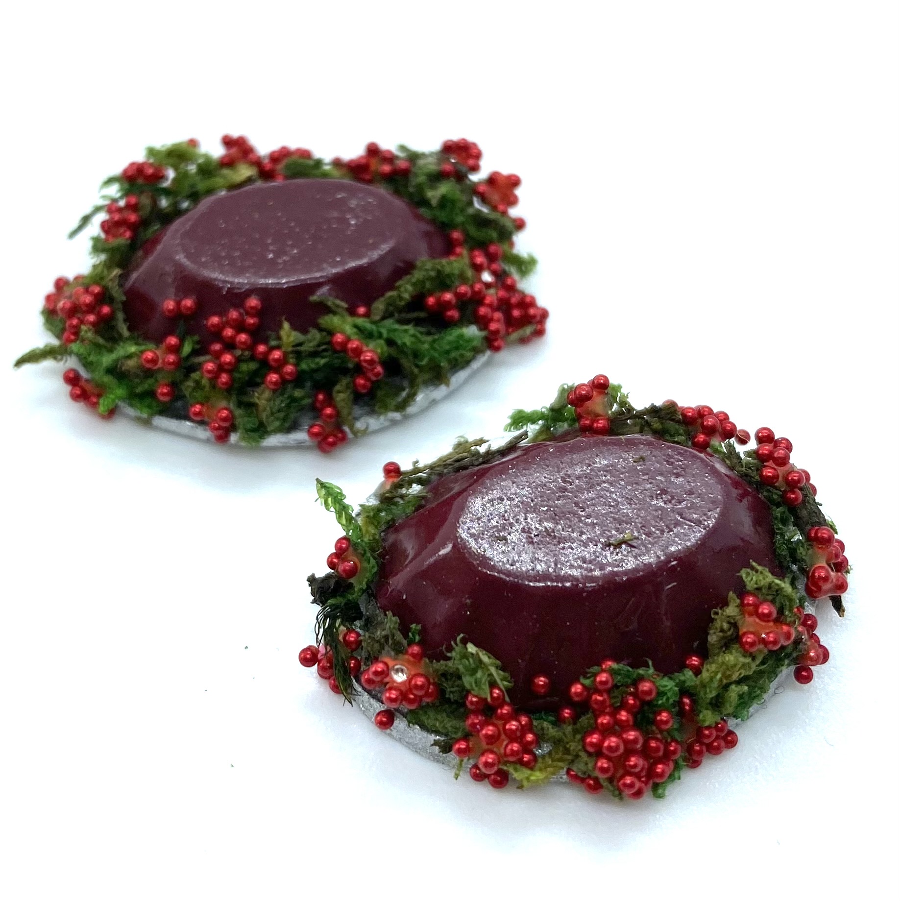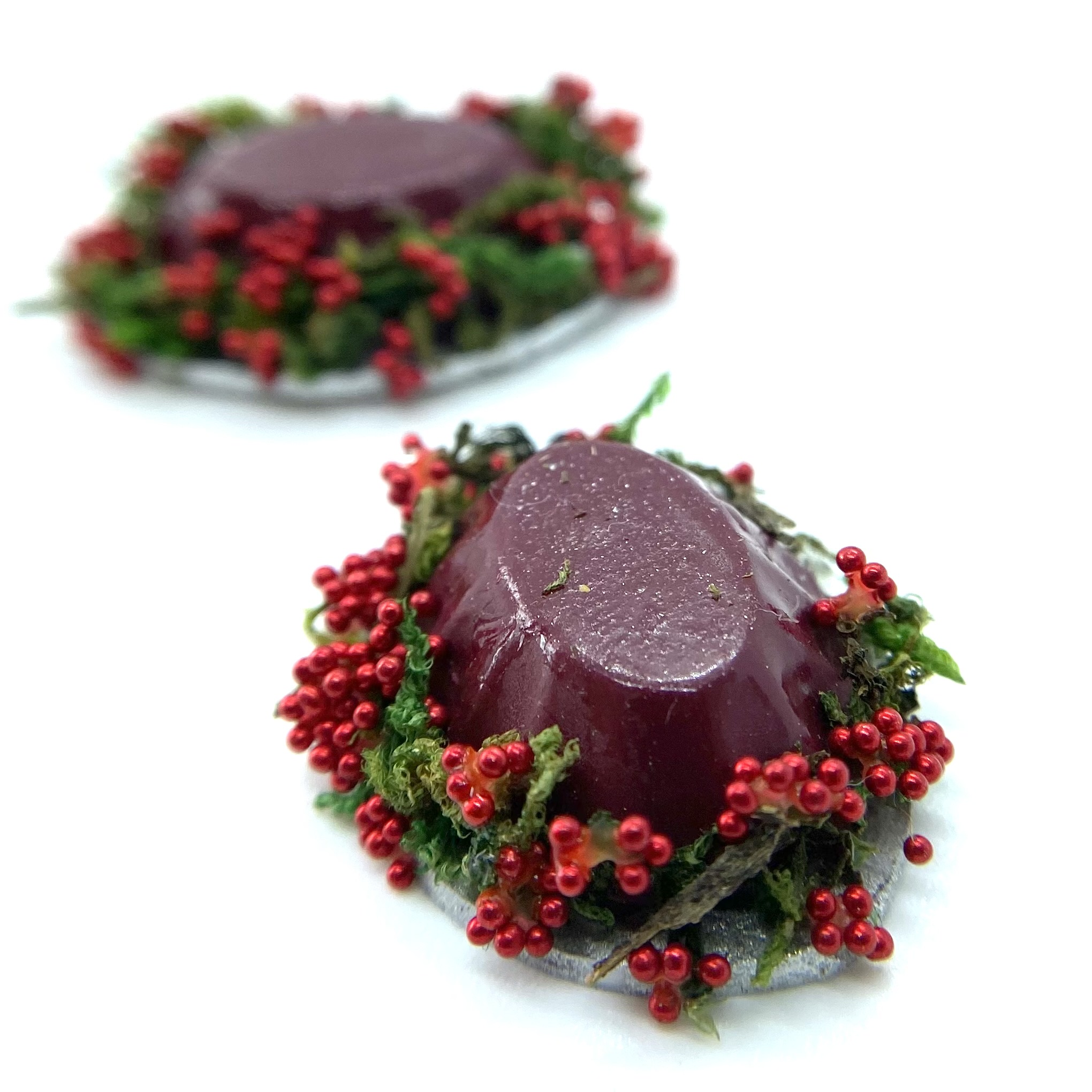 This pair of jellies, along with their round counterparts, are destined to be displayed either on the dining table or on a sideboard as part of a grand dinner, along with Etc Miniatures’ other Tudor-inspired goodies.