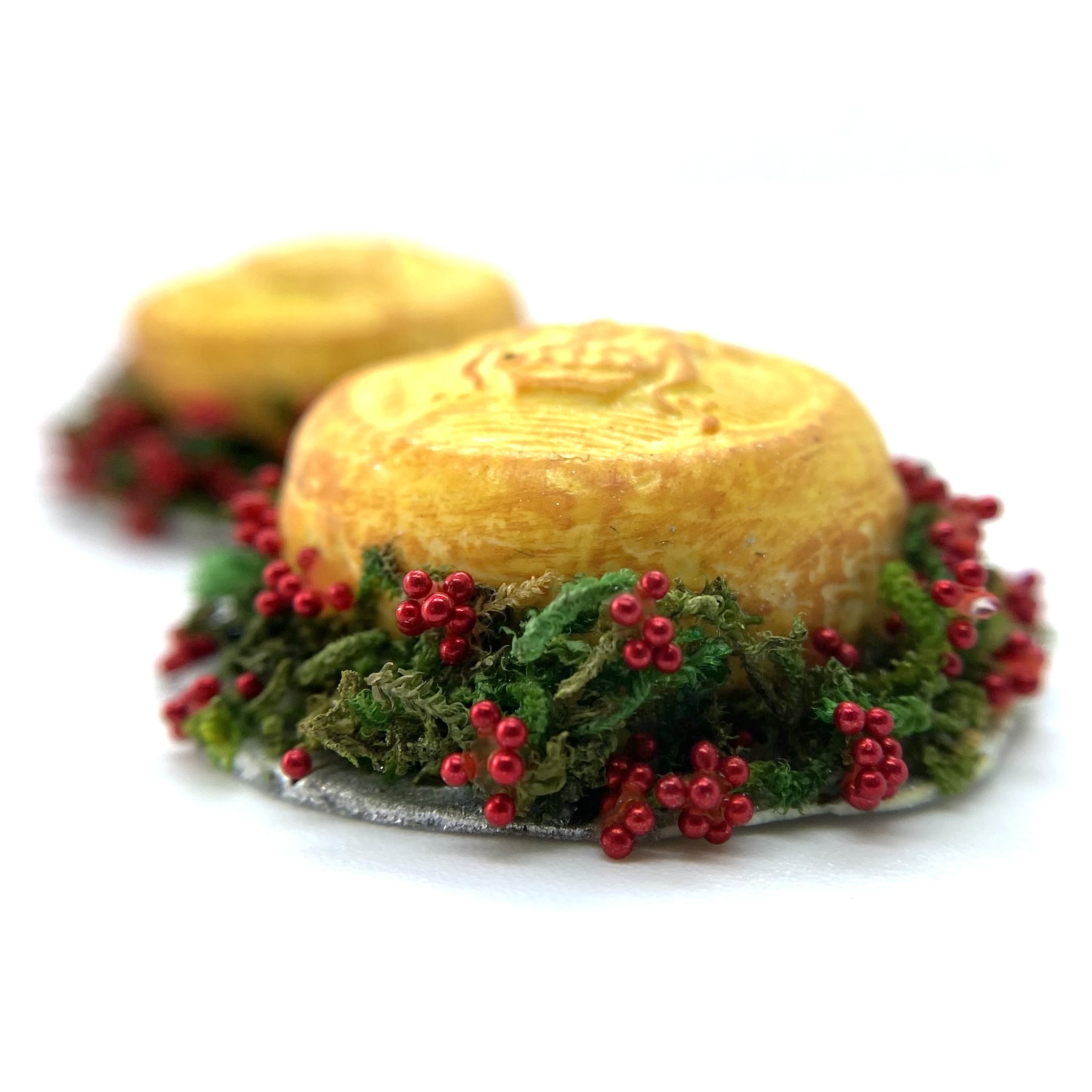 This splendid pair of pies is destined to be displayed either on the dining table or on a sideboard as part of a grand dinner, along with Etc Miniatures’ other Tudor-inspired goodies. Indistinctly signed ‘Etc 22’ on the underside of the base board.