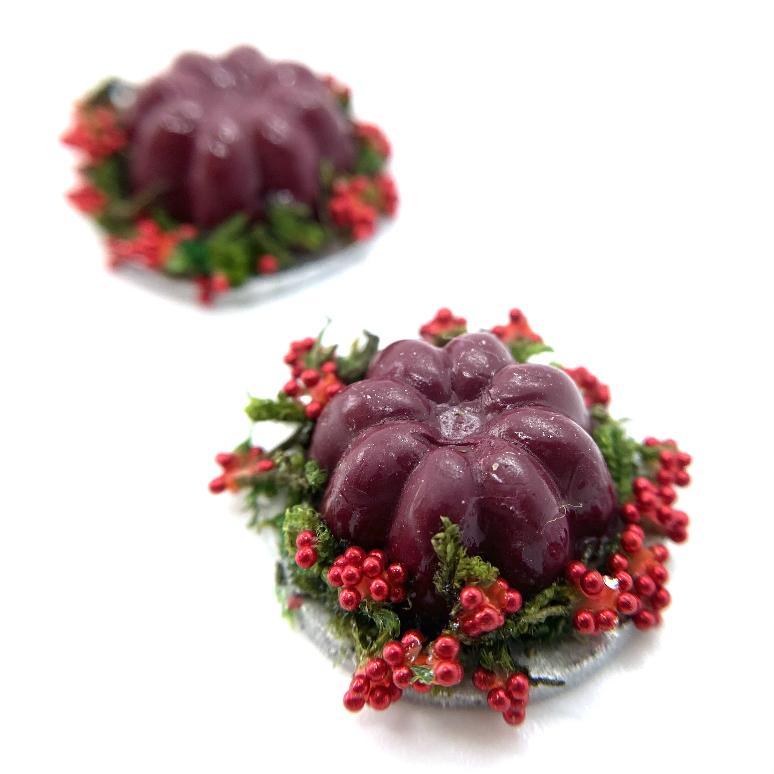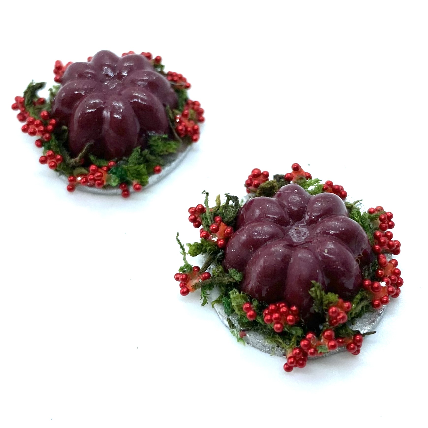 This pair of jellies, along with their oval counterparts, are destined to be displayed either on the dining table or on a sideboard as part of a grand dinner, along with Etc Miniatures’ other Tudor-inspired goodies.