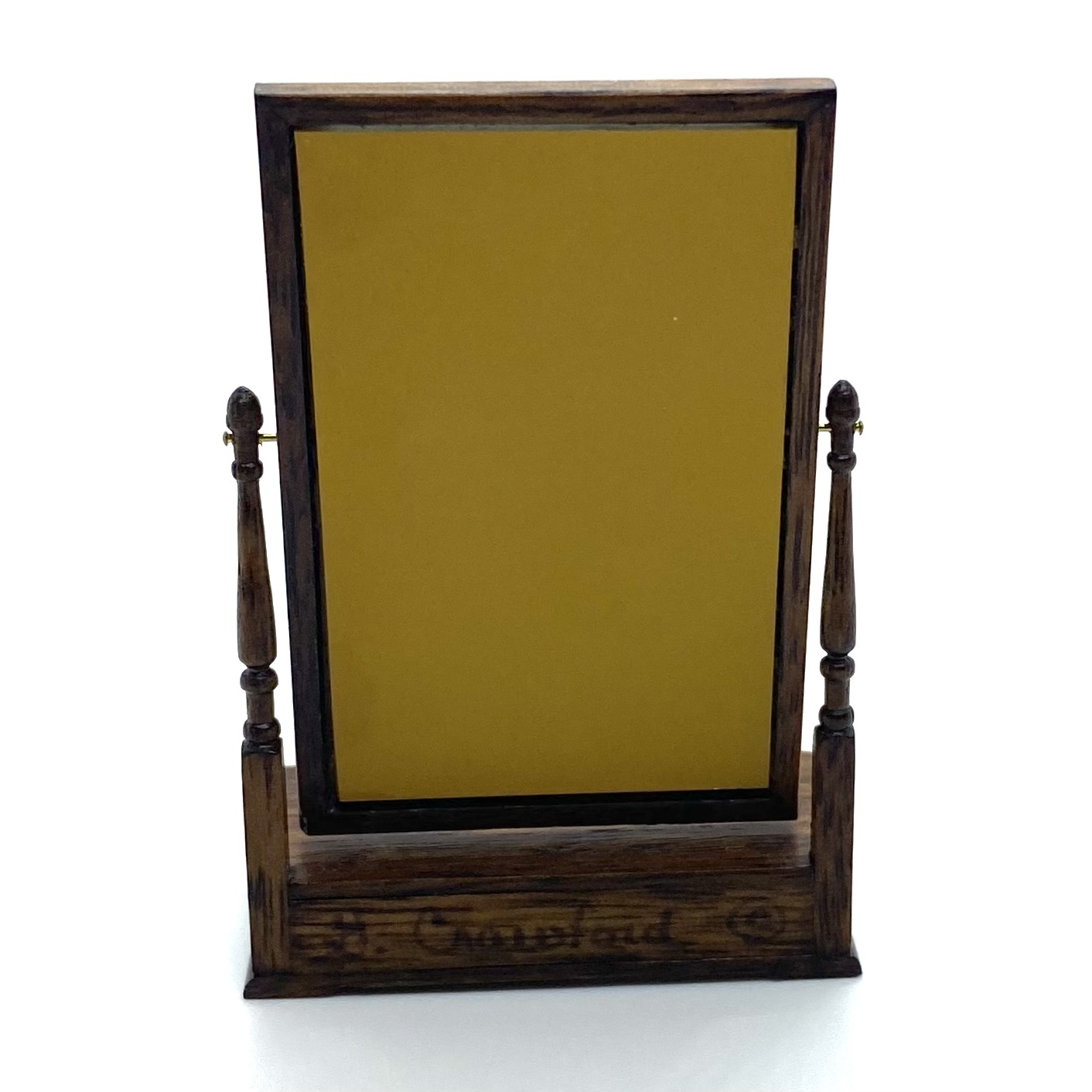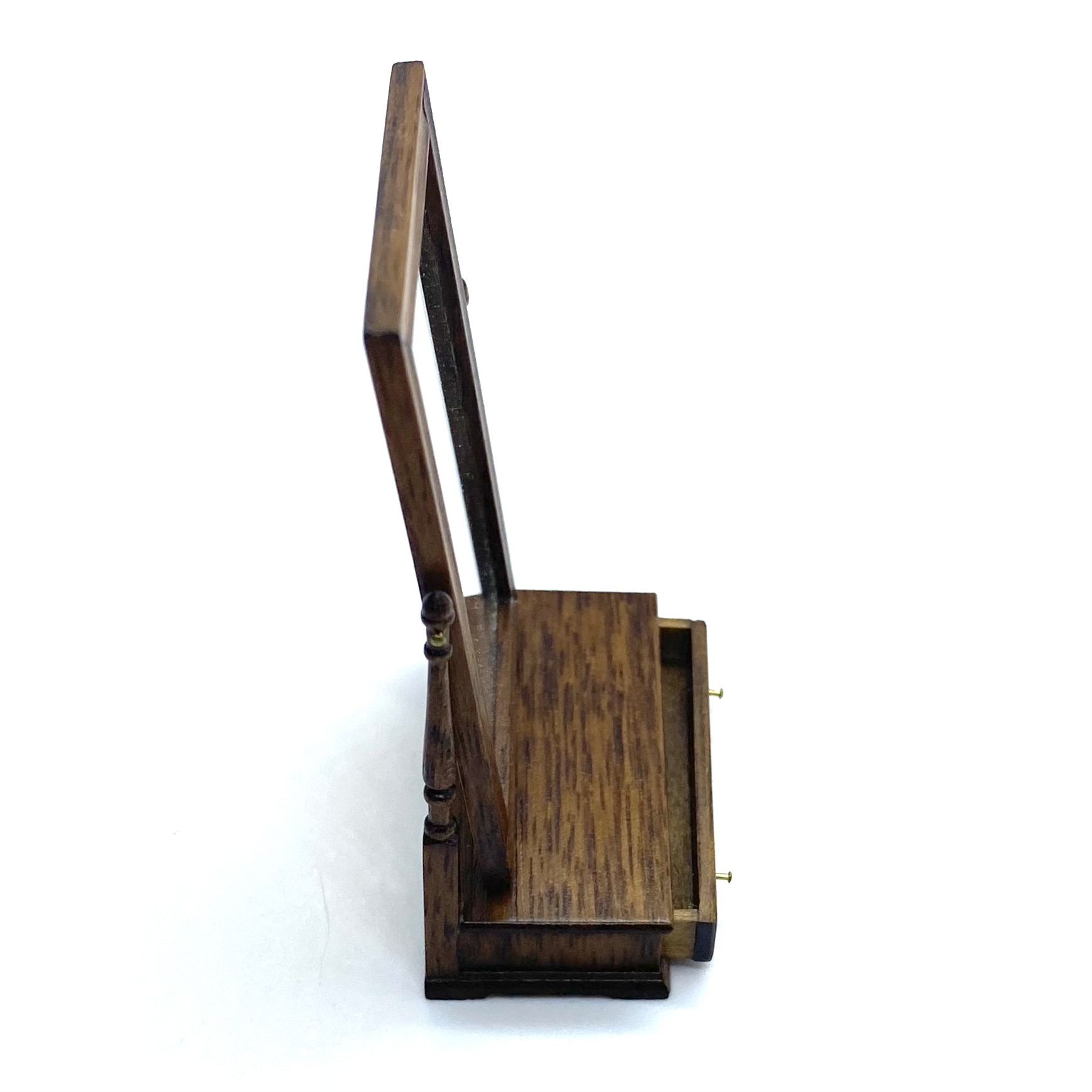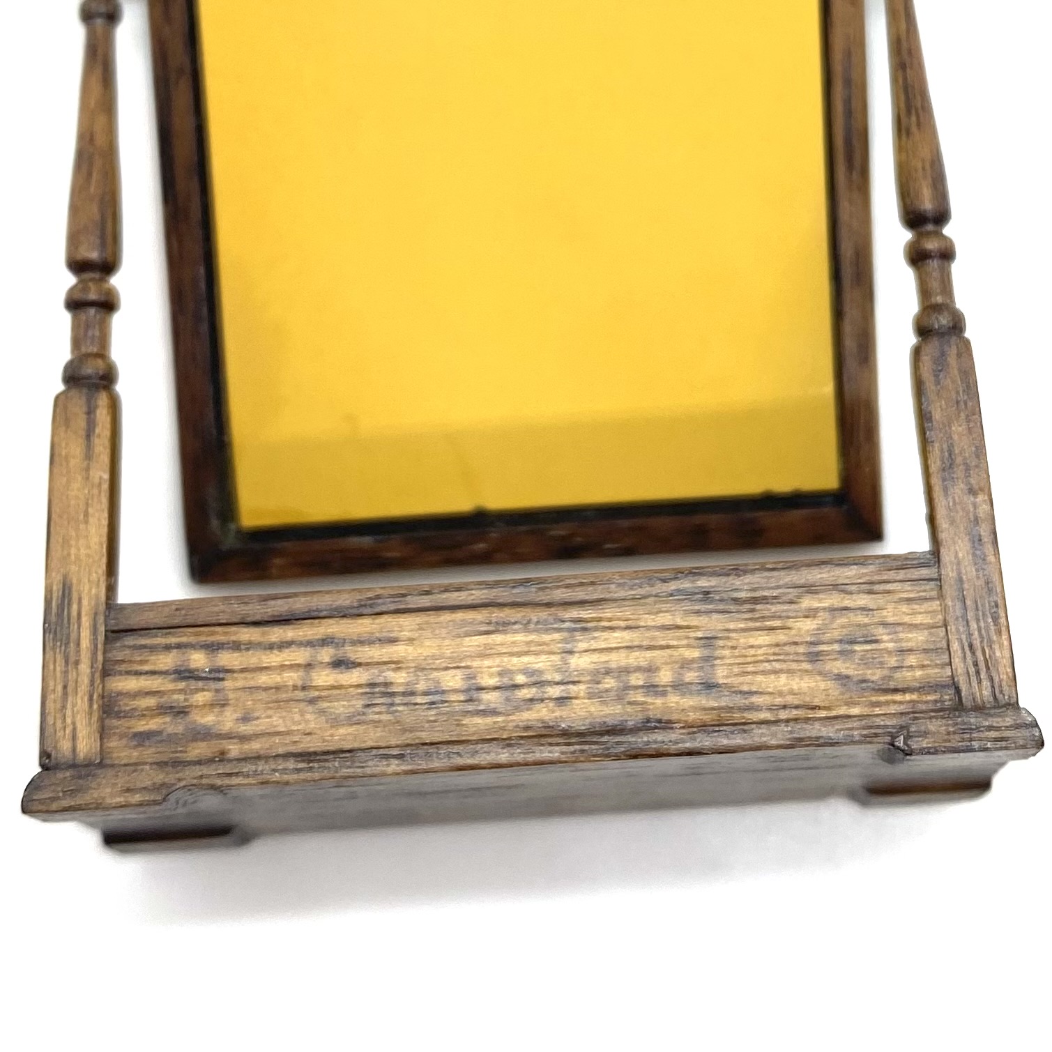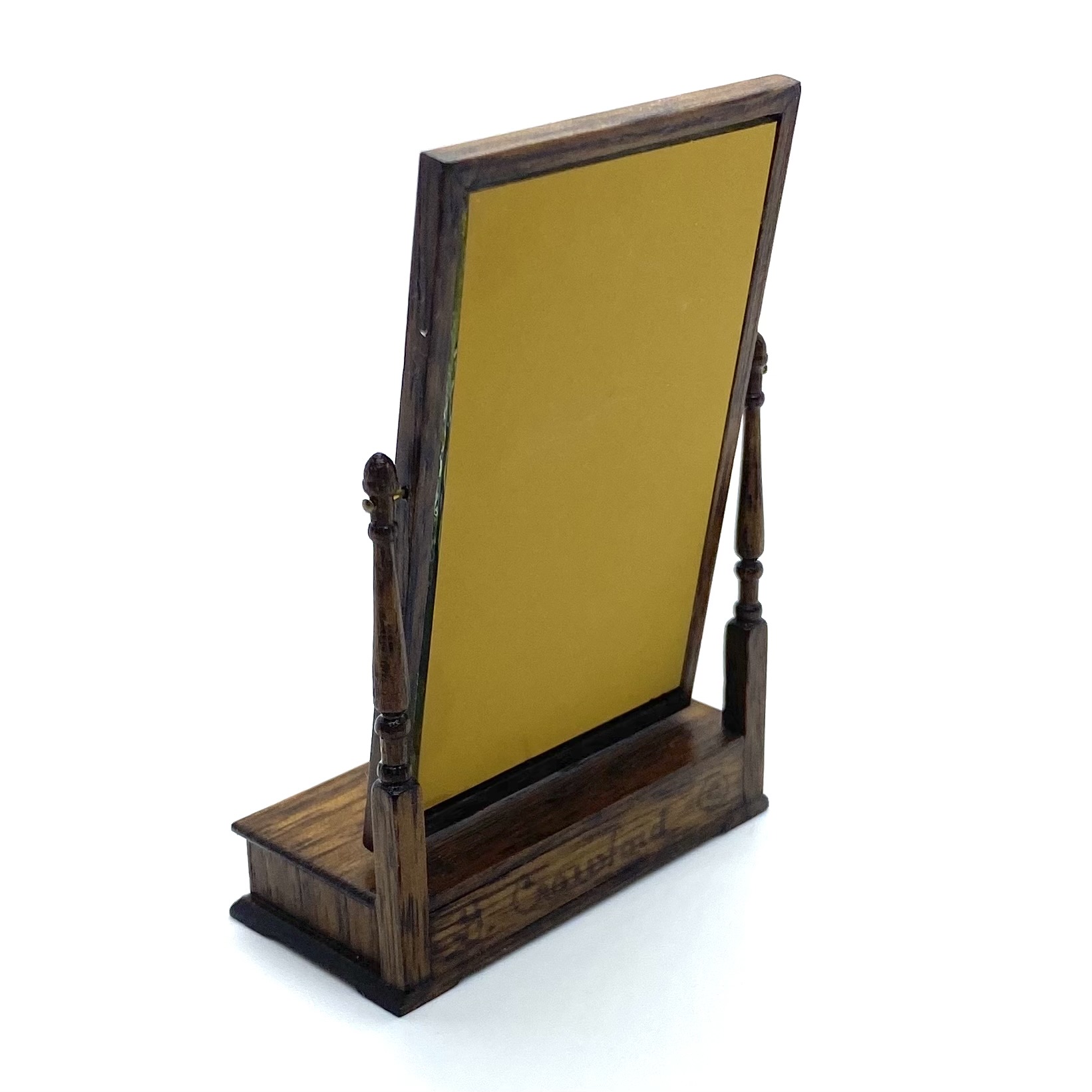 We’re inadvertently building up a small sub-collection of miniature dressing-table mirrors. This particular example caught by eye because of the artisan: the celebrated craftsman Gerald Crawford, perhaps best known for his collaboration with Winterthur Museum, whose furniture he replicated in miniature. Gerald’s larger pieces are too expensive for us at the moment, so it was a pleasure to spot this lovely little mirror. And besides, every bedroom needs a mirror, doesn’t it? The details are the winner here: look at the elegant turning of the side-supports, and the little ‘feet’ on the bottom.