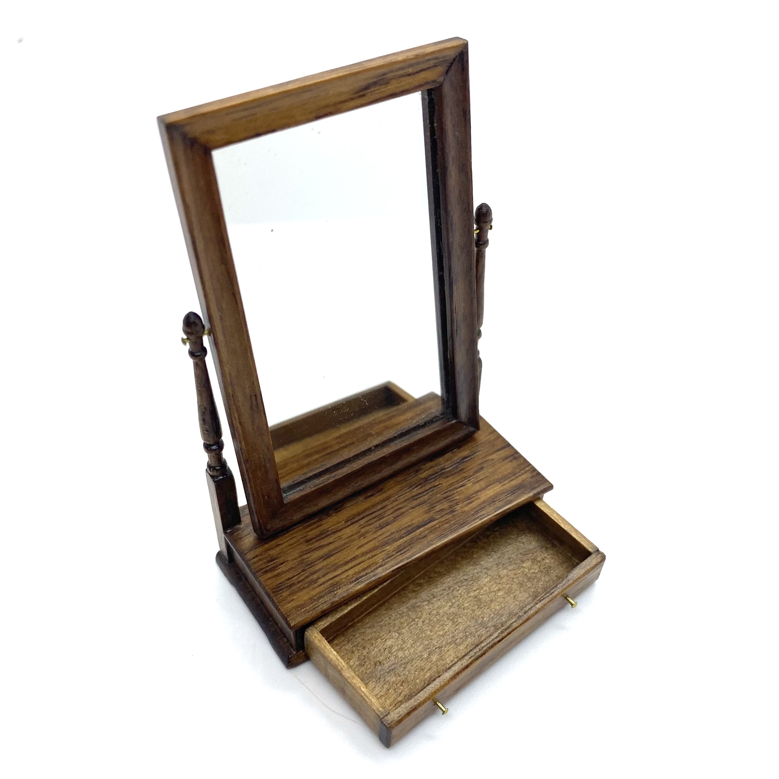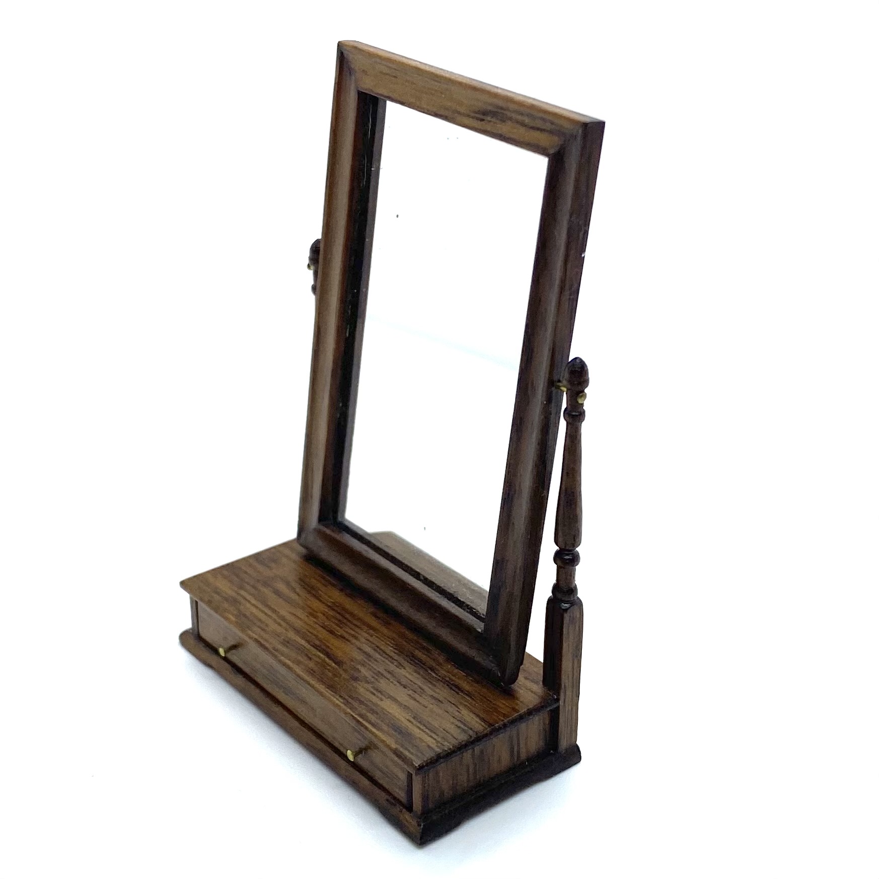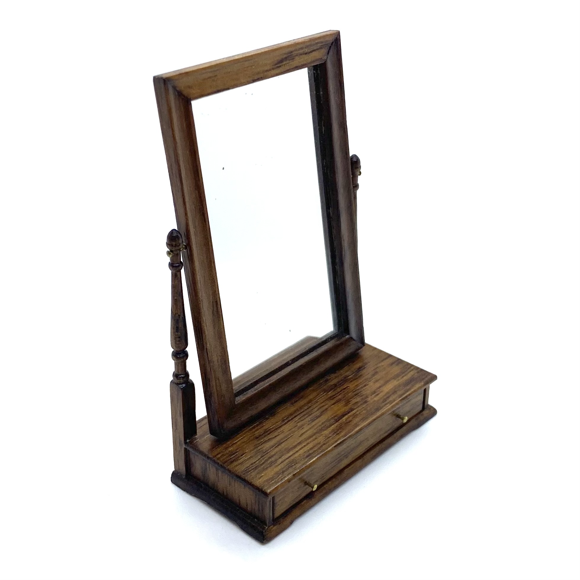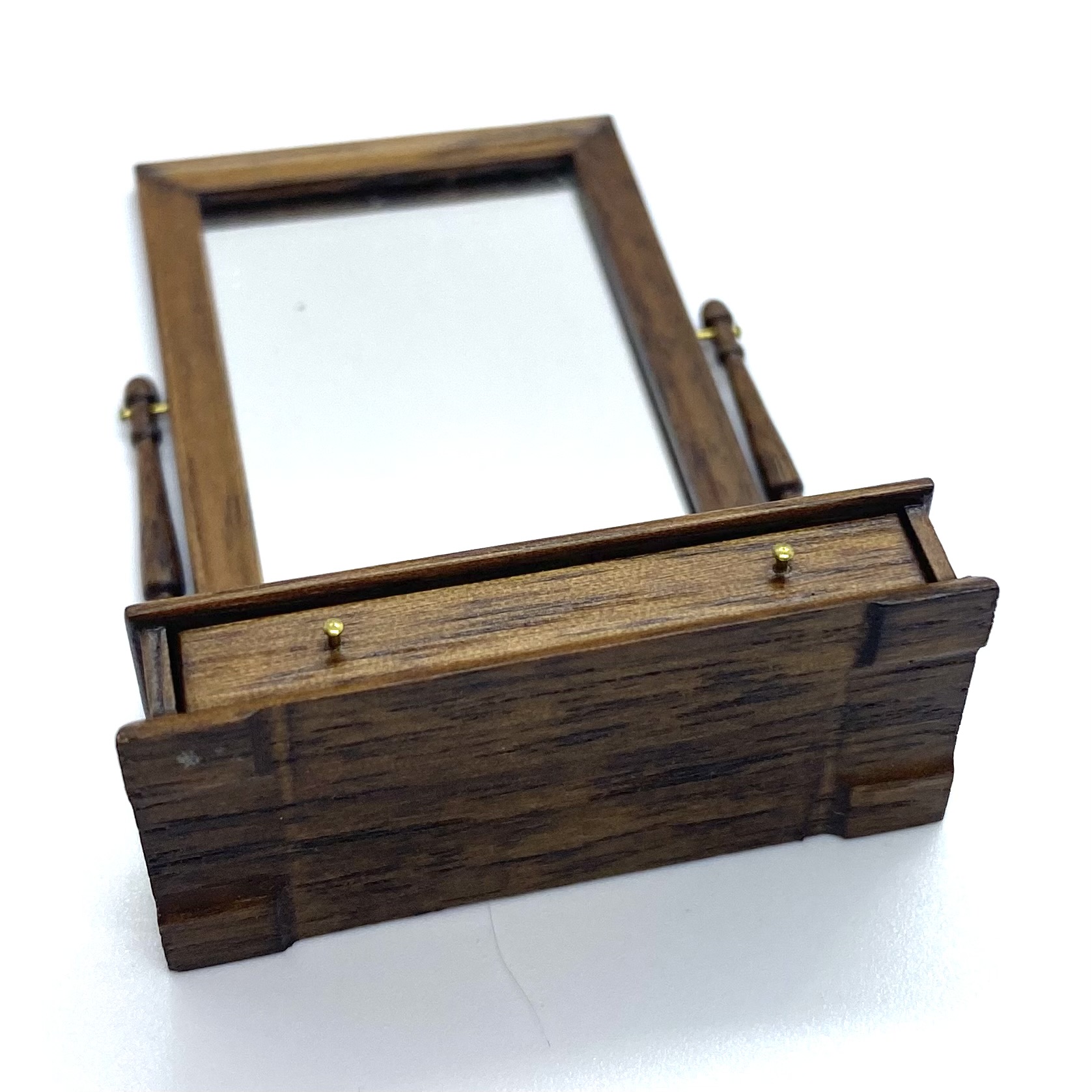 We’re inadvertently building up a small sub-collection of miniature dressing-table mirrors. This particular example caught by eye because of the artisan: the celebrated craftsman Gerald Crawford, perhaps best known for his collaboration with Winterthur Museum, whose furniture he replicated in miniature. Gerald’s larger pieces are too expensive for us at the moment, so it was a pleasure to spot this lovely little mirror. And besides, every bedroom needs a mirror, doesn’t it? The details are the winner here: look at the elegant turning of the side-supports, and the little ‘feet’ on the bottom.