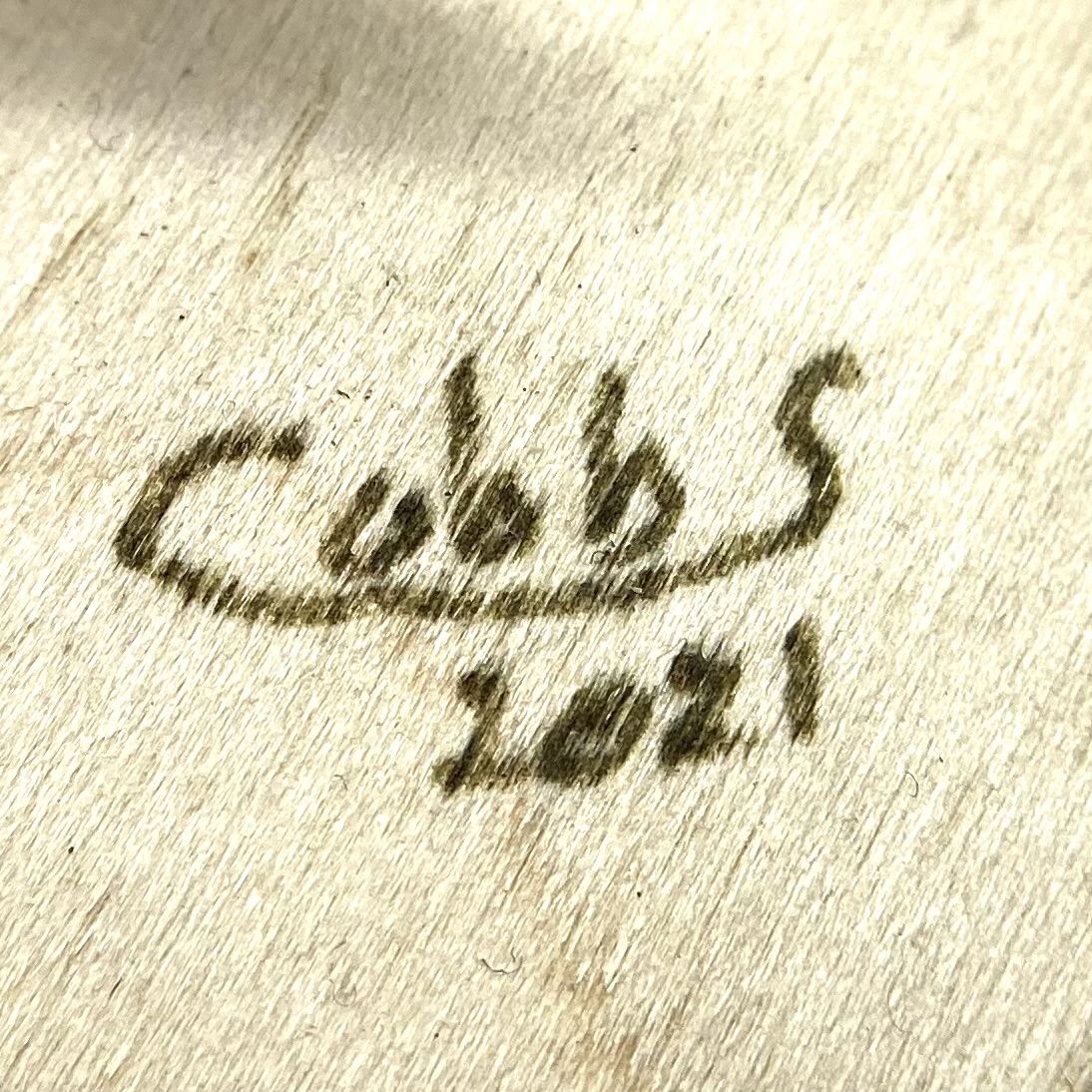 Signatures and inscriptions: Signed and dated ‘Cobbs 2021’ on stand