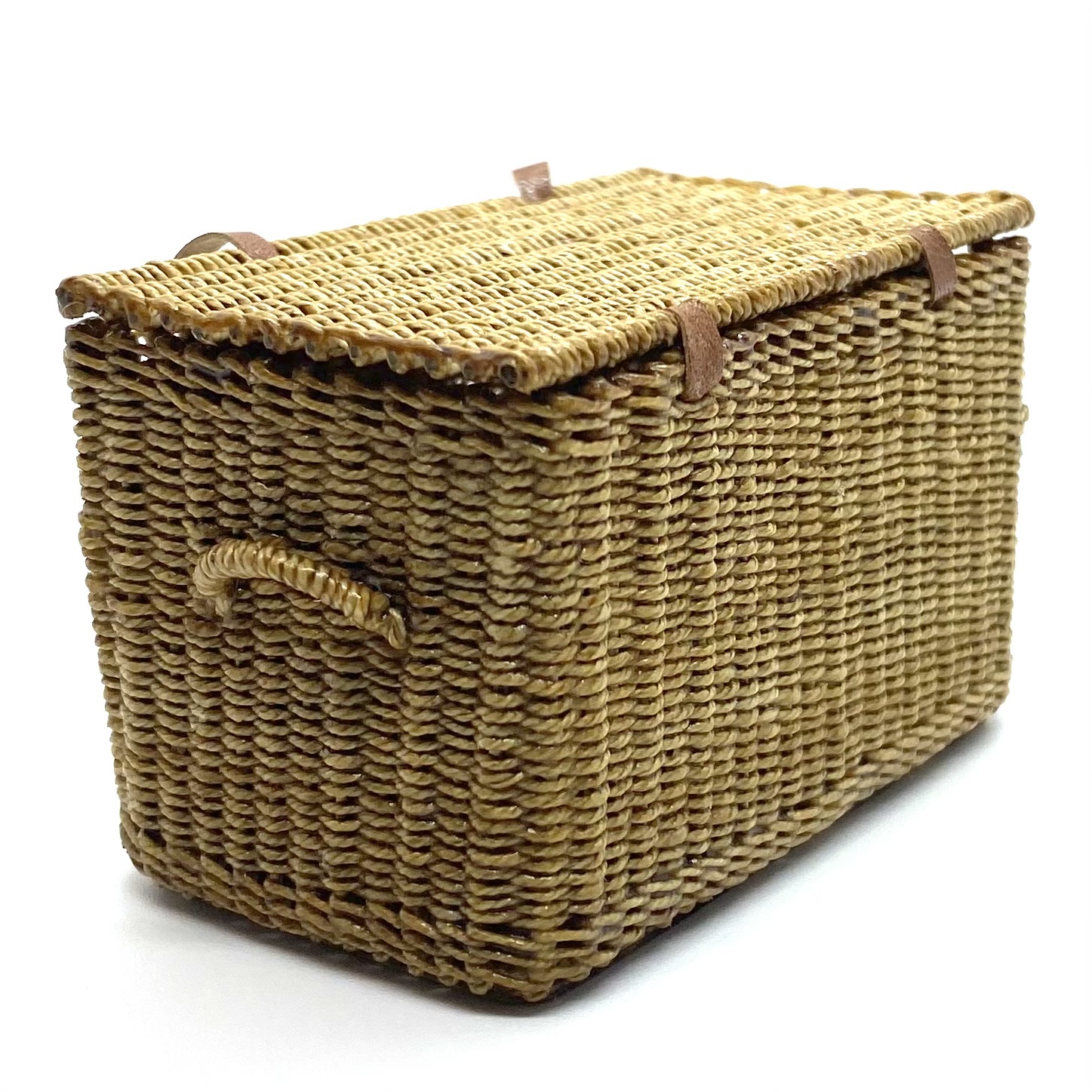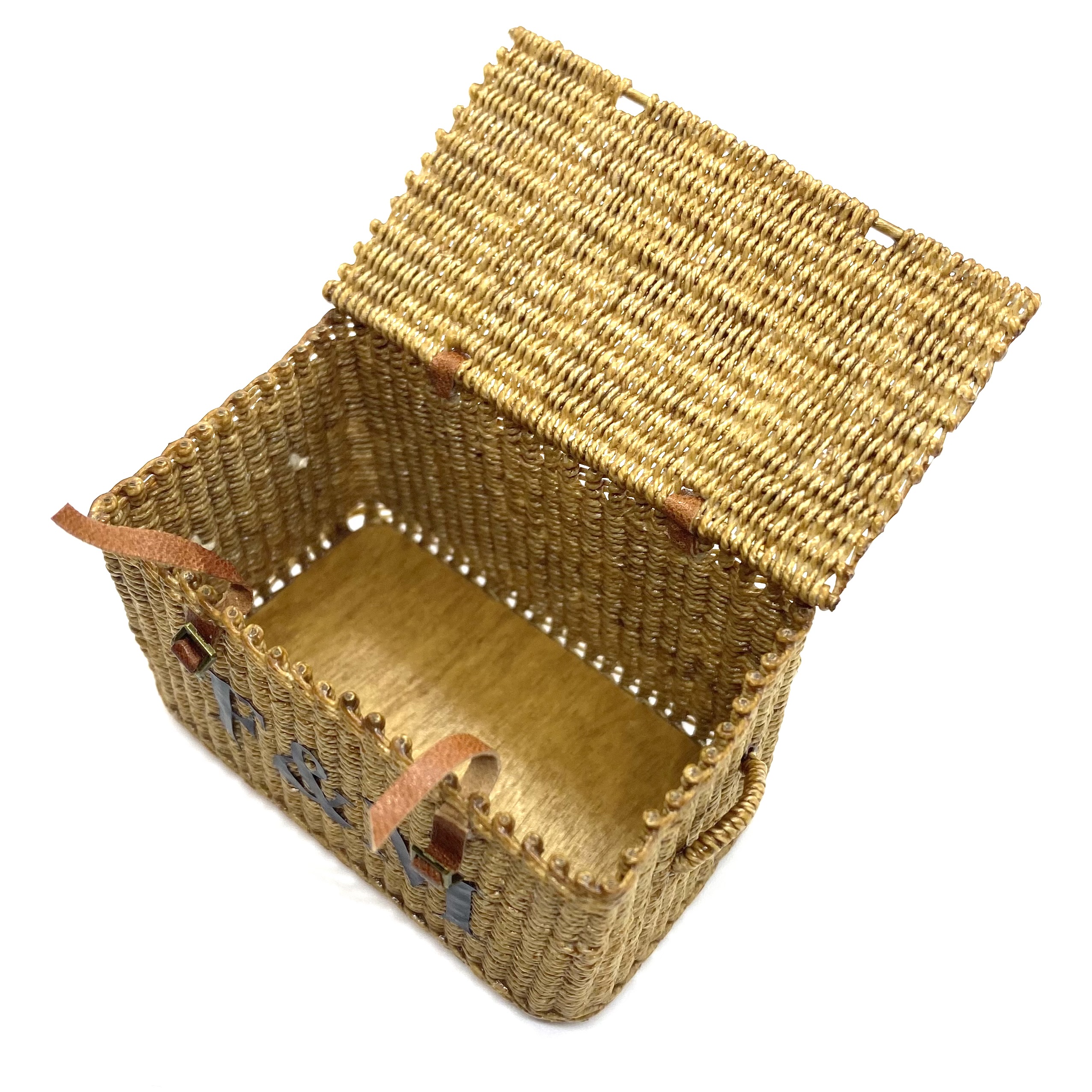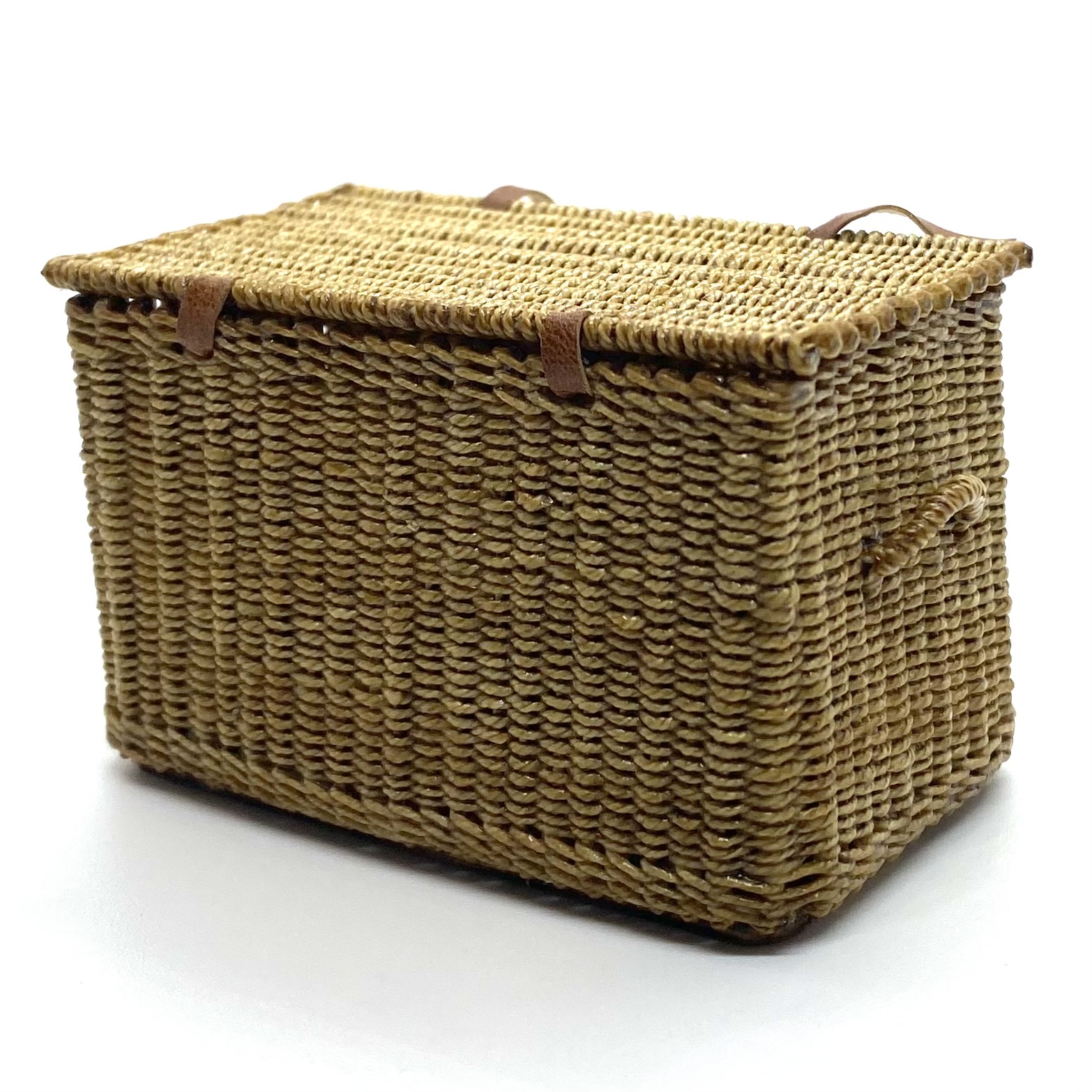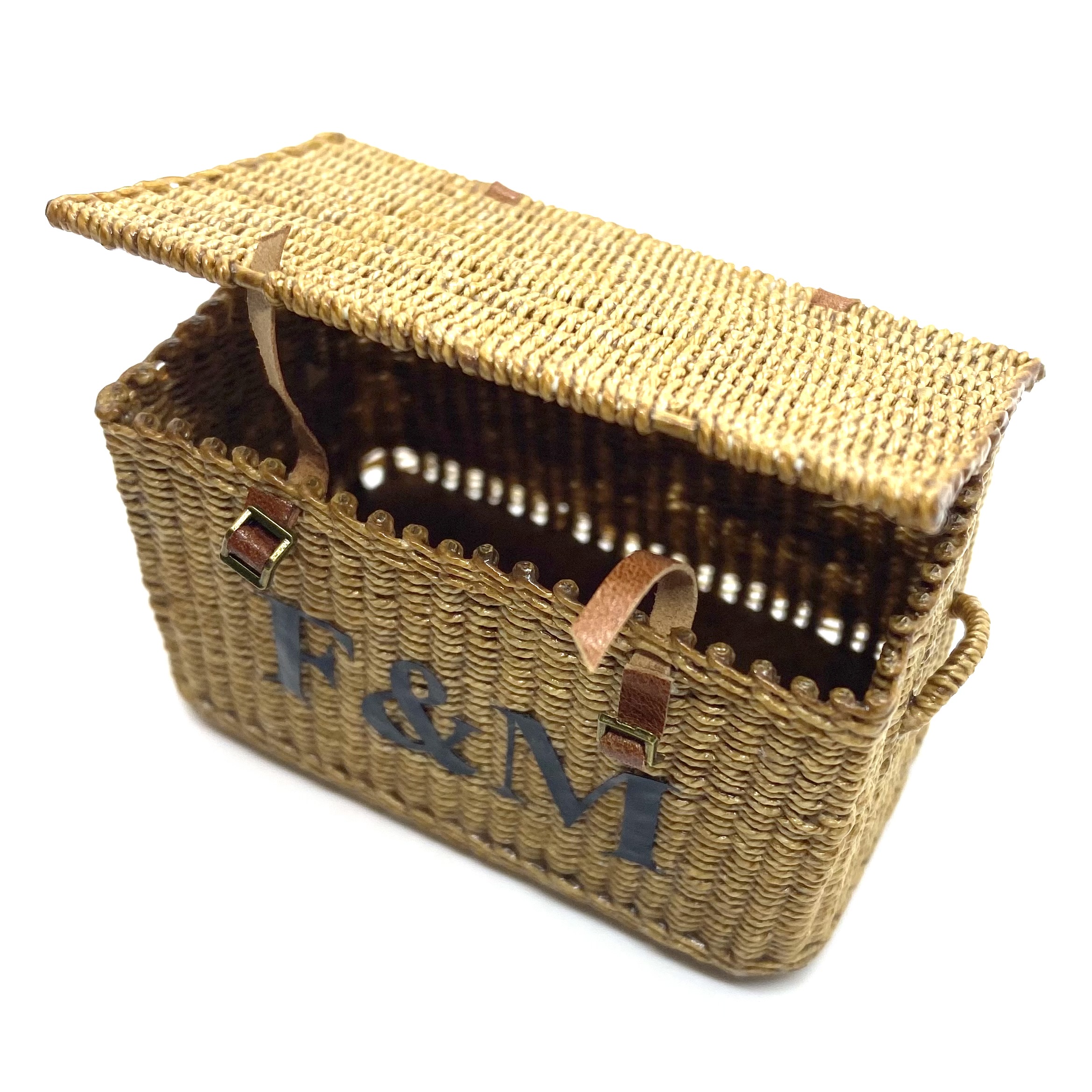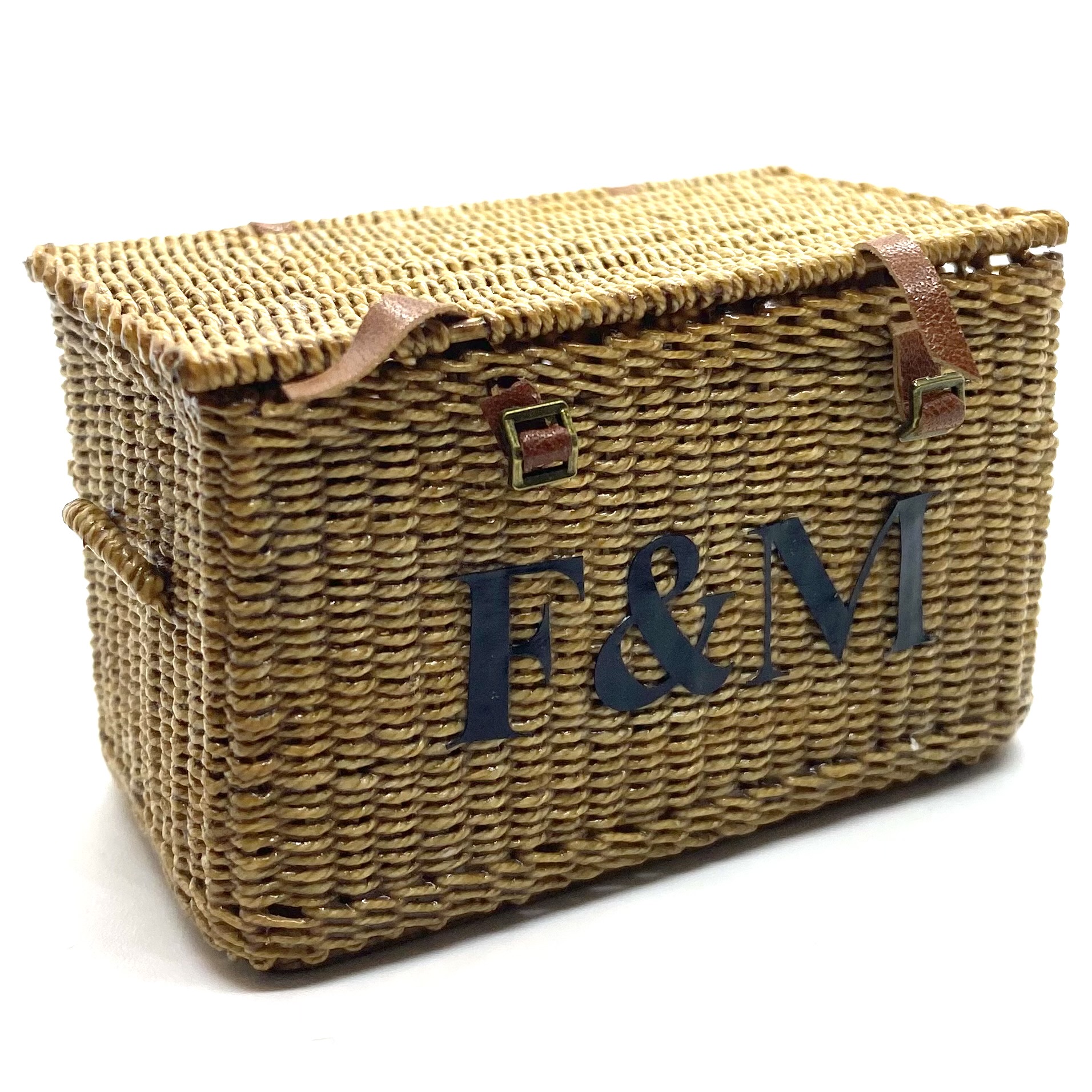 With a Fortnum & Mason hamper, you can expect a truly superior kind of picnic. Of course the Quartermaines had to have one! When Will Werson, the doyenne of all things miniature and wicker, uploaded this (and its companion basket) on her Etsy page, I pounced quicker than you can say ‘cucumber sandwiches’. Will said that she had only finished it that morning and, since it was something slightly different from her usual work, she’d been hoping her followers would like it. No question of that! It is beautifully woven, complete with handles on the sides, and with leather straps and real little buckles to close it. Delicious.