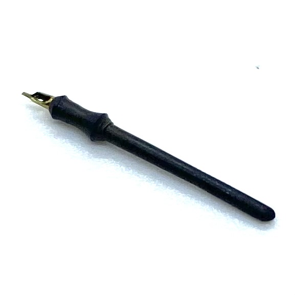 If you’re looking for a quill or a crayon in the miniature world, you’ll generally have plenty of choices. But what about that period that sits awkwardly between the two? At Quartermaine Hall, it’s likely that the family would use fountain pens when writing letters or dealing with business, but I hadn’t seen anything quite right so far. And then this gorgeous little piece by Danny Shotton popped up on eBay. It’s perfect. Unbelievably tiny, it even has a proper pierced metal nib. Of course, it was an absolute beggar to photograph.