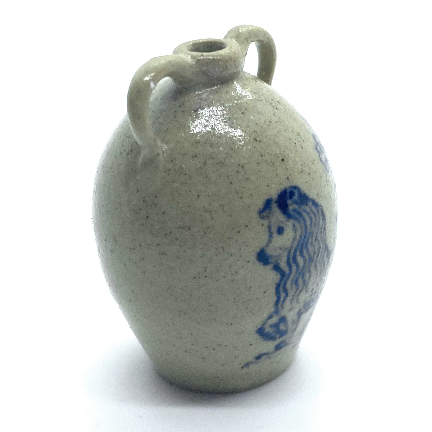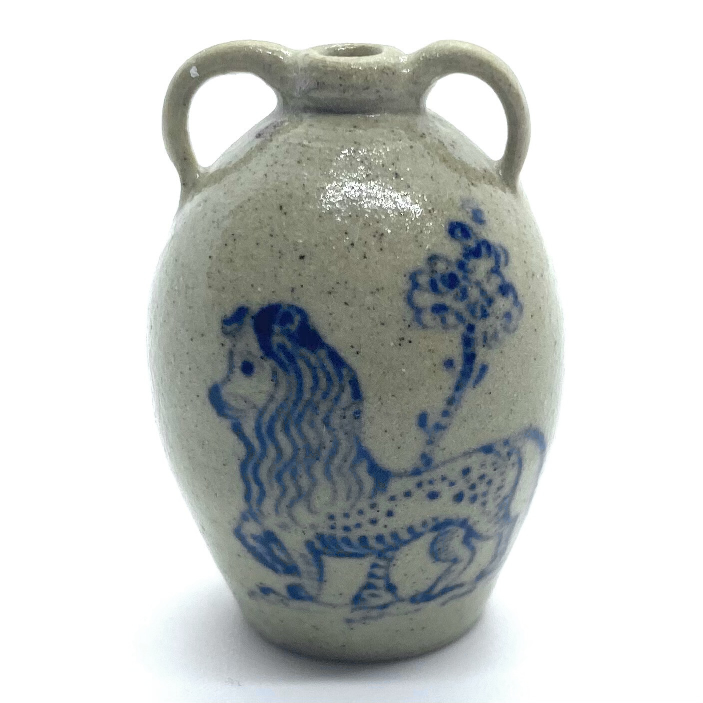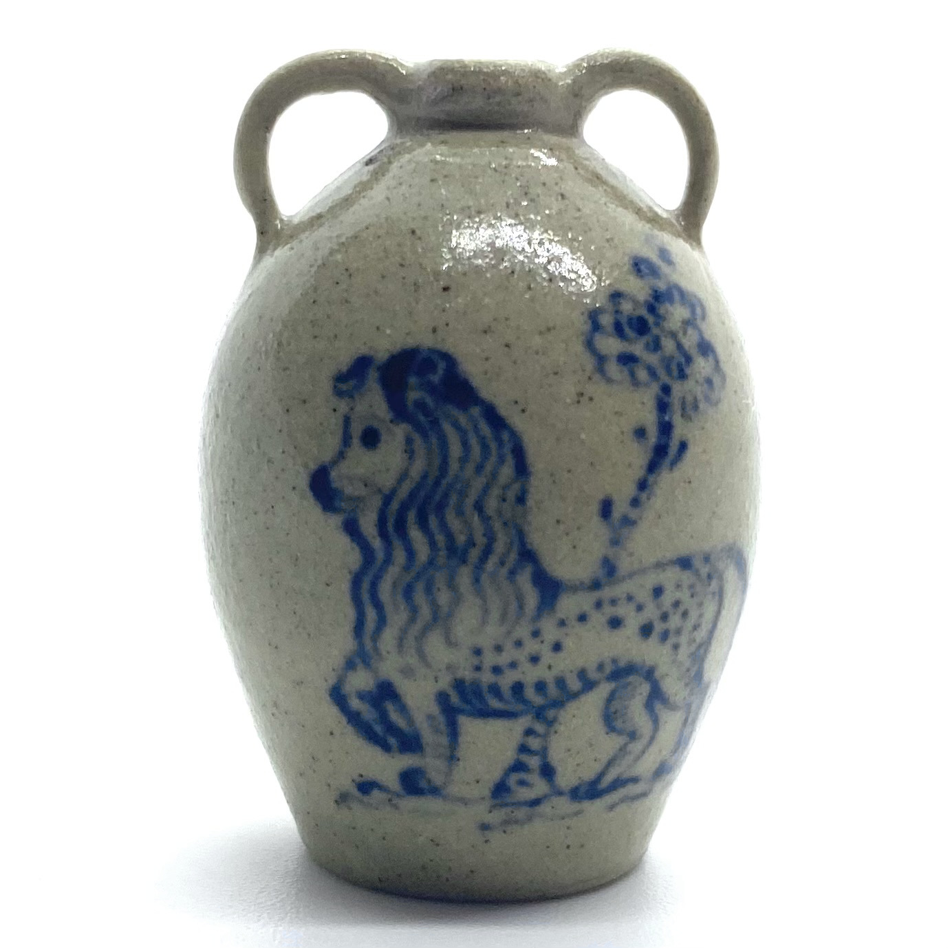 Our Jane Graber collection is growing, to the point where I’m not sure whether it’ll be possible to display it all in the Servants’ Hall; perhaps we should simply display it separately in its own right? But that’s a question for a later date. I fell in love with this double-handled stoneware jug as soon as I saw it. The lion, poised in front of a tree, was simply too adorable to resist, and I haven’t yet seen another piece by Jane with this motif.