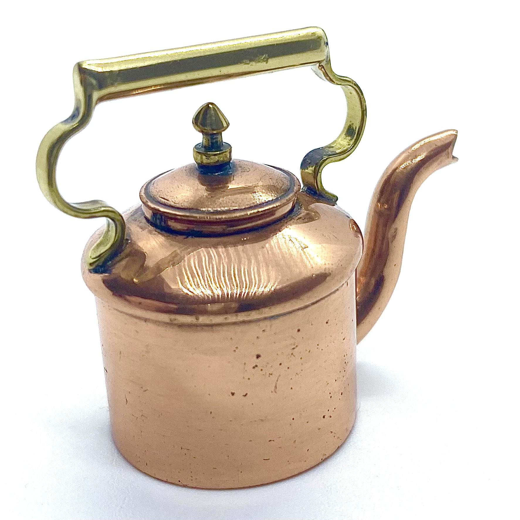 To paraphrase Maria from The Sound of Music, I do like copper kettles. I’ve been trying to find the right shape and colour for ages, because I think, at the heart of the Quartermaines’ copper-filled kitchen, there should be a kettle resting on the stove. But this was the first time I found one with a spout and shape and handle that really all seemed to work beautifully together, and the quality seems to be gorgeous. Plus, it’s lovely to have our first piece of work by George Chapman, whose miniature metalwork I’ve admired online.