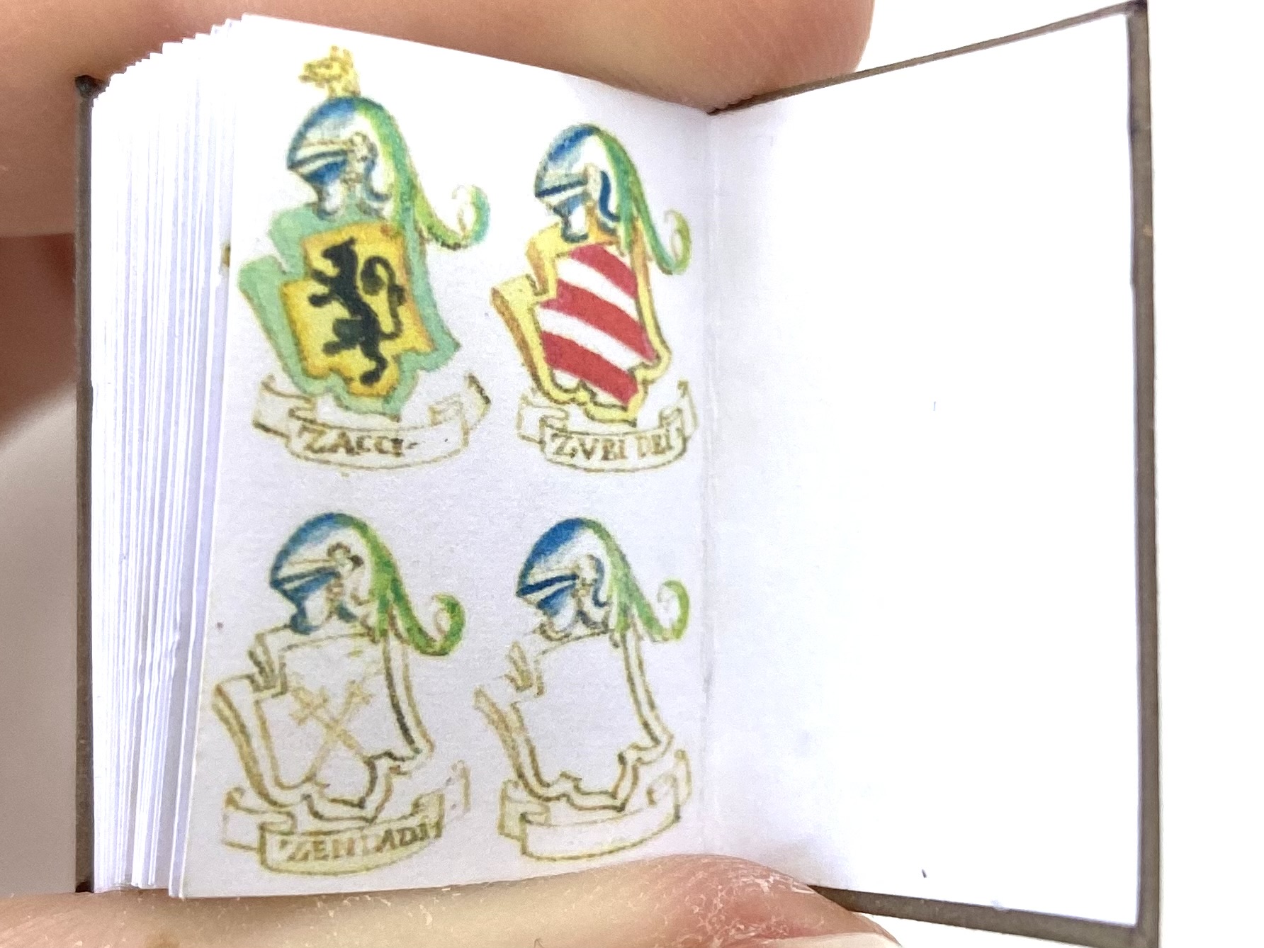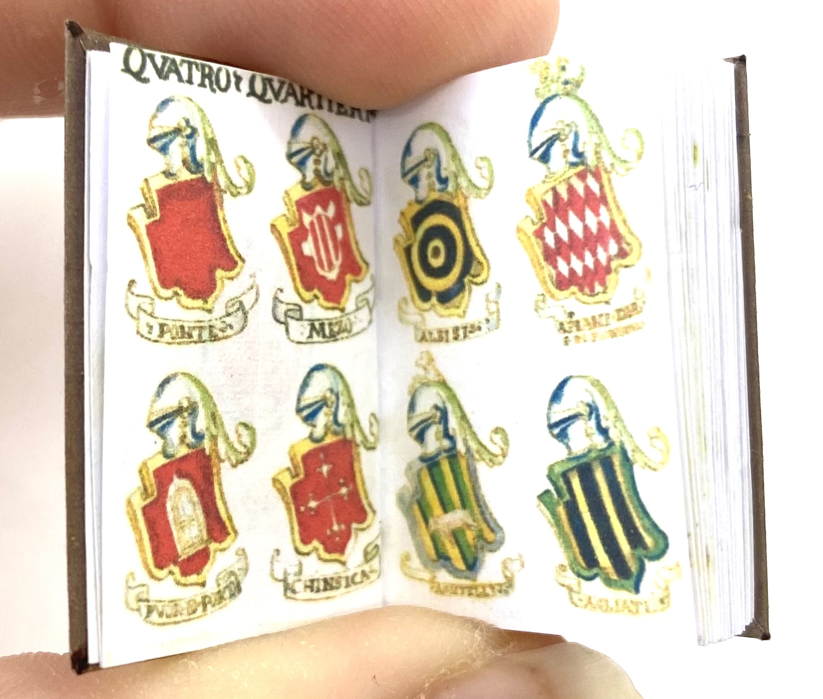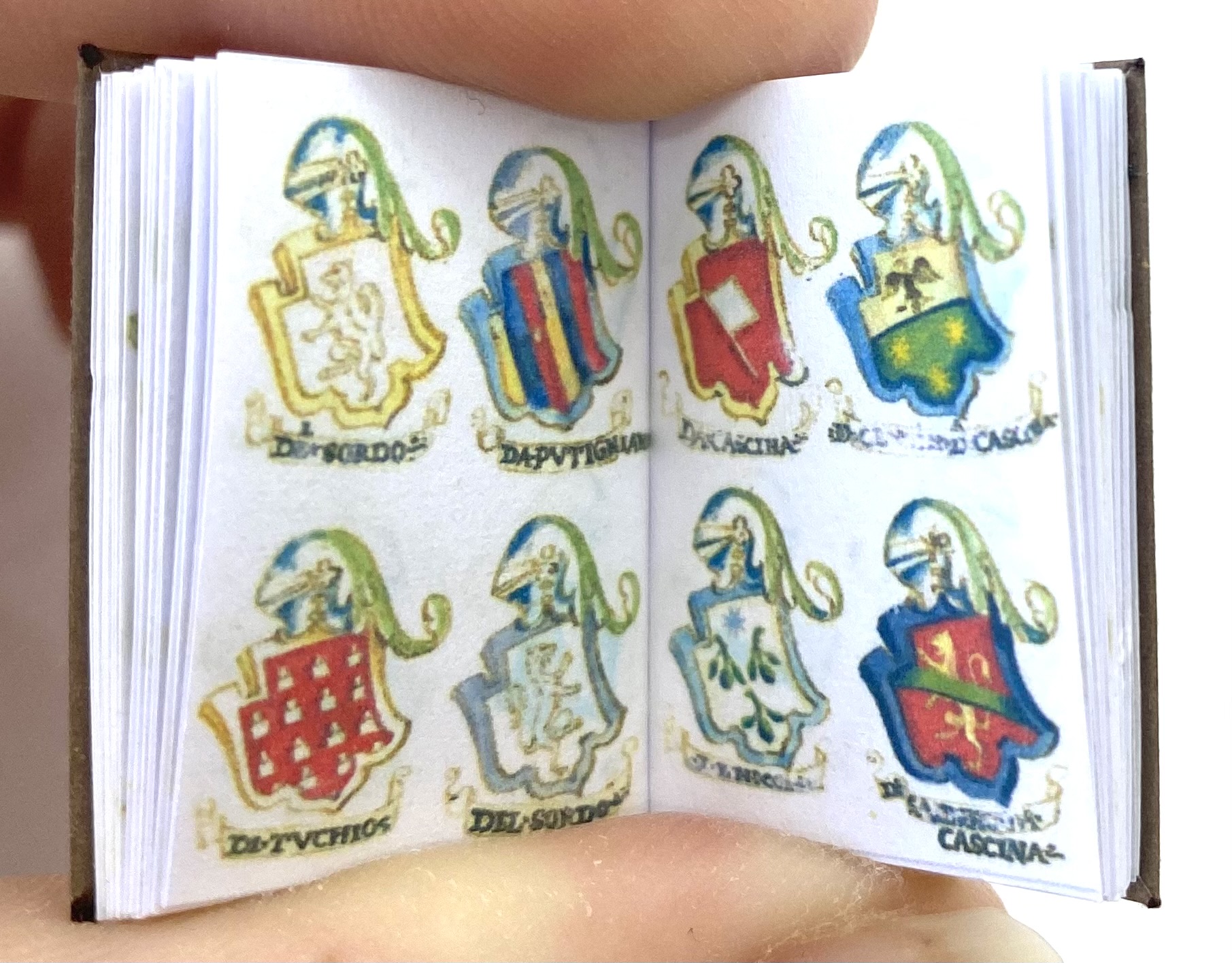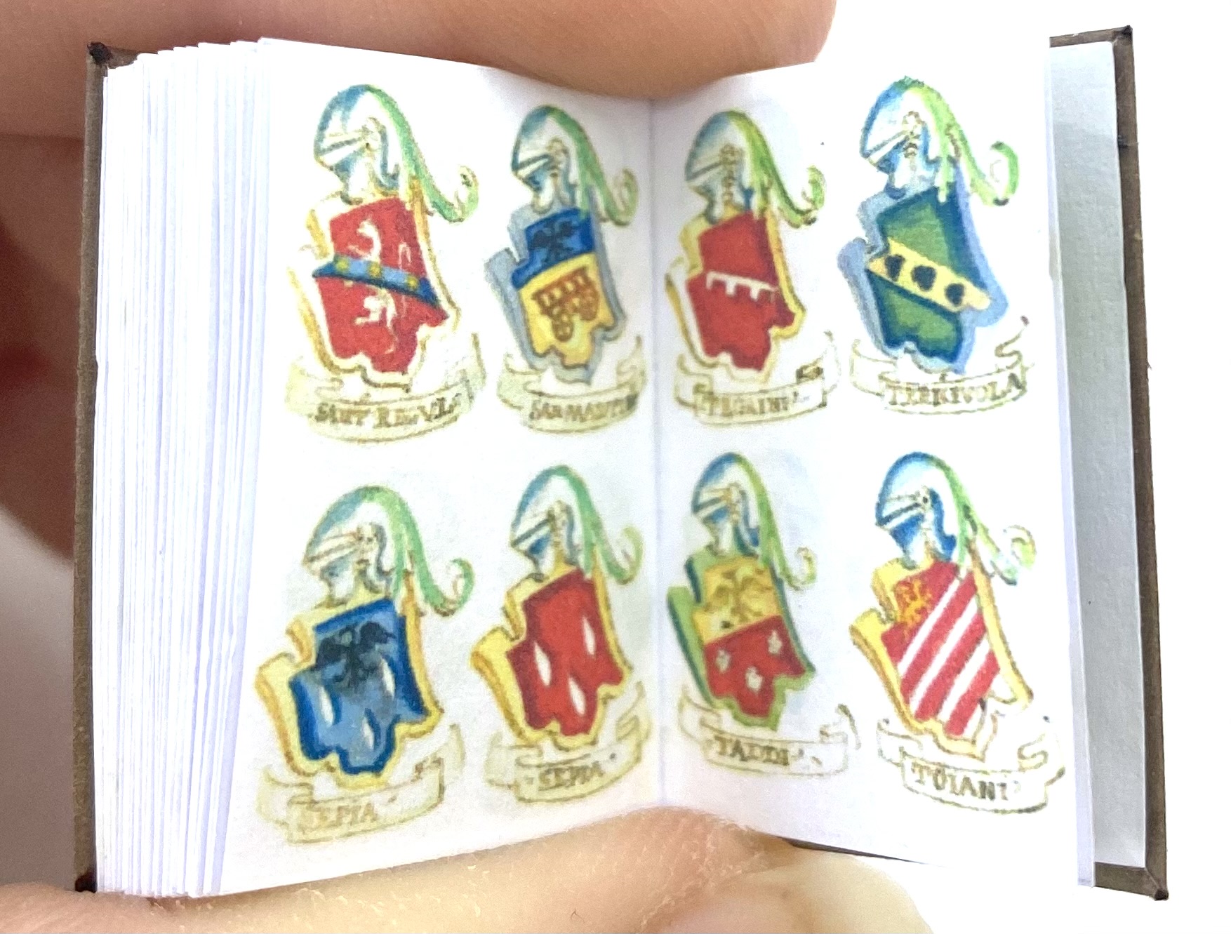 This volume forms a companion to the Noble Families of Verona, a miniature volume by Ken that I’d already purchased. I like the idea of Charles Quartermaine poring over the coats of arms of ancient Italian families, some of whom probably once owned the sculptures and paintings he has collected in his gallery.