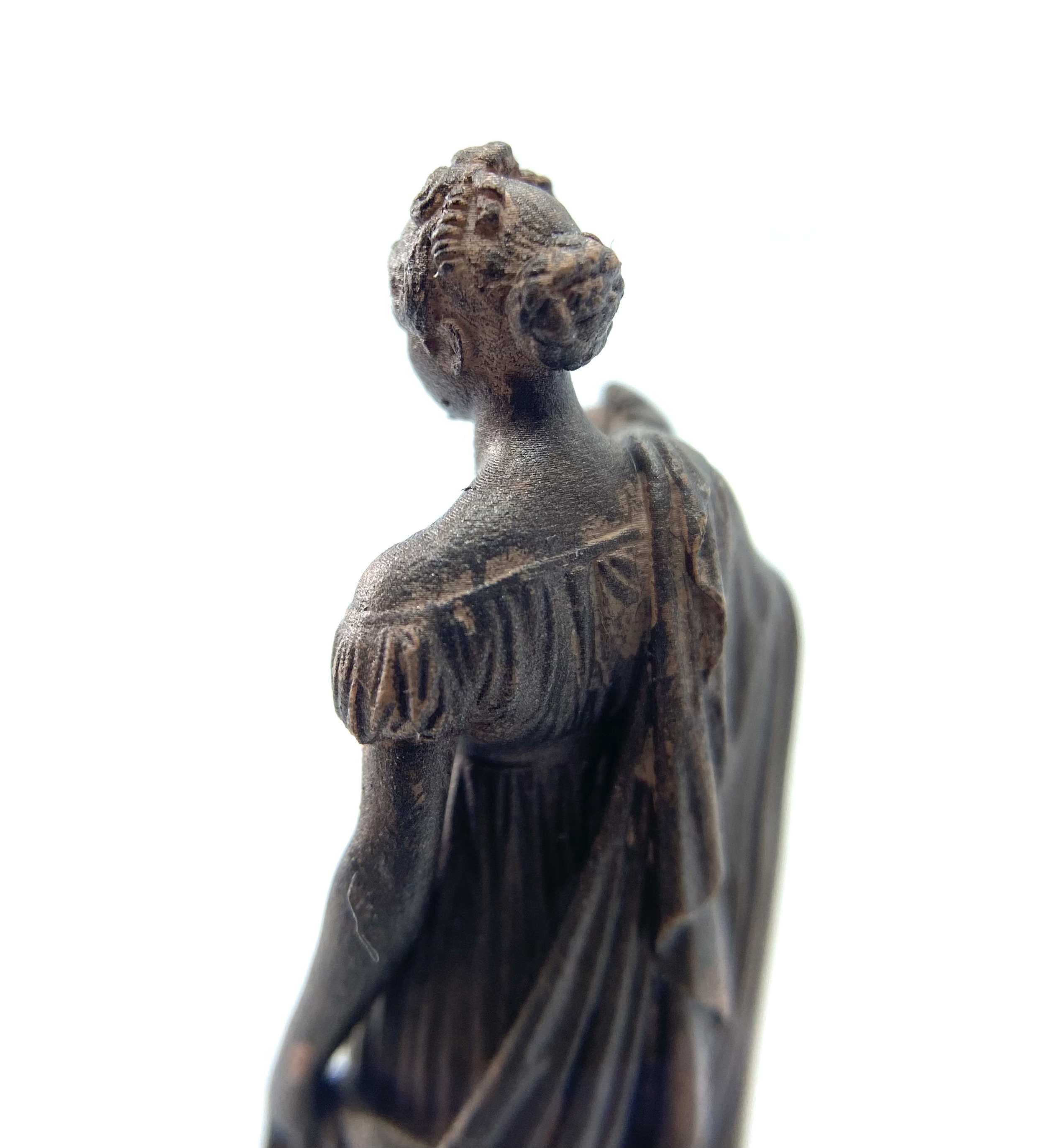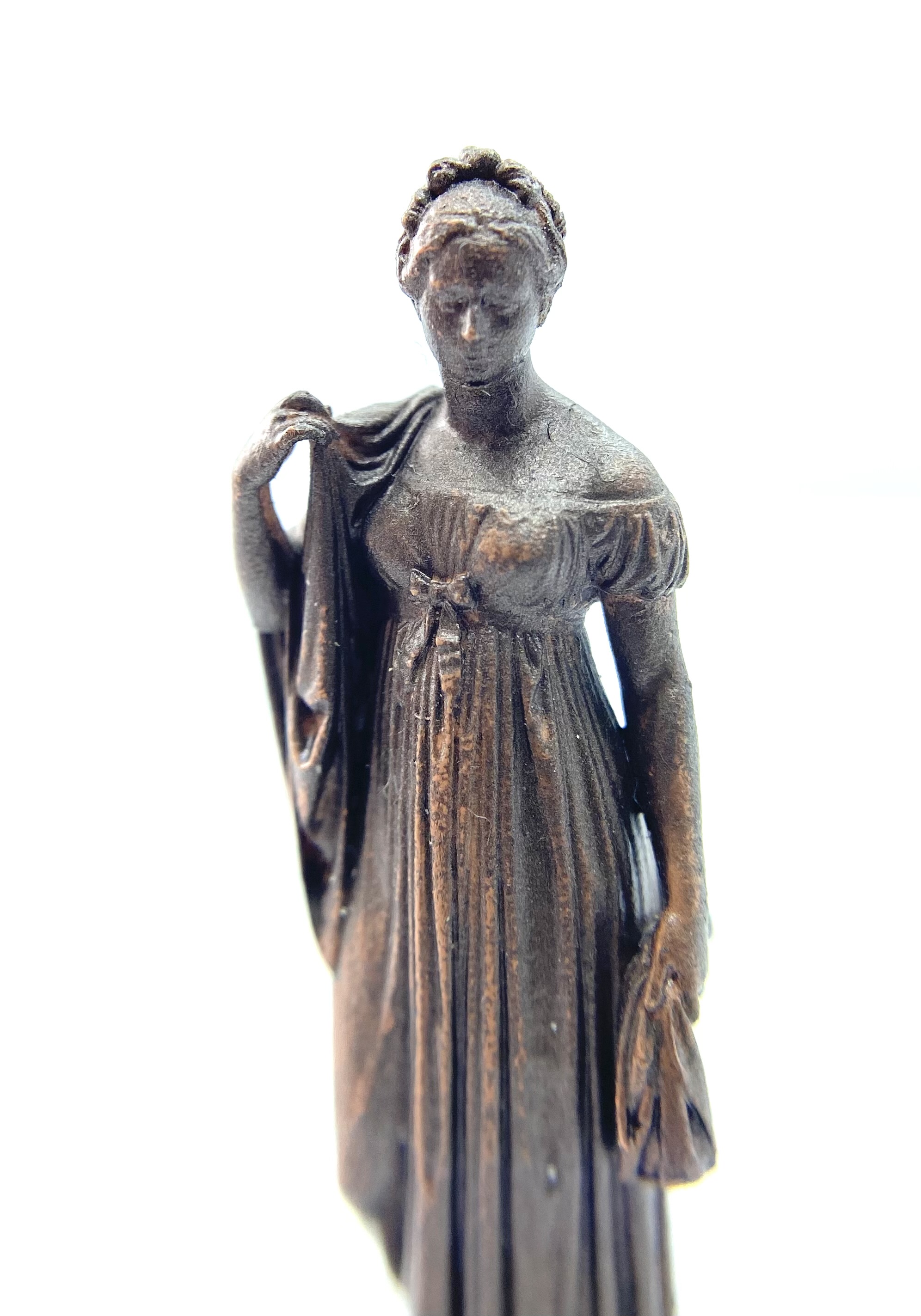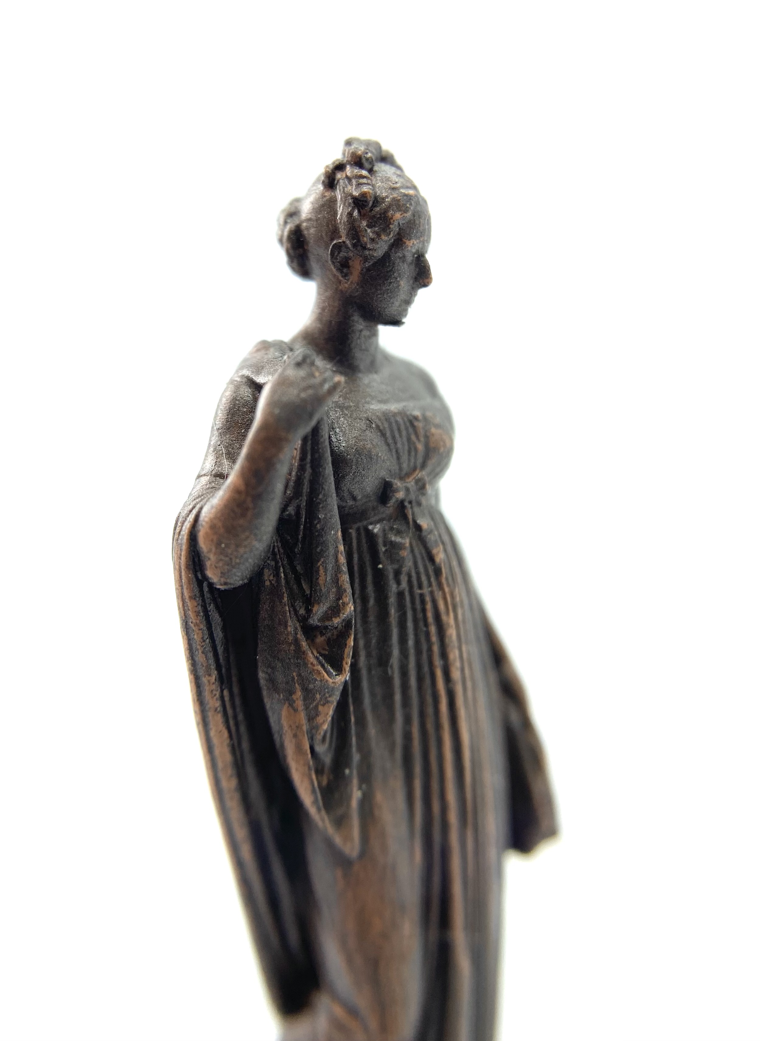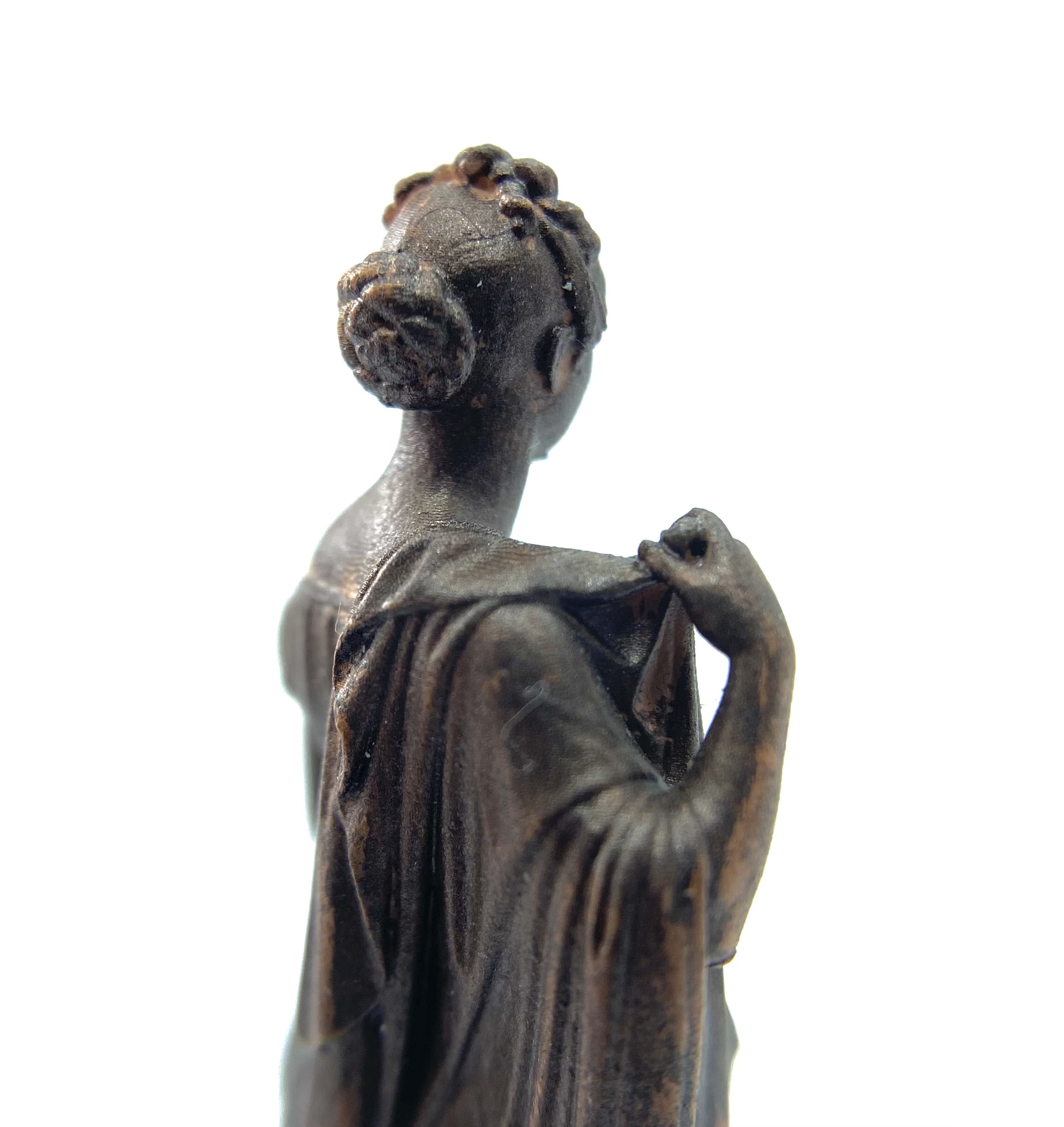 Printed in 3D and painted to emulate bronze, I think this would be a perfect small-scale sculpture for the library. This woman is beautifully draped in an Empire-line dress, with its cascading classical folds. She draws a shawl around her shoulders, and exudes a glorious sense of serenity.