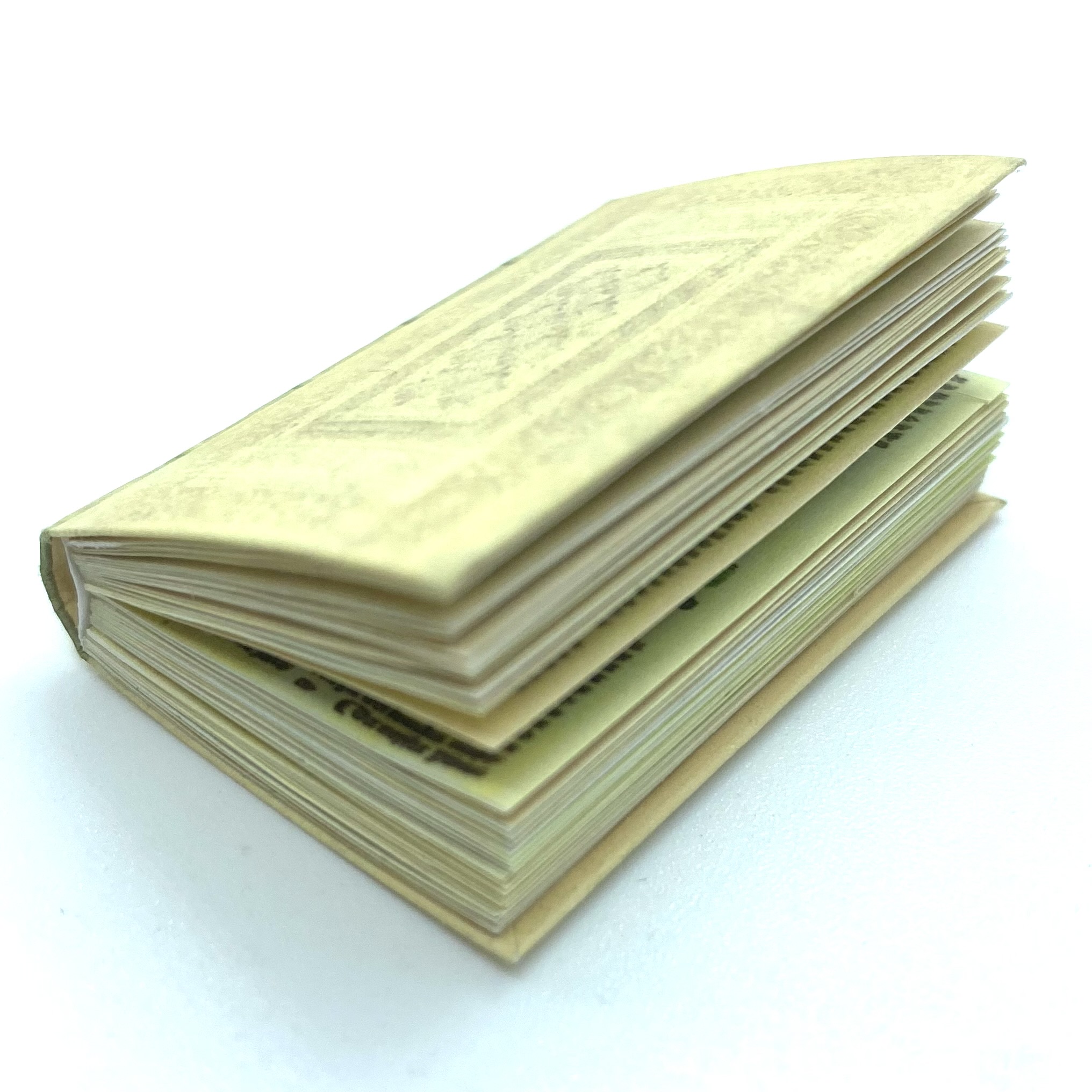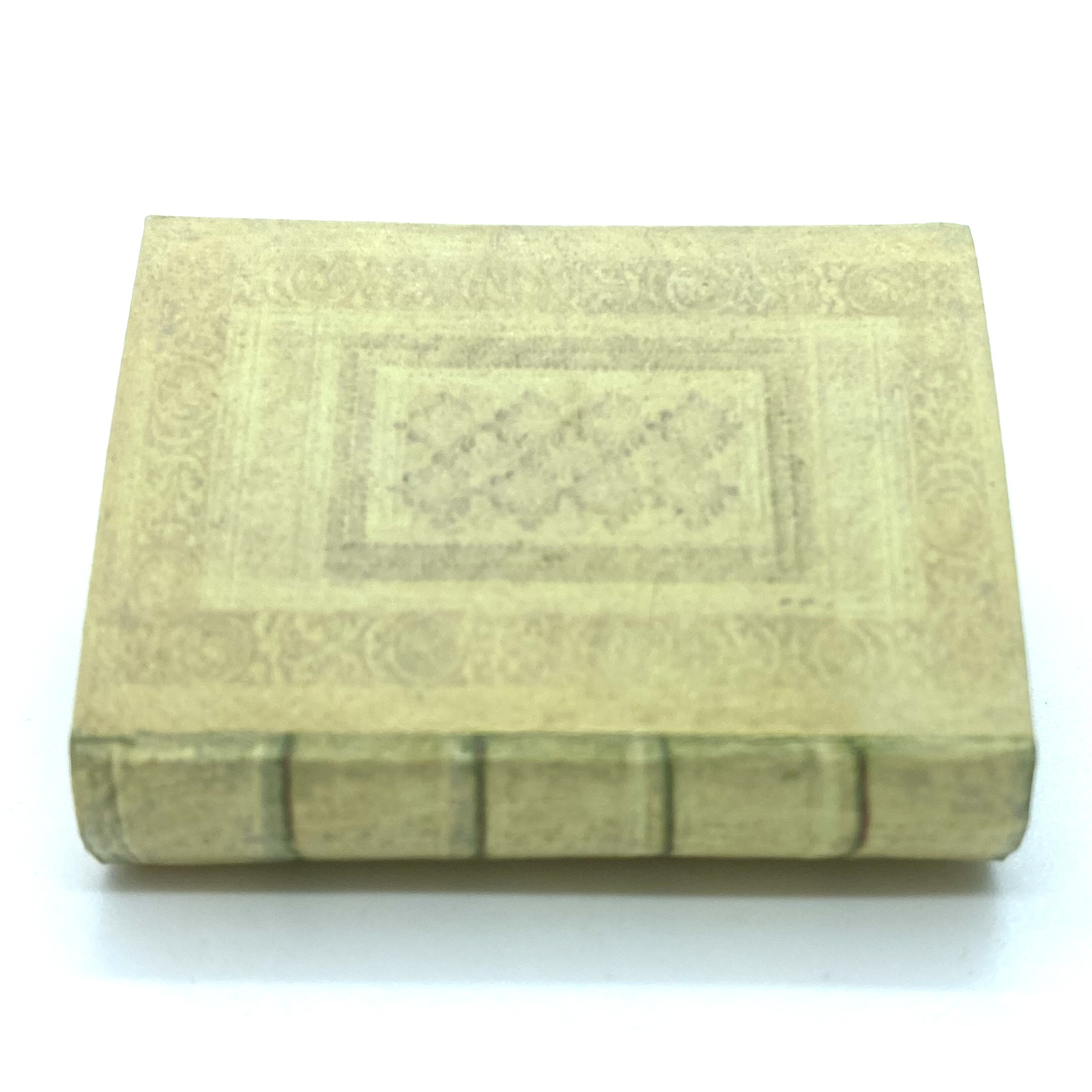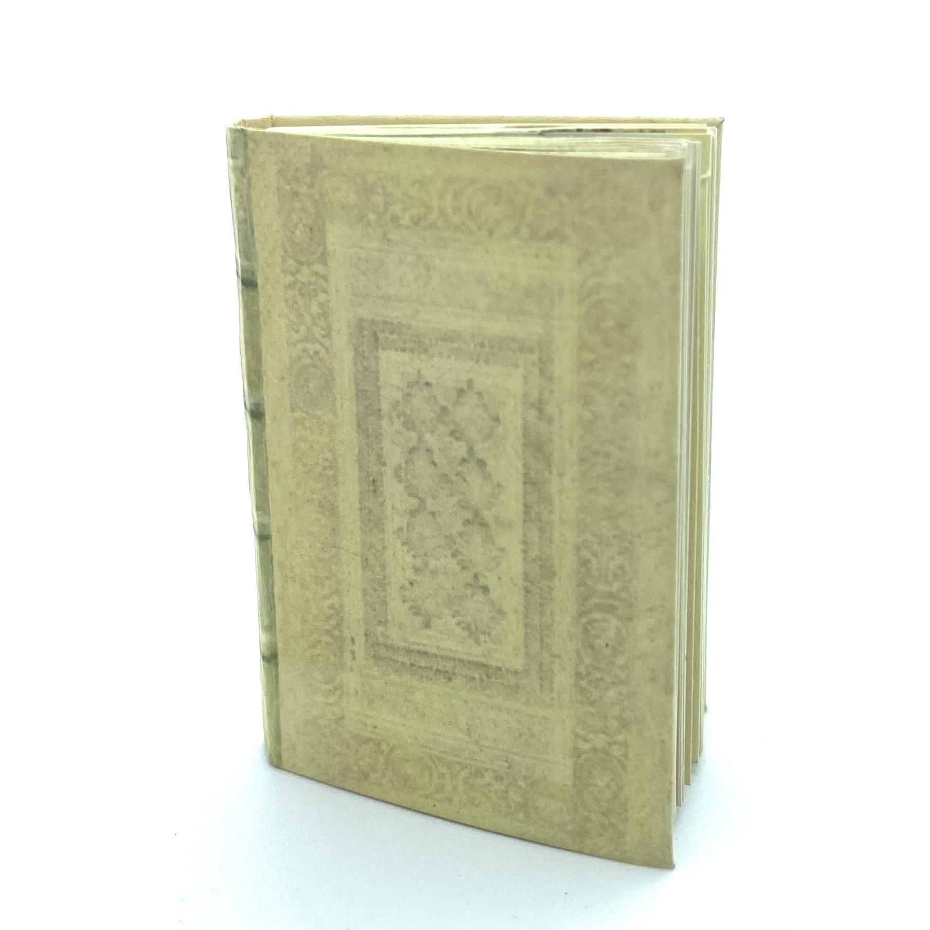 I haven’t yet tracked down the original version of this herbal but I presume it dates from either the very end of the 16th century or the beginning of the 17th century. Ken Blythe’s miniature reproduces the lovely heavy text and the coloured woodcut images that illustrate the work, although with its beautiful patterned vellum binding. By the 1890s this book would no longer have had any scientific function, having been long outdated by modern botany, but it would have gained new value as a precious incunabula.