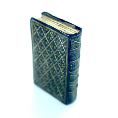 In this case, the spine suggests a fairly straightforward identification: ‘Petrarcha Aldus’. Presumably this is a copy of an edition by the great early Italian printer Aldus Manutius, publishing work by the (equally great) poet Francesco Petrarca. The binding is obviously considerably later.