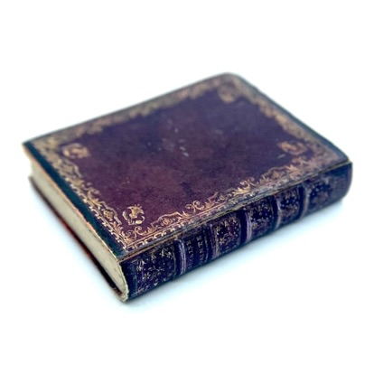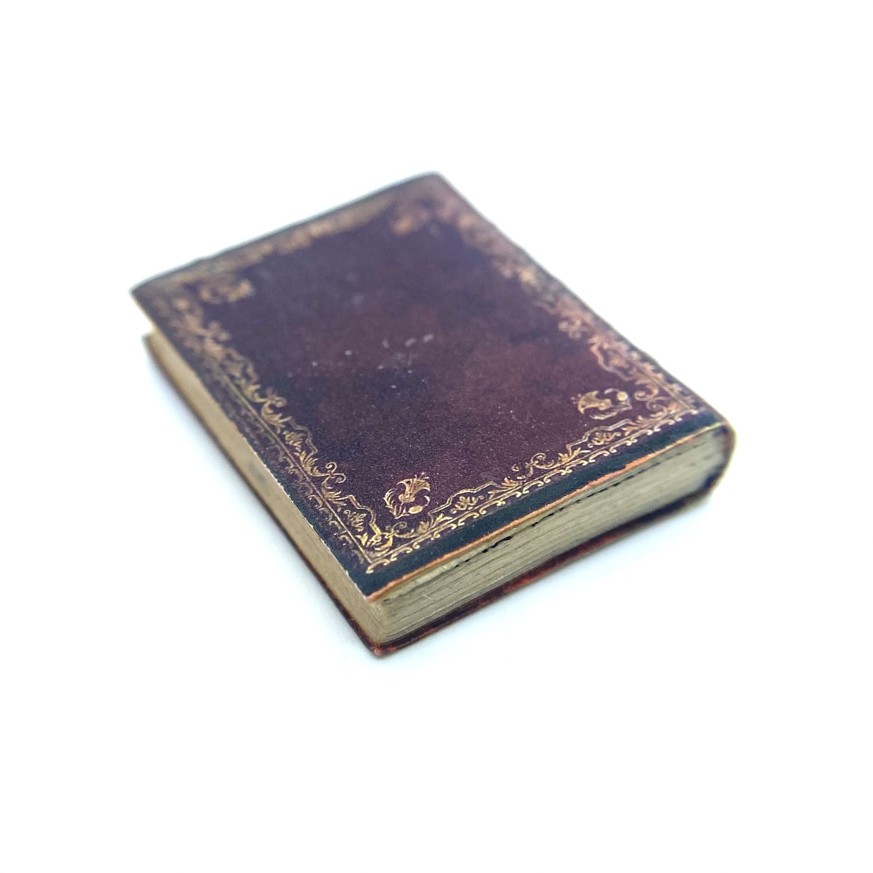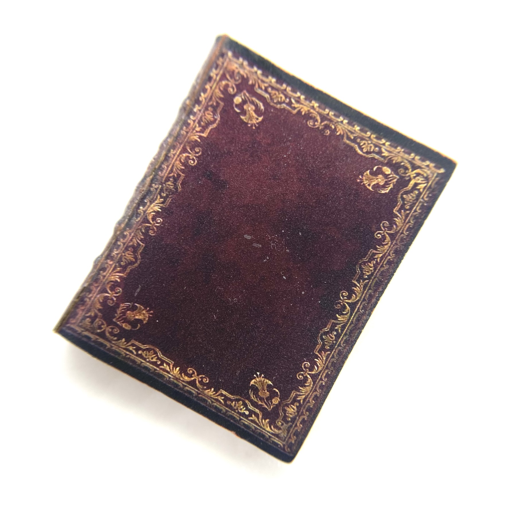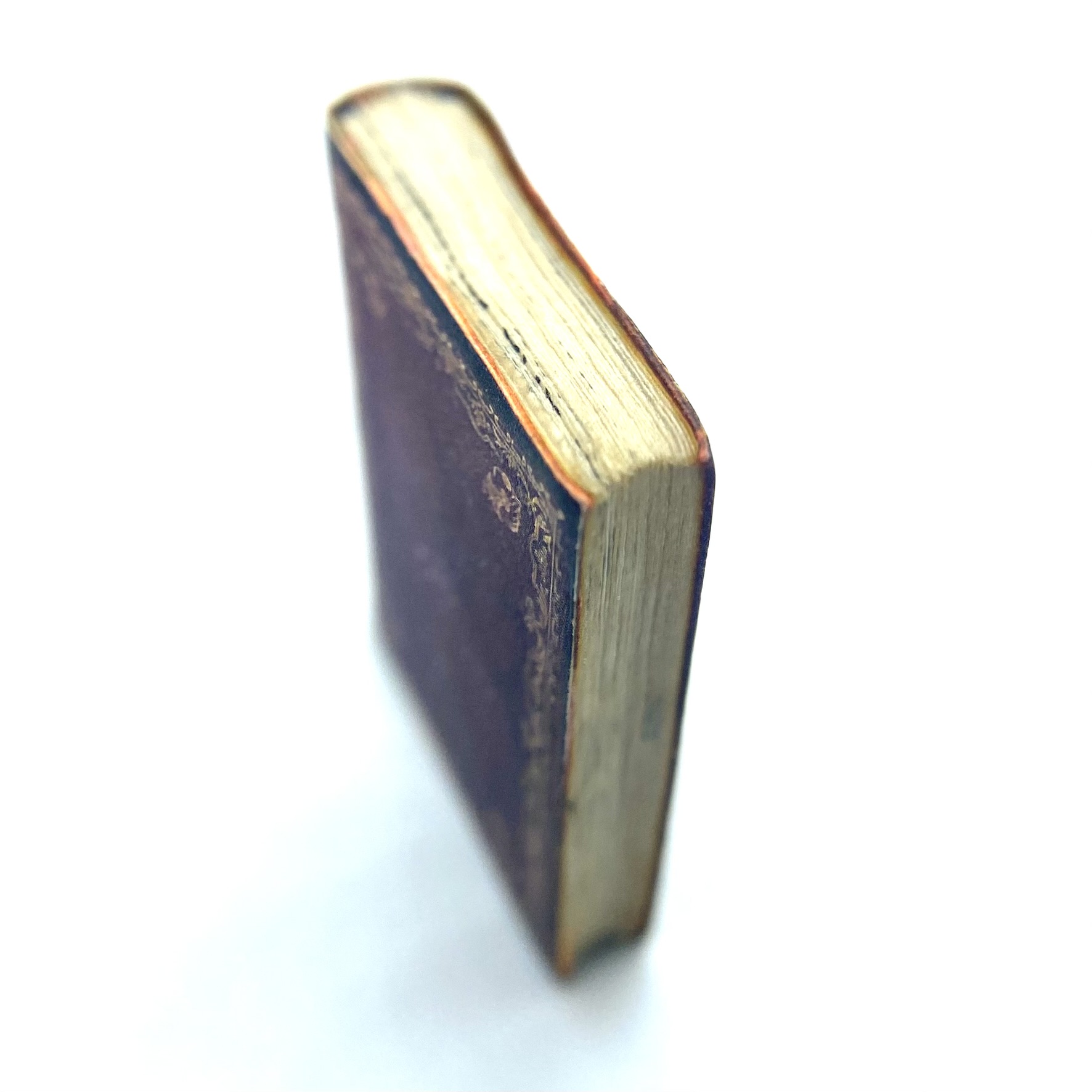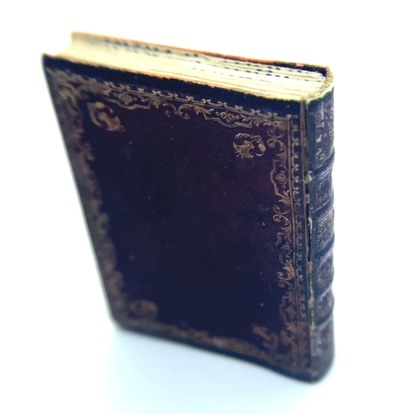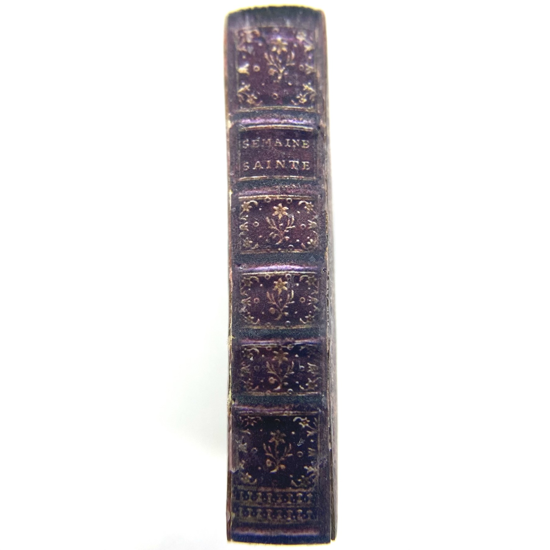 Here we have a copy of the Catholic liturgy for Holy Week, described on the spine as ‘Semaine Sainte’. I haven’t found the exact volume that Mariangela used as her source, but there are numerous very similar books online, which suggest that this is an 18th-century binding. I’m not sure why the Quartermaines would have this: is it just a general interest in religion, or does it (along with their Crucifixion and their Veronica’s Veil) suggest that they might have Catholic sympathies?