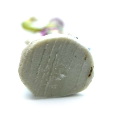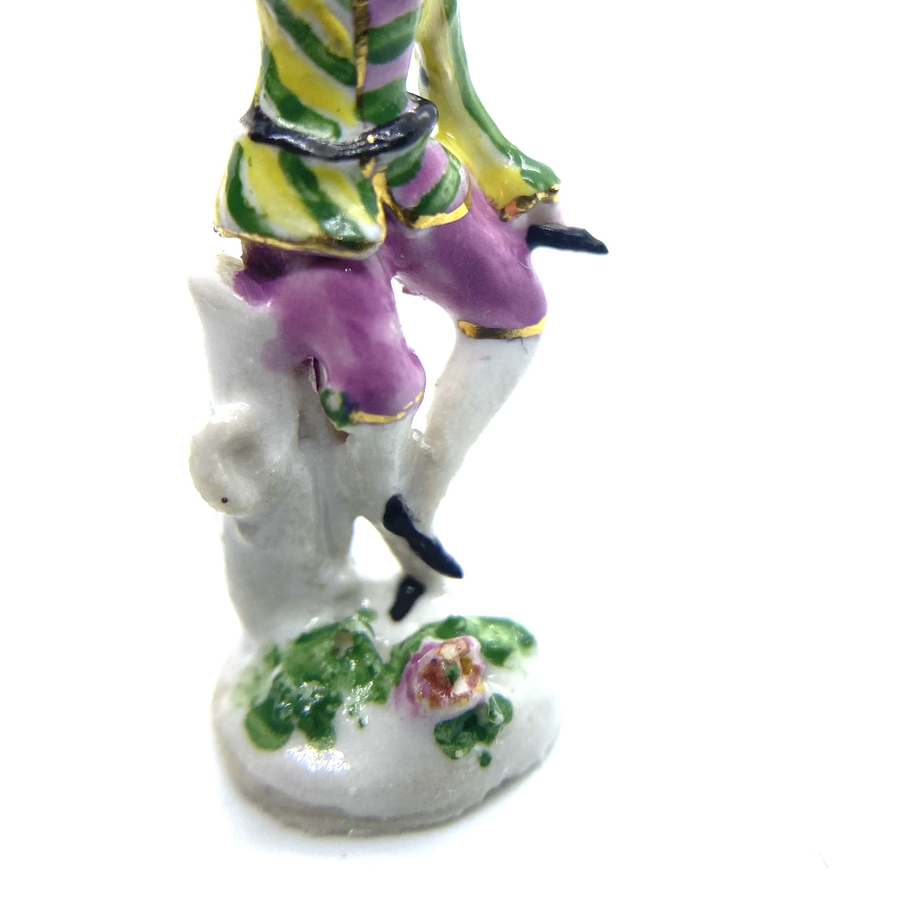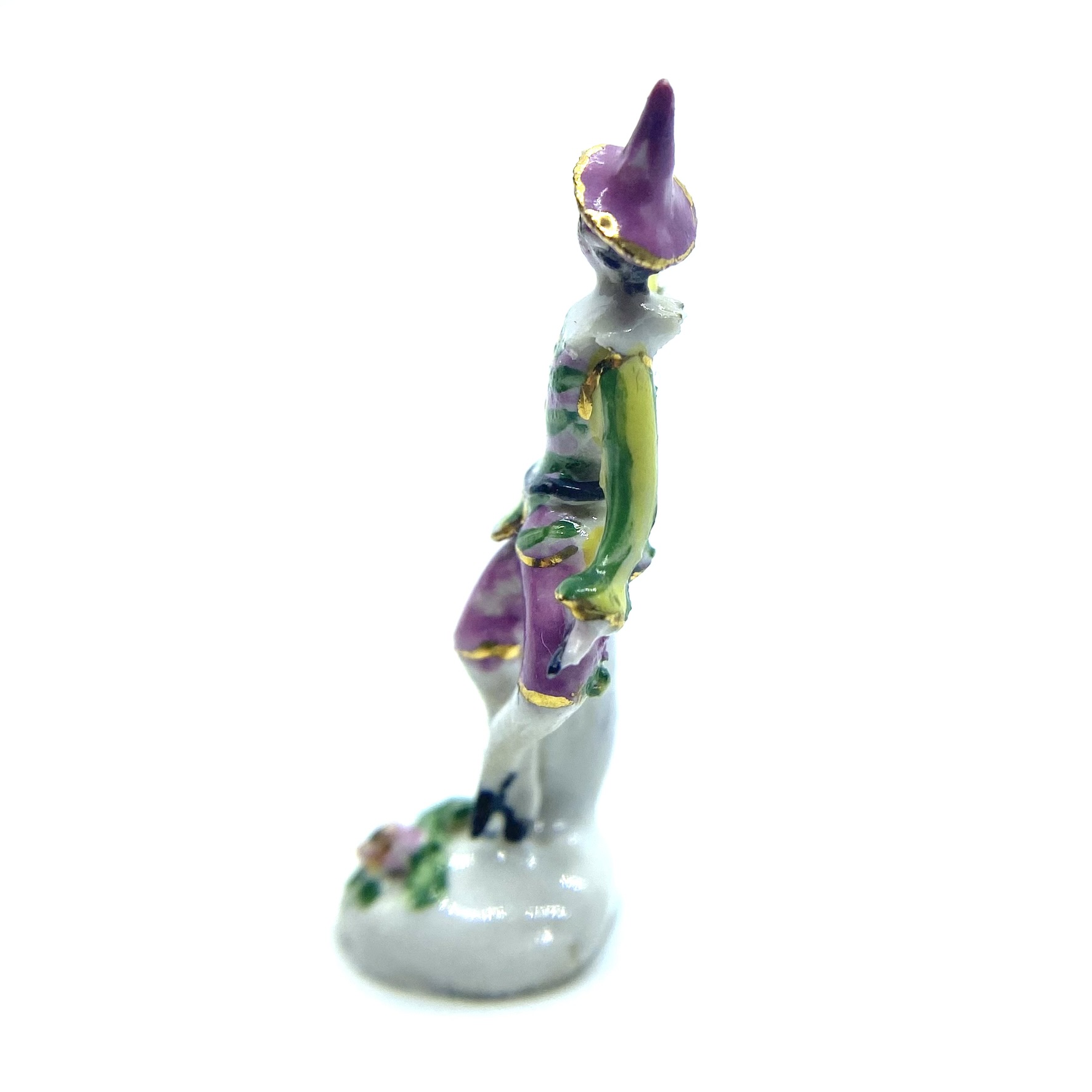 This is a curious case. The figurine is unsigned (lacking the usual initials ‘TS’ on its base), but everything about it reminds me of the work of Tricia Street – from the gracefully attenuated body to the bright colours. I am moderately confident that it is indeed by her; it certainly sits very comfortably alongside the rest of her work in our collection.