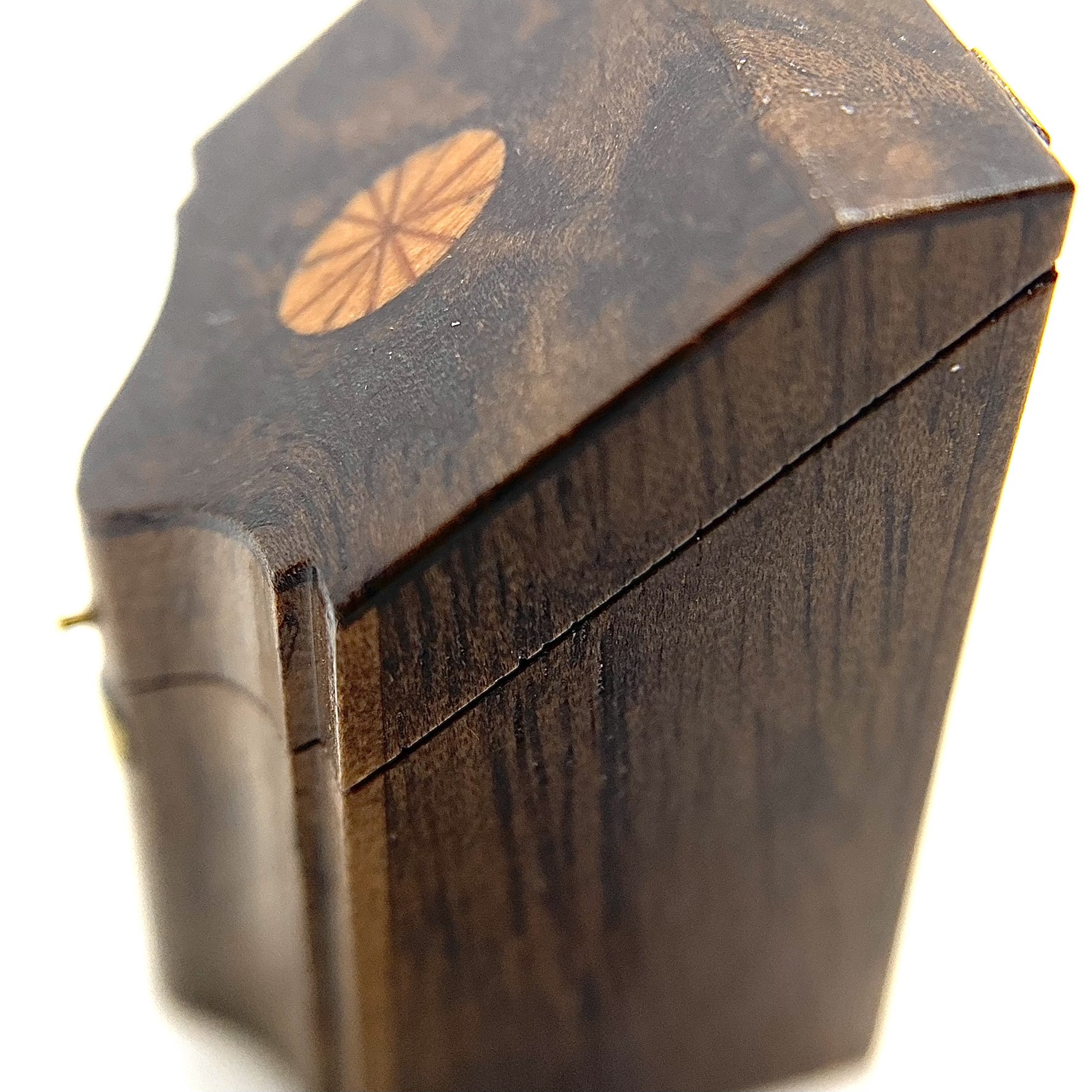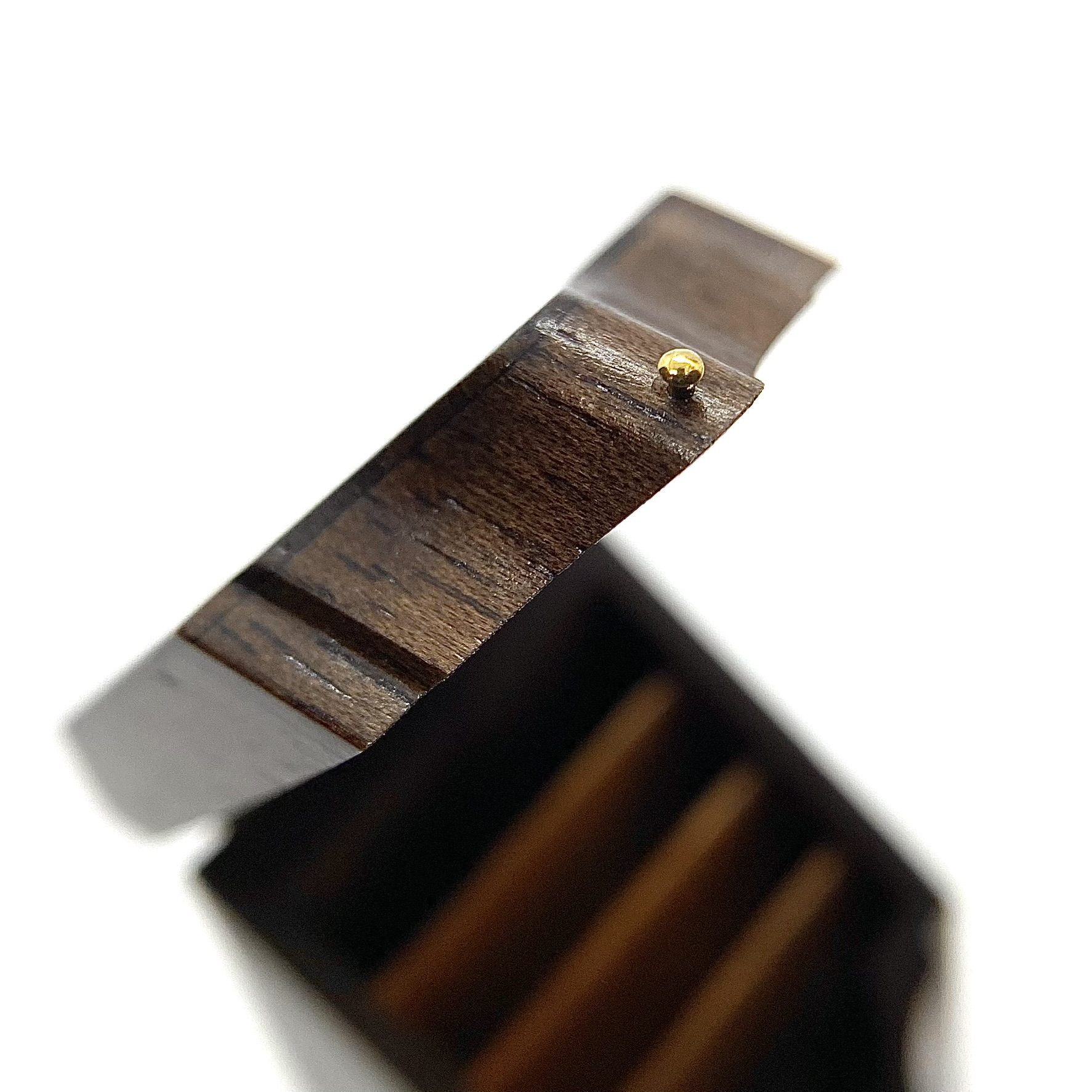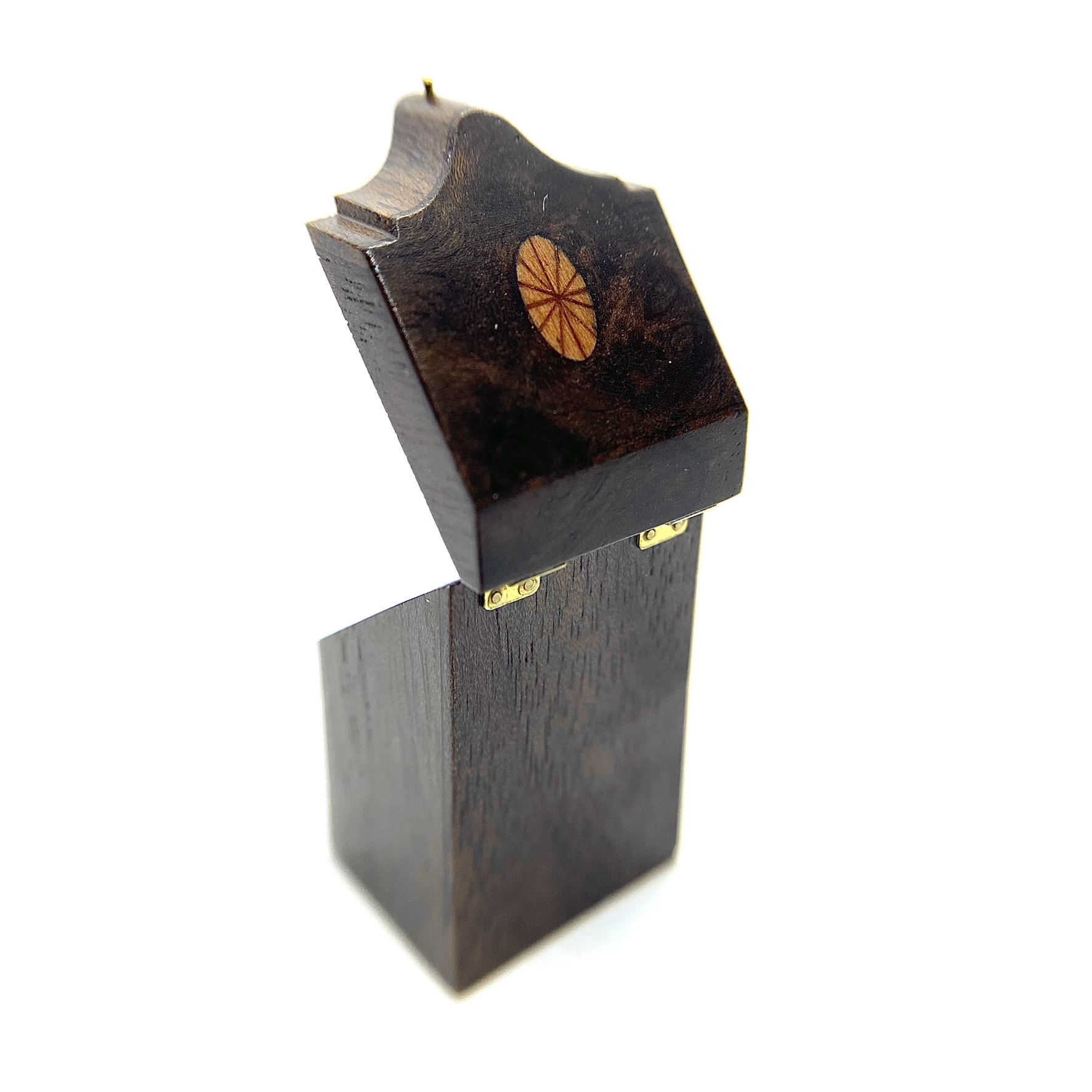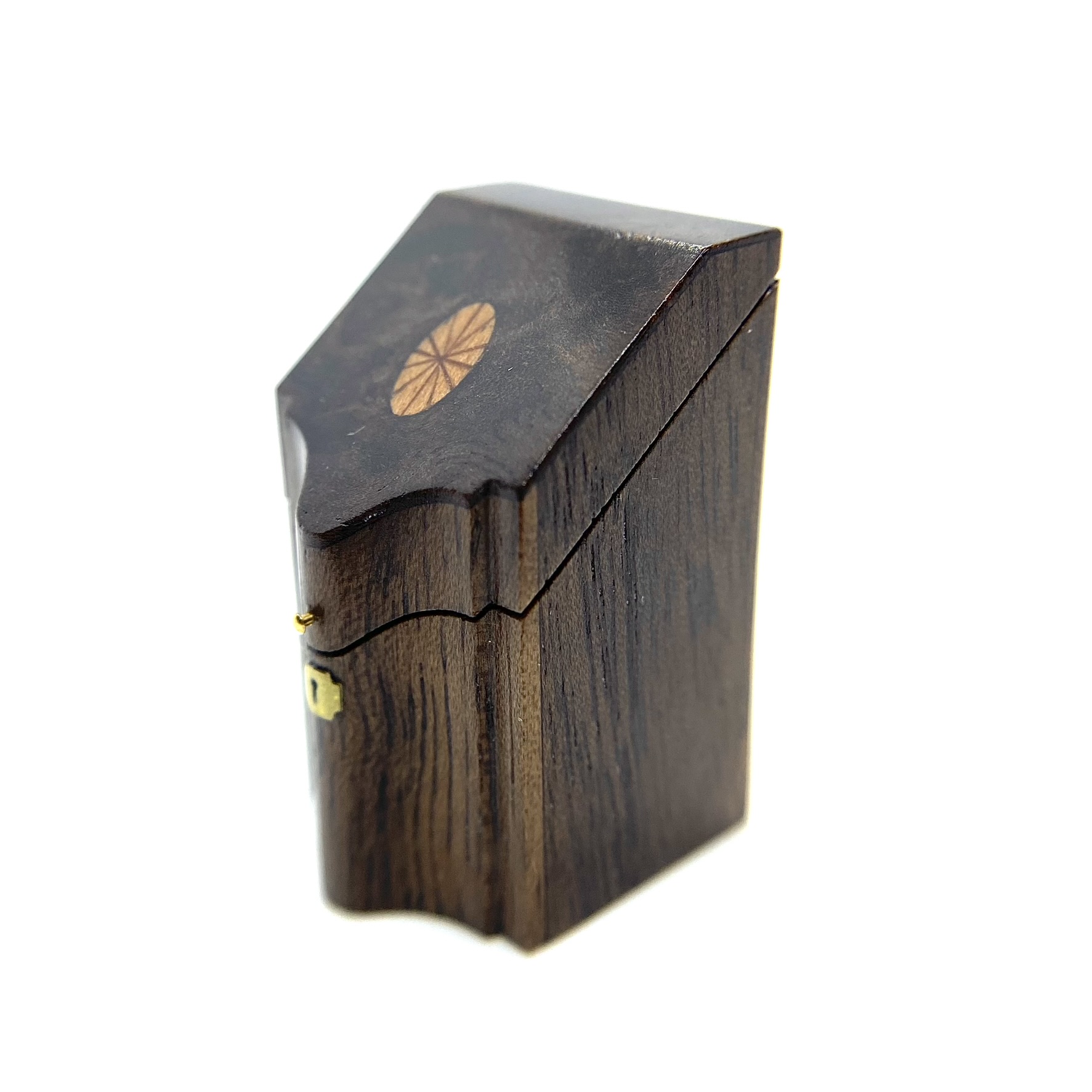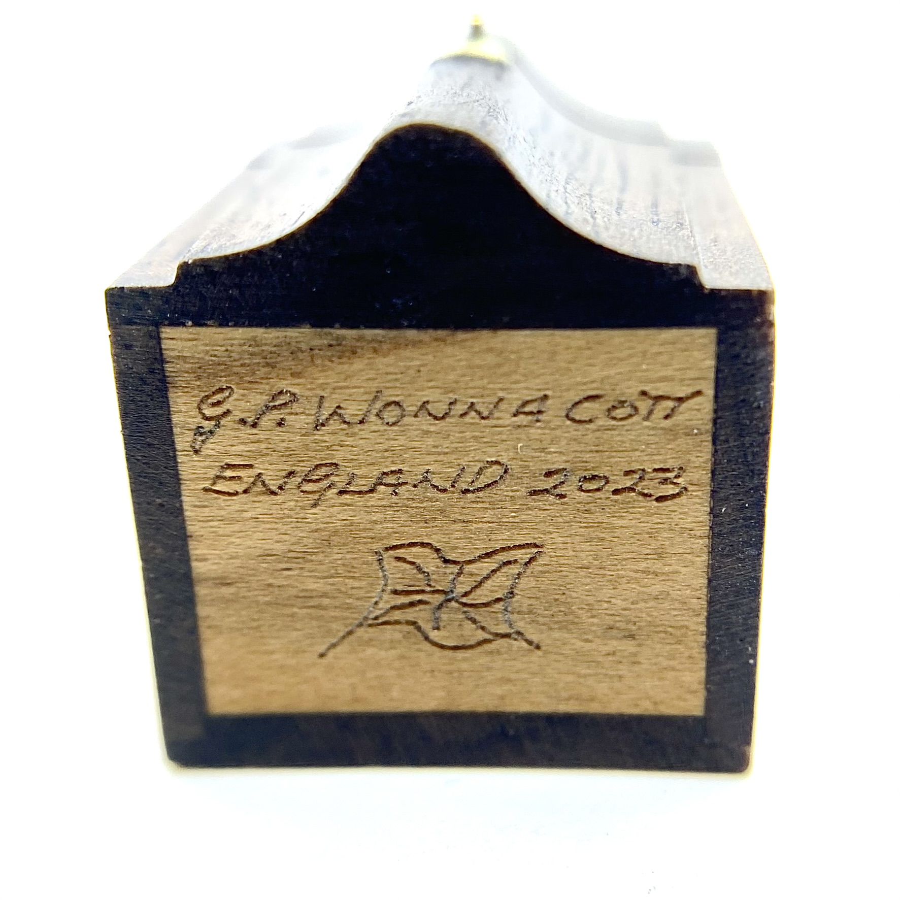 This is a piece I’ve been craving ever since I first discovered miniatures. Geoff Wonnacott, who rather wonderfully describes himself as a ‘miniature cabinetmaker’, is one of the most celebrated living artisans. Although his larger pieces are beyond our price range, this knife box has been on my radar since the very beginning. I’ve been very well-behaved this past year – funnelling spare money into furnishing our actual new house rather than a presently non-existent miniature one – but I decided to take the plunge during the September 2023 Online Showcase run by the team behind the Kensington Dollshouse Festival. This may or may not have been sparked by admiring a full-size Georgian knife box at a National Trust property over the summer.