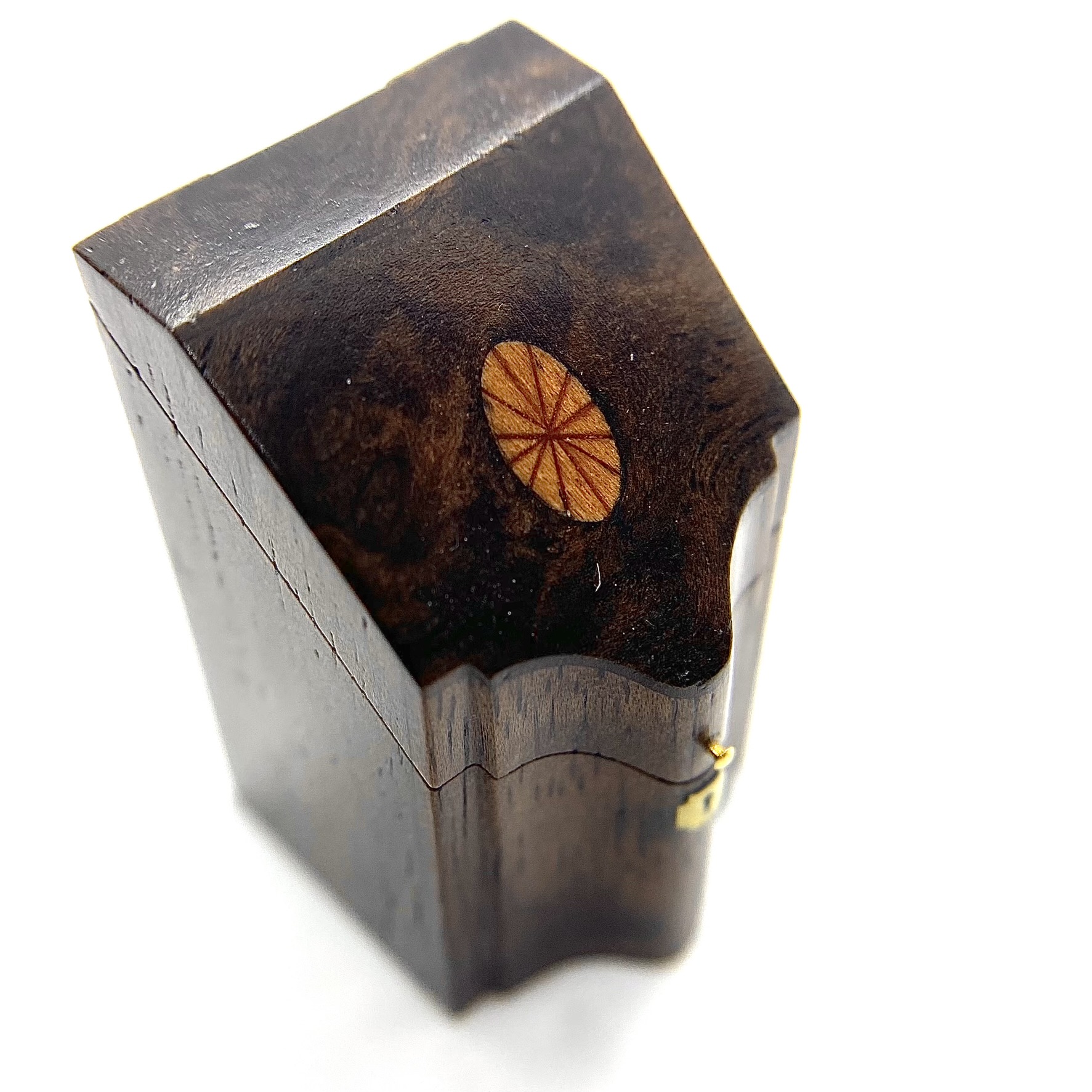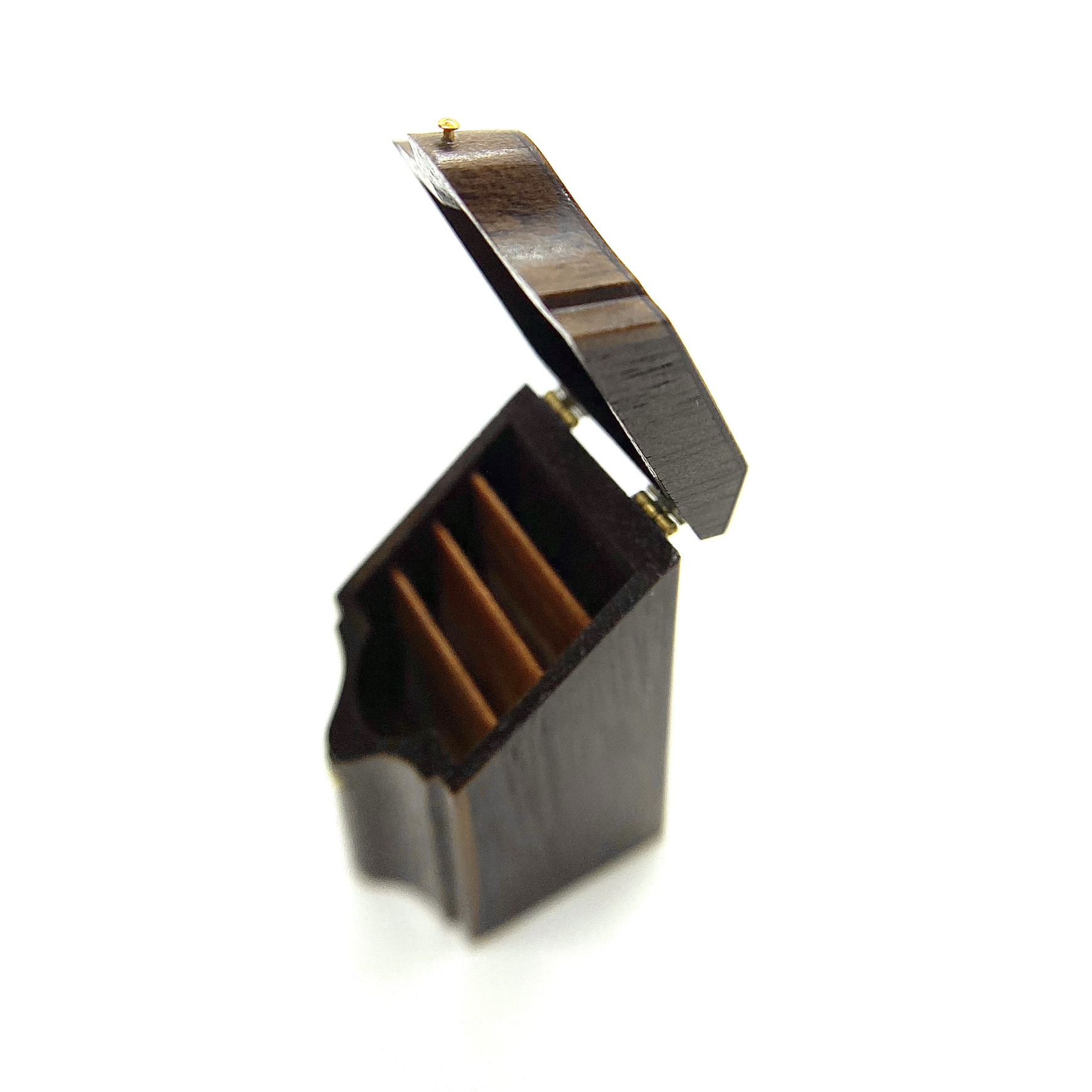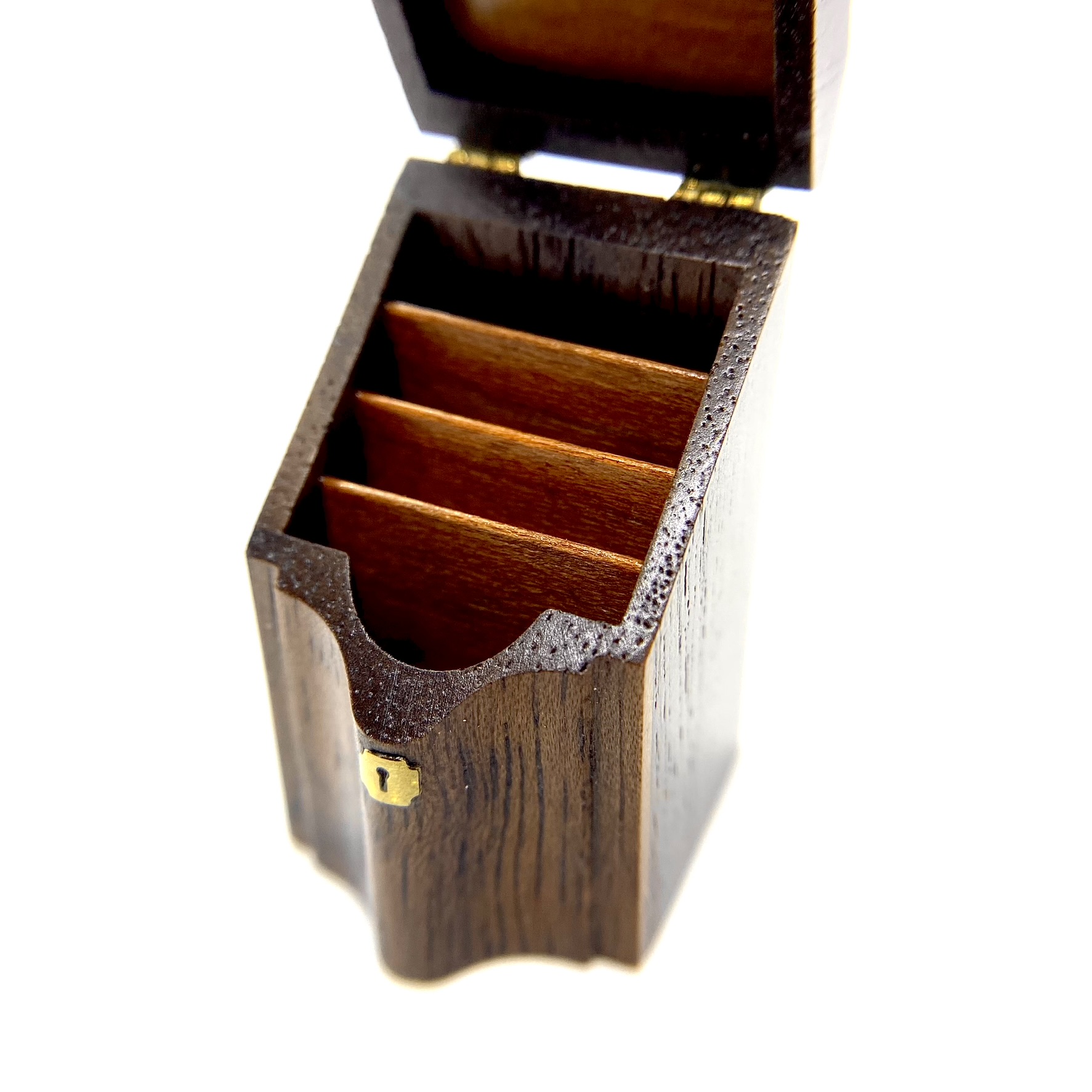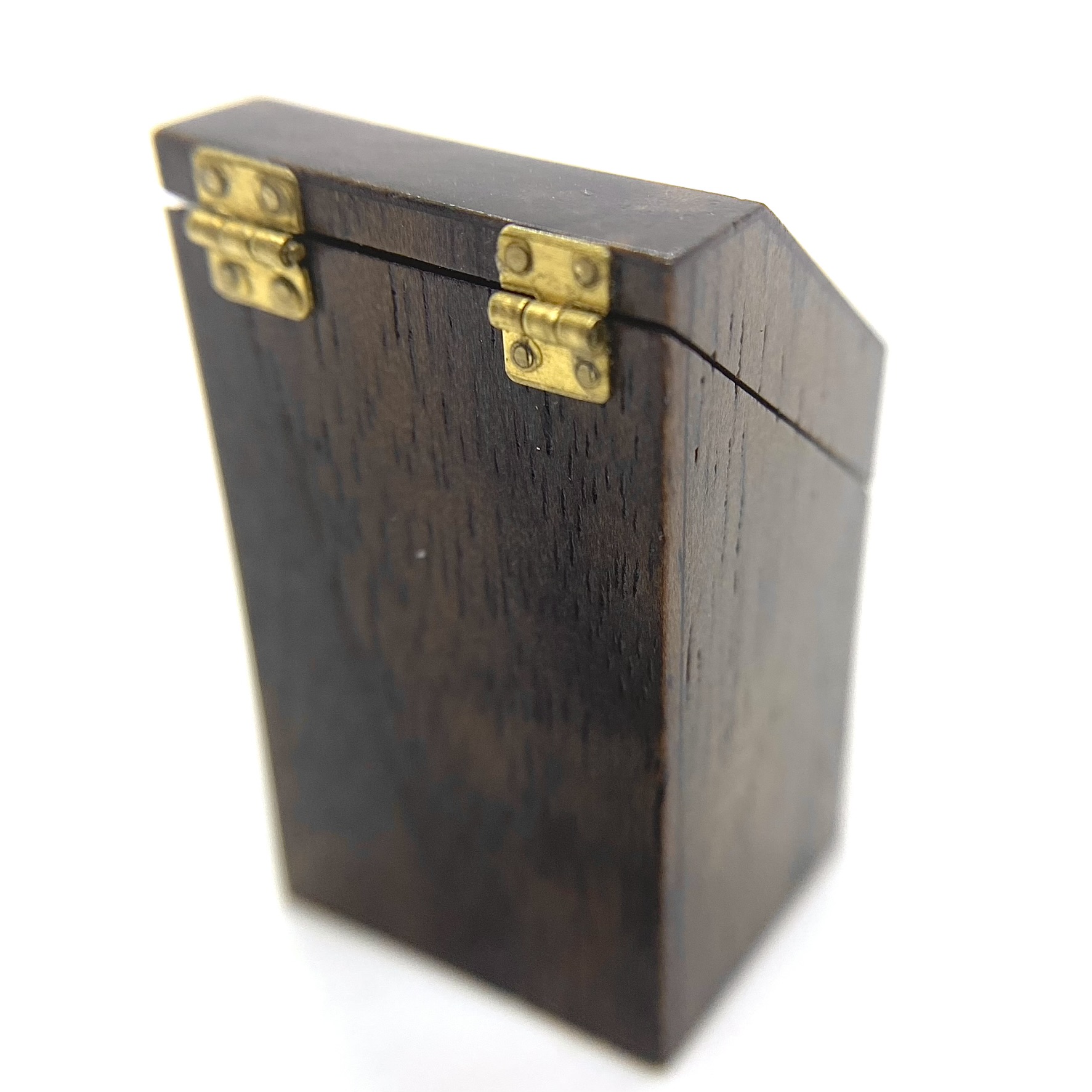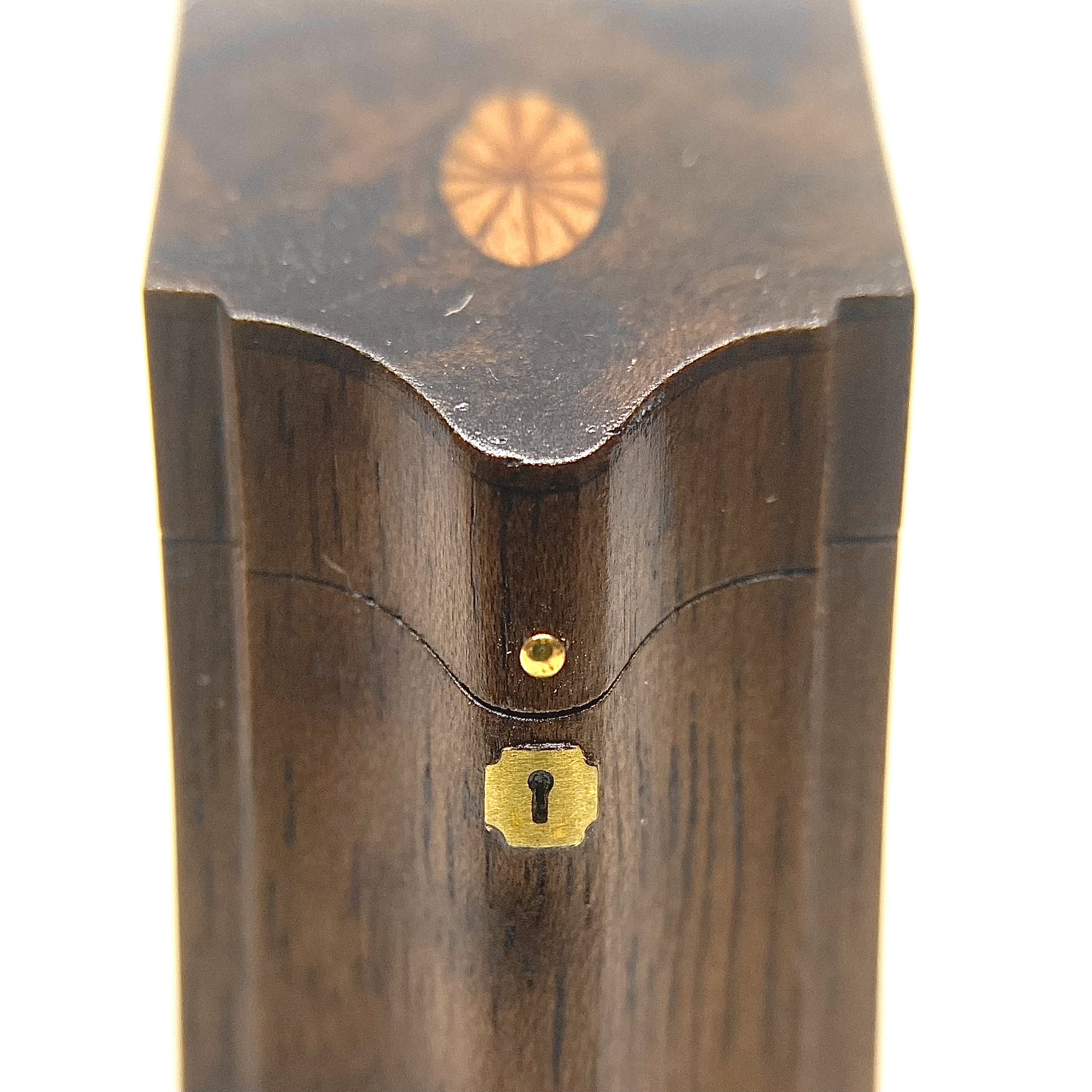 This is a piece I’ve been craving ever since I first discovered miniatures. Geoff Wonnacott, who rather wonderfully describes himself as a ‘miniature cabinetmaker’, is one of the most celebrated living artisans. Although his larger pieces are beyond our price range, this knife box has been on my radar since the very beginning. I’ve been very well-behaved this past year – funnelling spare money into furnishing our actual new house rather than a presently non-existent miniature one – but I decided to take the plunge during the September 2023 Online Showcase run by the team behind the Kensington Dollshouse Festival. This may or may not have been sparked by admiring a full-size Georgian knife box at a National Trust property over the summer.