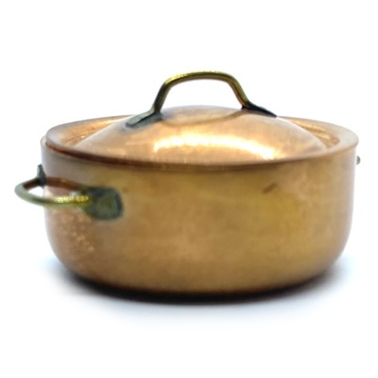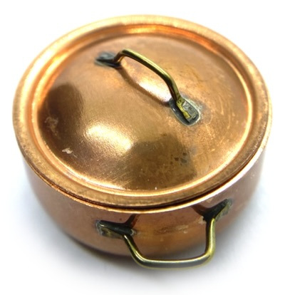 Another Getzan pot for our kitchen collection, with characteristically fine handles on lid and sides. This was described on Karen’s website as a ‘spaghetti pot’, which is probably rather avant-garde for the Quartermaines, but I’m sure there are lots of alternative uses for a good-sized pot such as this, which can either be bubbling away on the stove, or freshly buffed on the dresser.