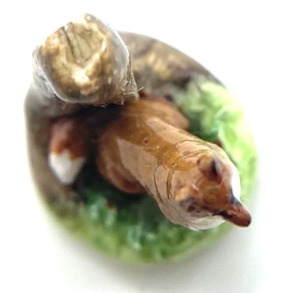 We bought this wonderful little ornament along with another, showing a pointer, with the idea of displaying them together on the mantelpiece in the Smoking Room. The detail and colouring is rather lovely for something so small, but unfortunately I don’t know who the maker is. I’ve asked the seller on eBay whether perhaps she created them herself, but am still waiting for an answer, and will update as and when I can.