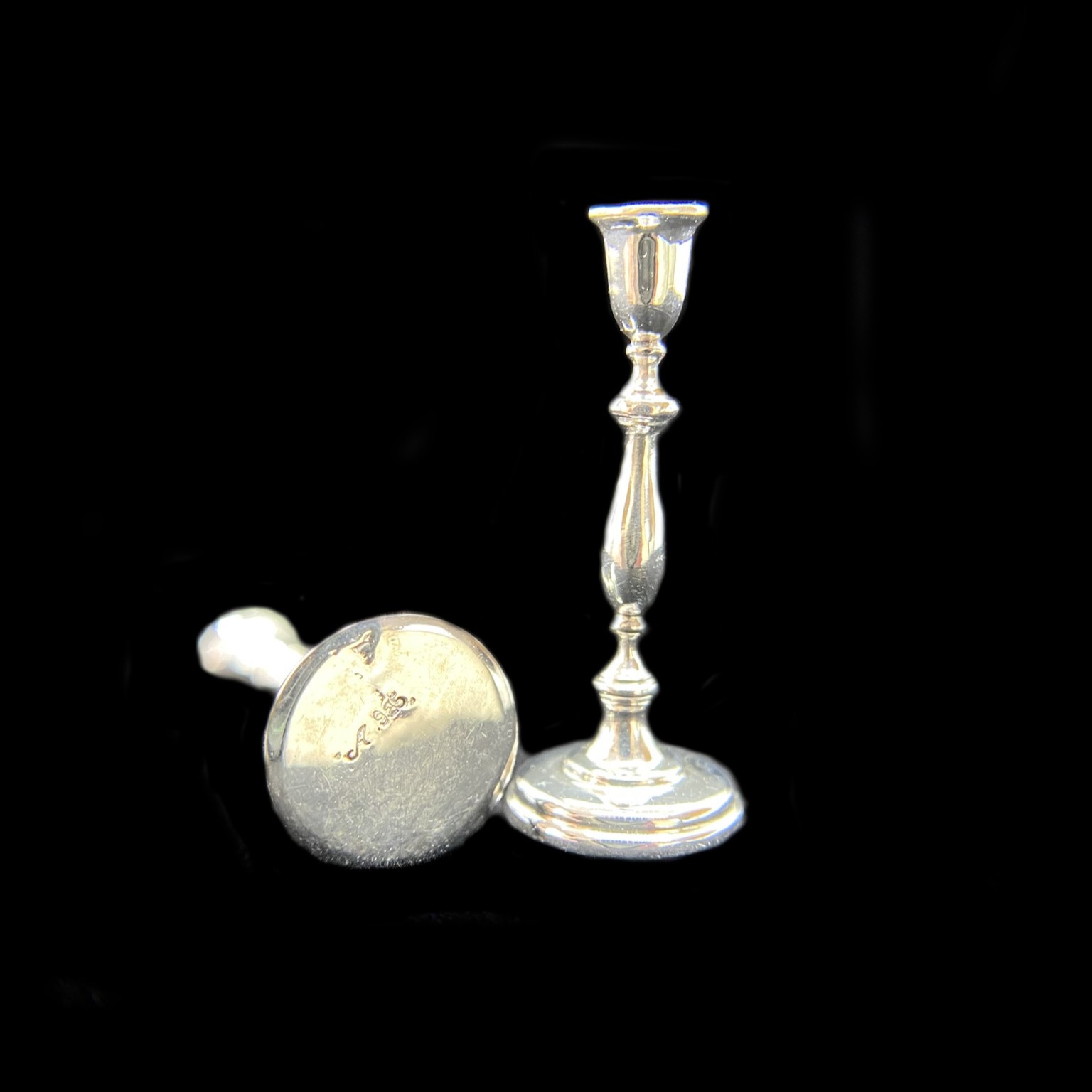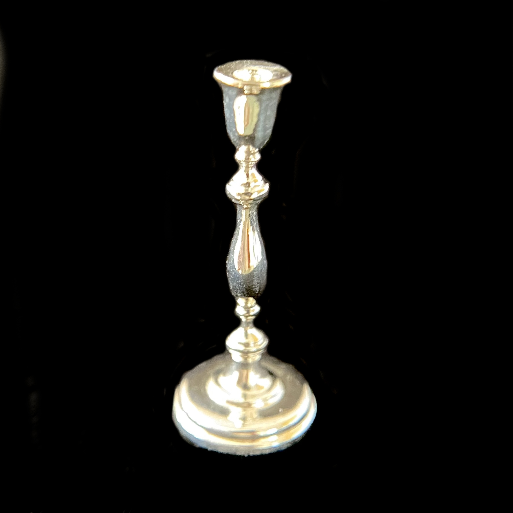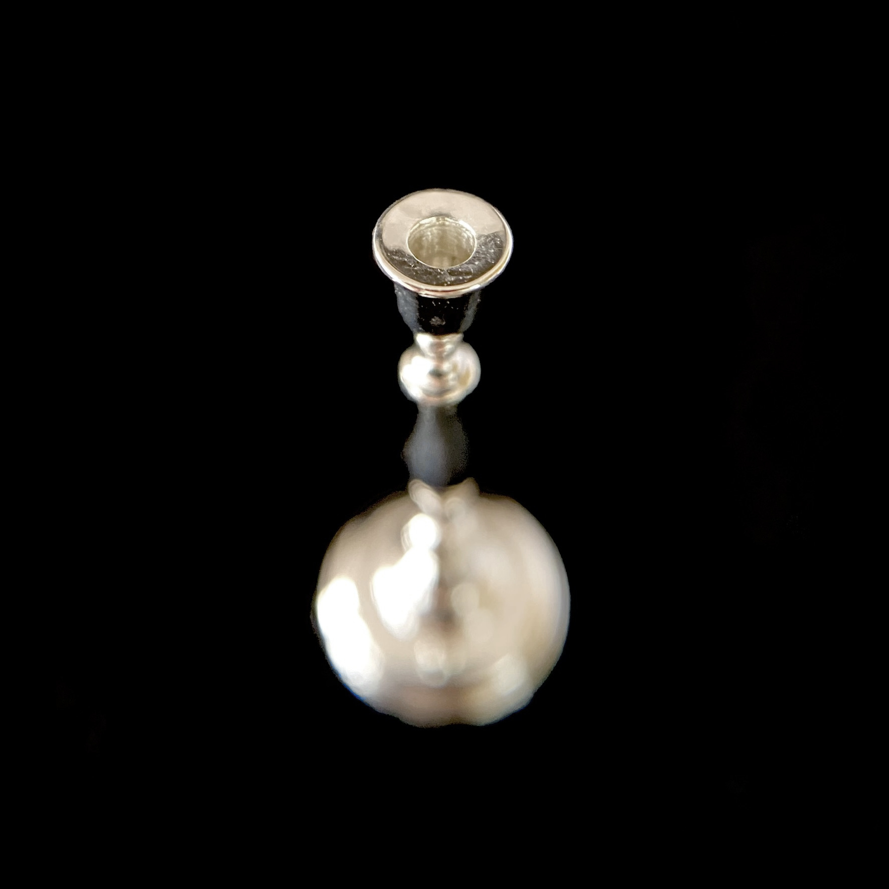 These elegant candlesticks, of which we bought a pair, are described on Pete’s website as ‘colonial candlesticks’, and are based on a piece from 1765. They are slender and graceful, and comparatively plain, and would suit a variety of different environments. For now, they’re pencilled in for the dinner table, where they’ll be complemented by other pieces of Pete Acquisto’s exquisite miniature silverwork.