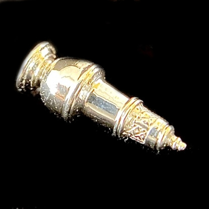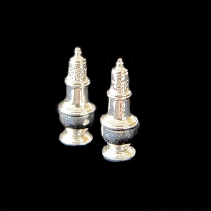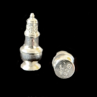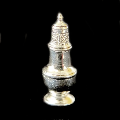 These miniscule salt and pepper shakers proved almost too tiny for my macro lens, but hopefully the photographs do them moderate justice. They’re beautifully decorated, with engraved patterns around the tops, and have an elegant flared base. Pete’s website explains that they are based on examples made by the American silversmith Paul Revere in around 1760-1770.